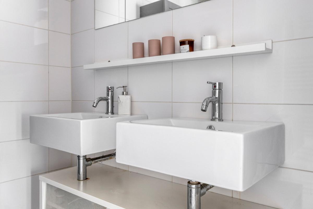 Thanks to its corner location, you can enjoy plenty of natural light through the large windows on several sides. The modern kitchen is equipped with built-in appliances and a stylish cooking island with bar – perfect for breakfast or a pleasant conversation while cooking.