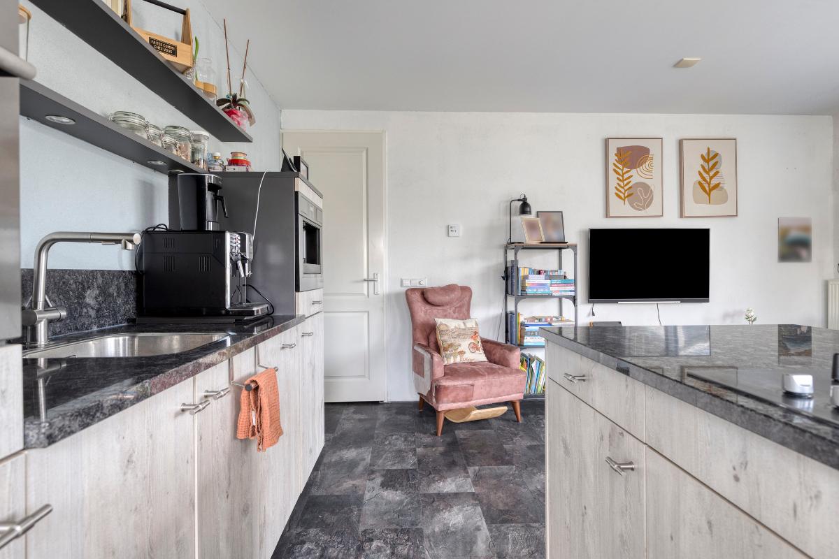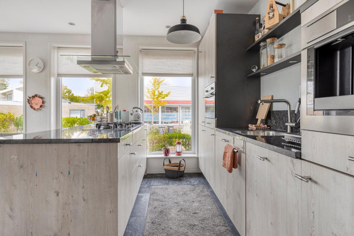 Dankzij de hoekligging geniet u van veel natuurlijk licht door de grote raampartijen aan meerdere zijden. De moderne keuken is voorzien van inbouwapparatuur en een stijlvol kookeiland met bar – perfect voor een ontbijtje of een gezellig gesprek tijdens het koken.