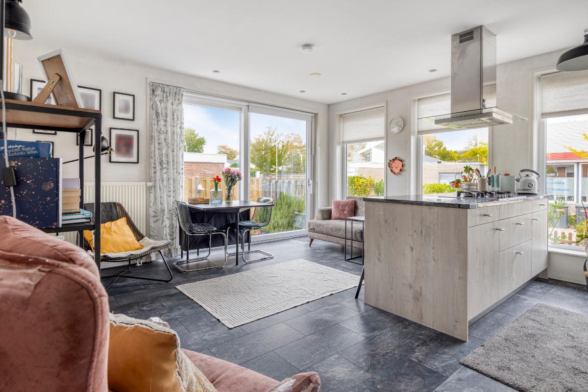 Advantages at a glance: • Ground floor location • Corner apartment with extra light • Garden at the front and side • Modern kitchen with cooking island and bar • Two bedrooms • Bathroom with walk-in shower and double sink • Private storage room • Built in 2013, well insulated • Central location in Akersloot • Shops, schools, library, and sports facilities within walking distance • Alkmaardermeer and Kerkemeer lakes within walking distance • A few minutes' drive from the A9 highway