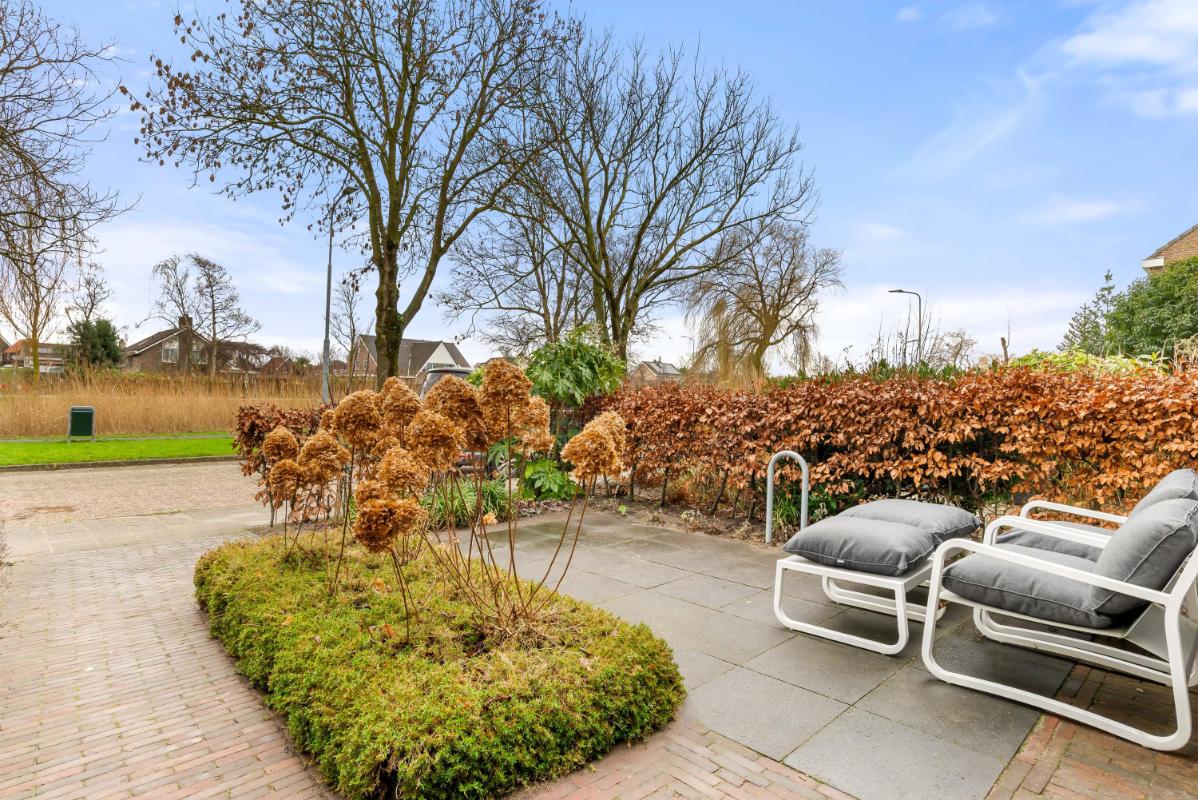 Via de fraai aangelegde voortuin bereikt u de entree met een charmant afdakje. Binnen wordt u direct welkom geheten door strak gestuukte wanden en een modern toilet – een voorproefje van de verzorgde afwerking die u in de rest van de woning aantreft.