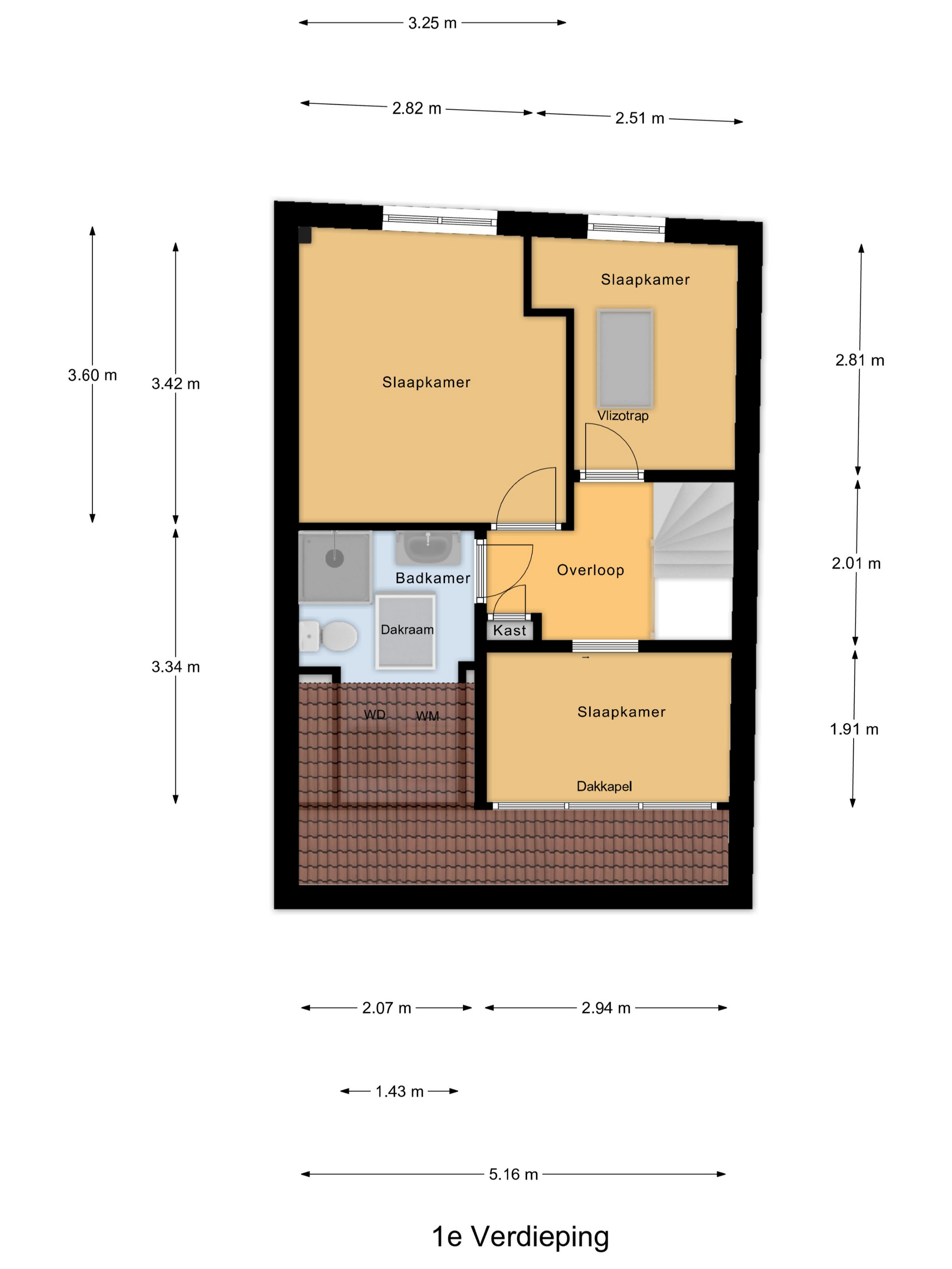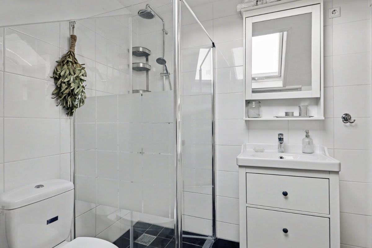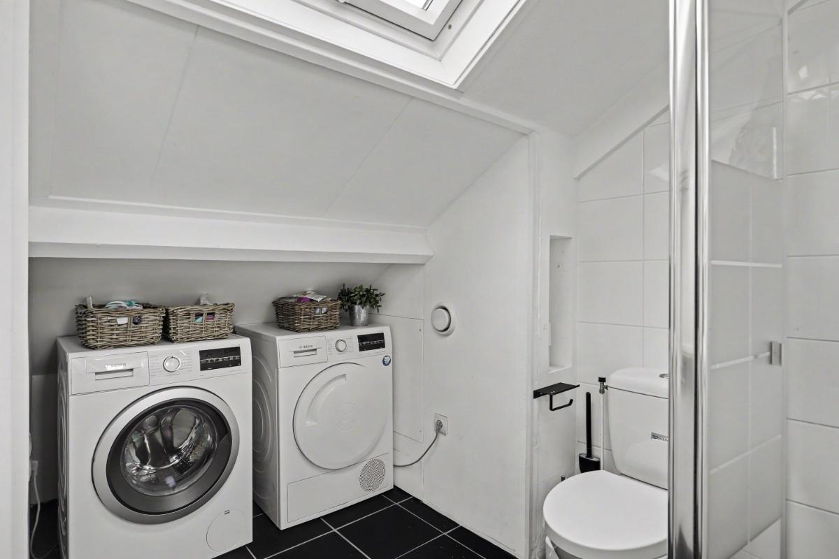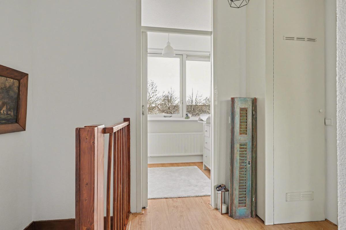Eerste verdieping Op de eerste verdieping vindt u een overloop met toegang tot drie slaapkamers en een complete badkamer. De badkamer is uitgerust met een douche, toilet, wastafelmeubel (2020) en aansluiting voor de wasmachine. Tevens is er een praktische bergkast met opstelling van de CV-ketel (Intergas van 2019).