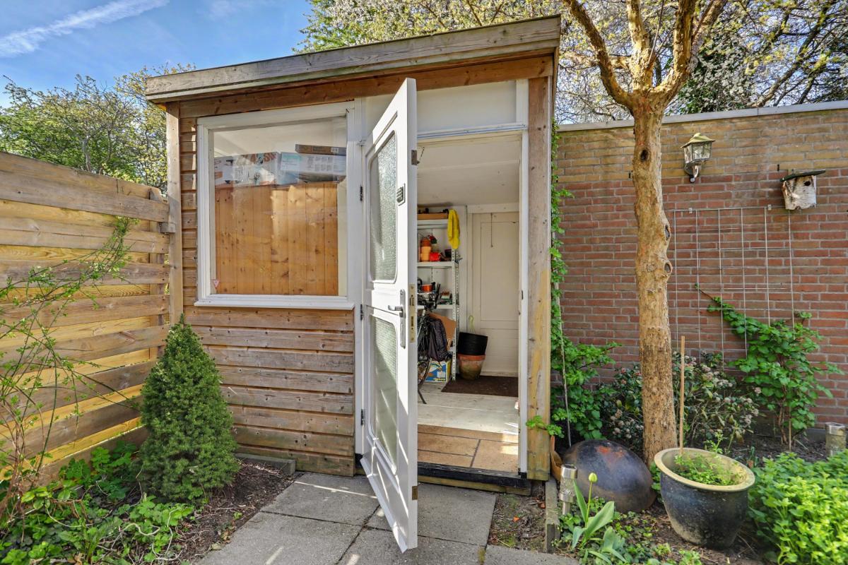 De indeling is als volgt: Begane grond Via de entree komt u in de hal met meterkast en toiletruimte. De lichte en ruime woon-/eetkamer vormt het hart van de woning en staat in open verbinding met de keuken, die is voorzien van diverse inbouwapparatuur. Vanuit de woonkamer heeft u toegang tot de zonnige achtertuin op het zuidwesten. De tuin is onderhoudsvriendelijk aangelegd en beschikt over een vrijstaande berging.