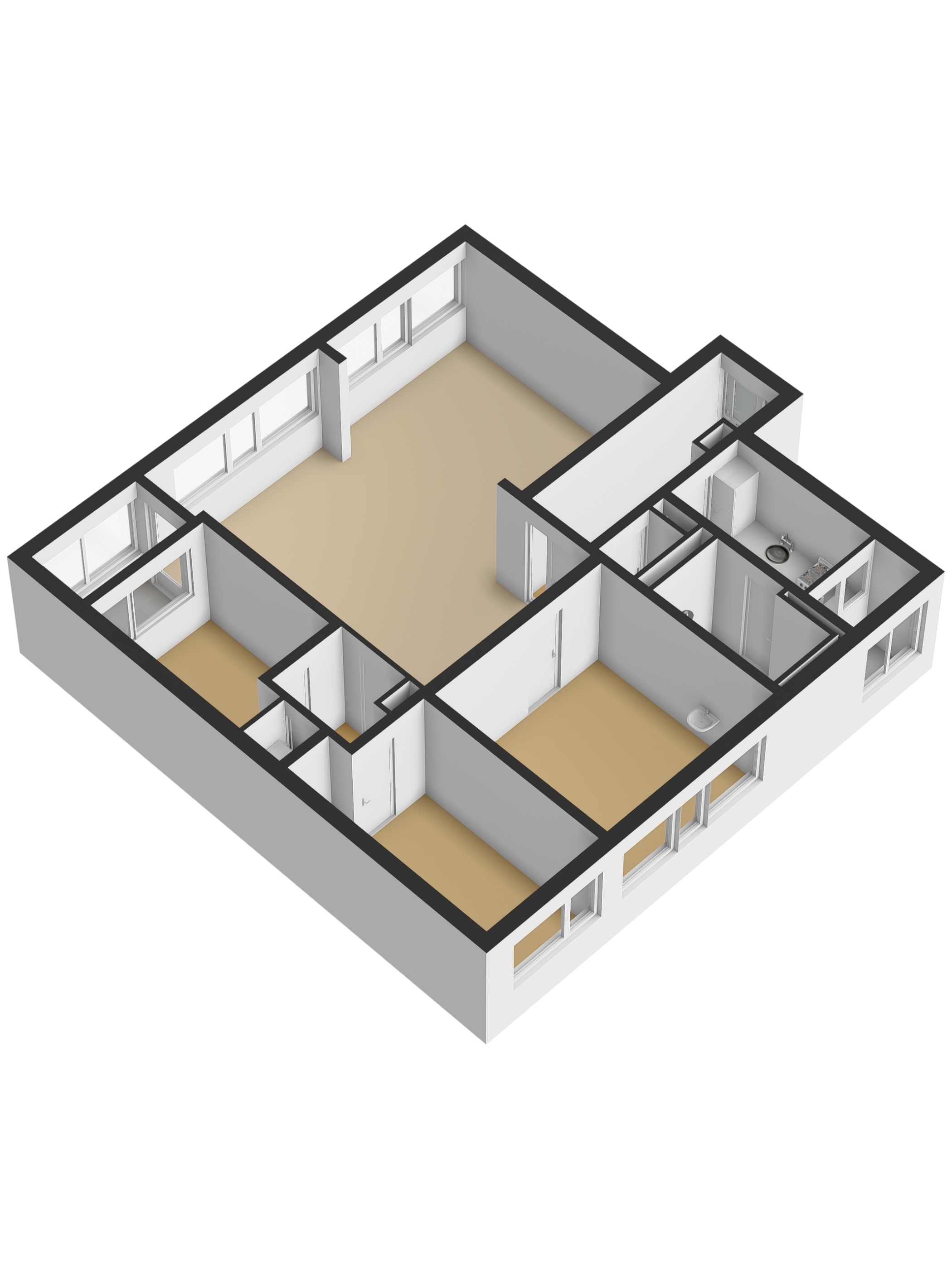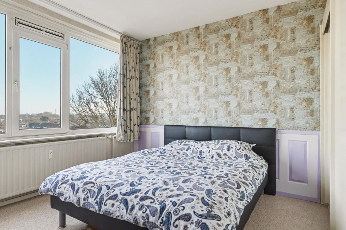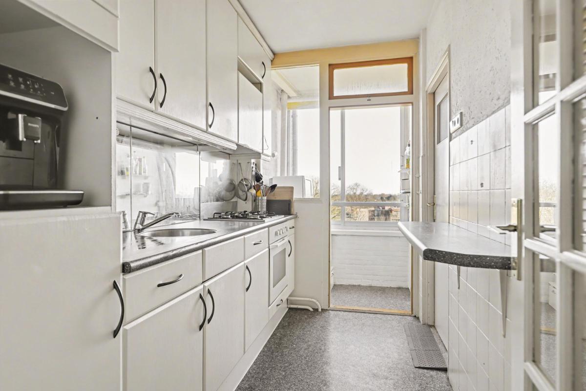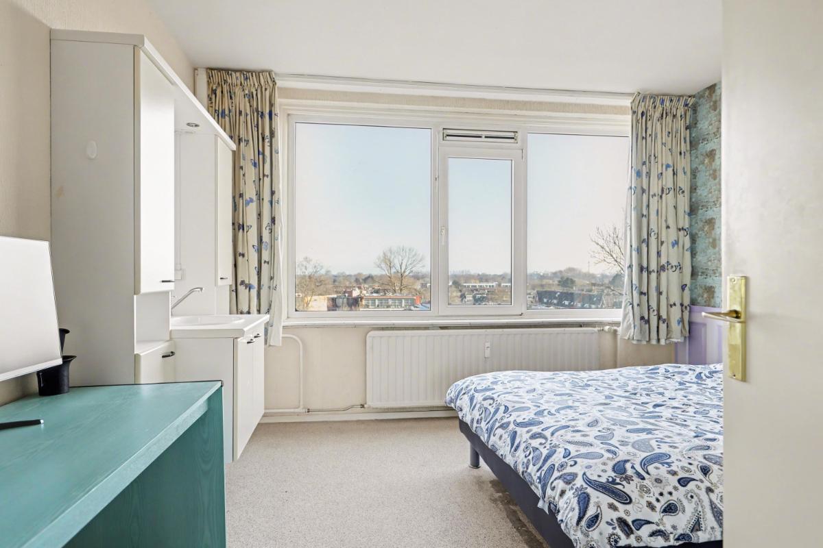 6e Verdieping Entree/hal met meterkast en garderoberuimte. Separate toiletruimte. De eenvoudige keukenopstelling biedt toegang tot het balkon/de buitenruimte. De badkamer is voorzien van een douche en wastafel. De royale en lichte living vormt het hart van de woning en biedt volop mogelijkheden om een eigentijdse woonruimte te creëren. Dankzij de grote raampartijen geniet u hier van een uitstekende daglichttoetreding en het weidse uitzicht. Verder beschikt het appartement over drie goed bemeten slaapkamers van circa 10m², 12m² en 16m². Een groot pluspunt: de slaapkamers grenzen niet aan de galerij, wat zorgt voor extra rust en privacy.