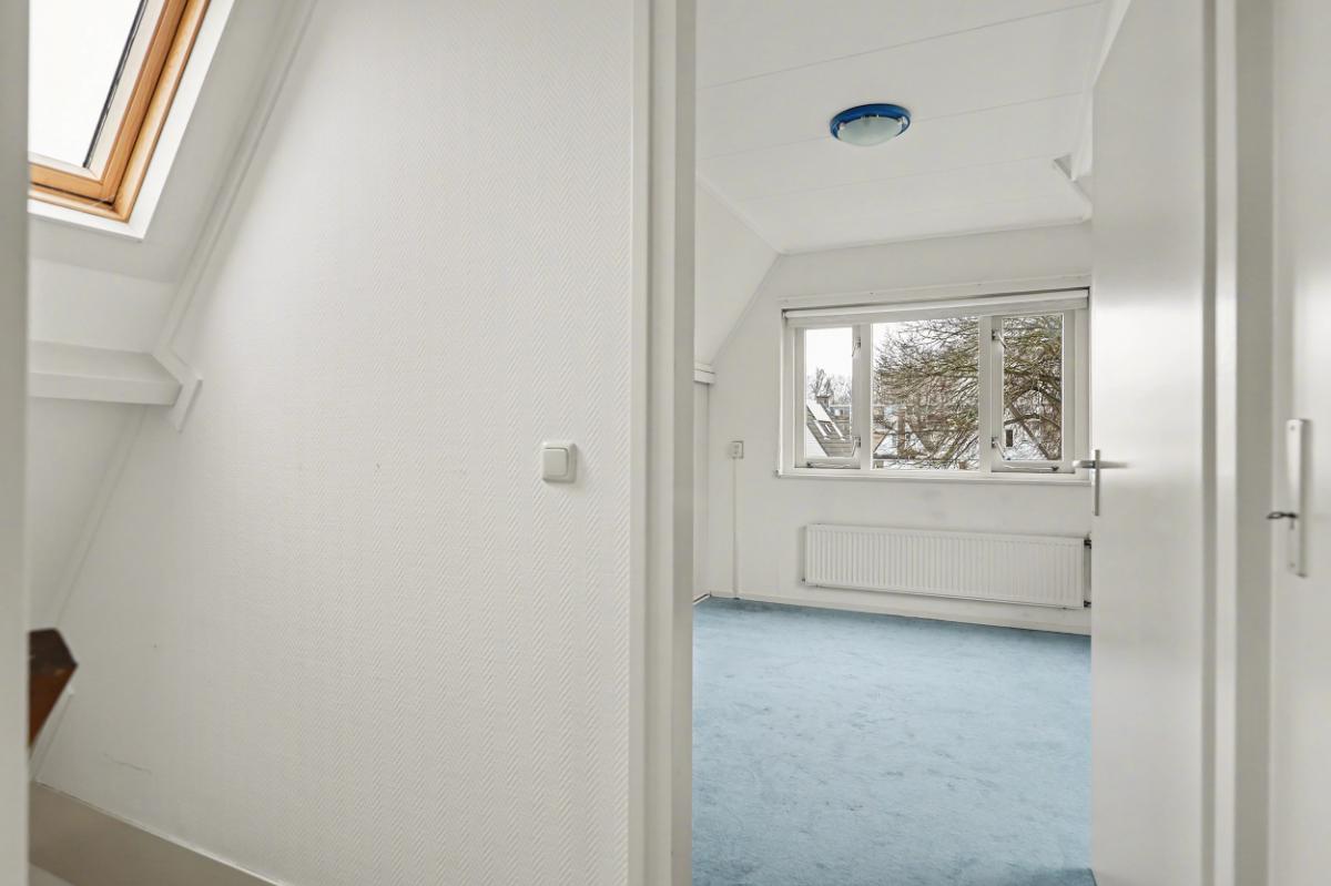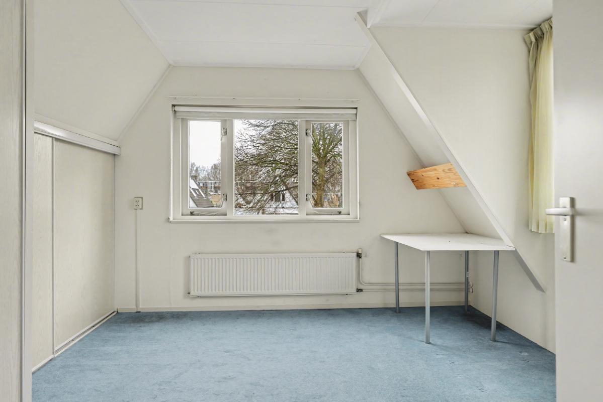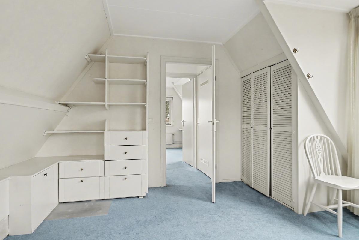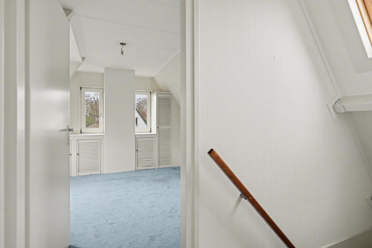 Eerste verdieping: De overloop beschikt over een Velux dakraam, wat zorgt voor extra lichtinval. Hier bevinden zich twee slaapkamers en een aparte CV-ruimte met de Atag HR-combiketel. De twee slaapkamers zijn beide ruim bemeten en hebben veel ramen voor voldoende lichtinval.