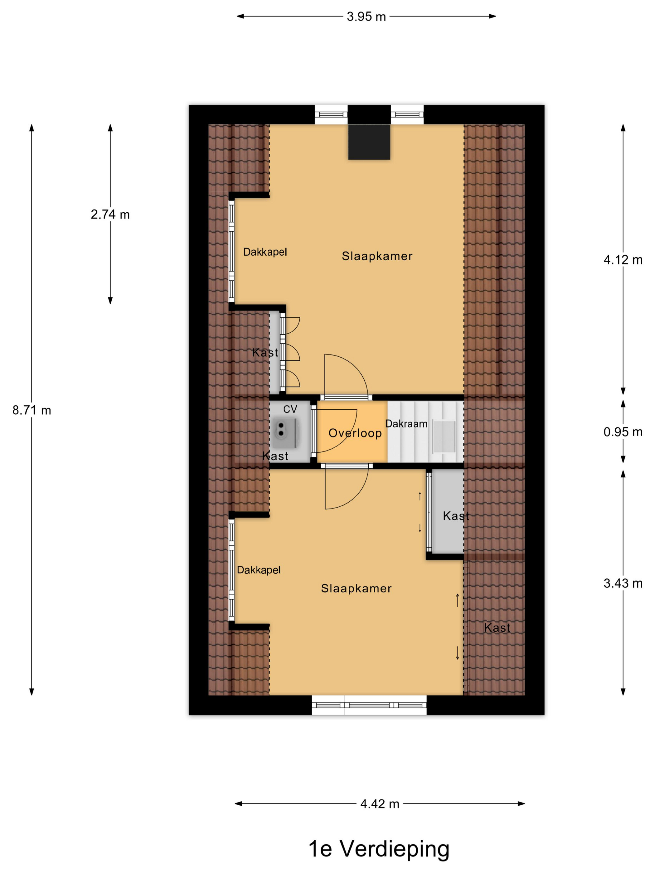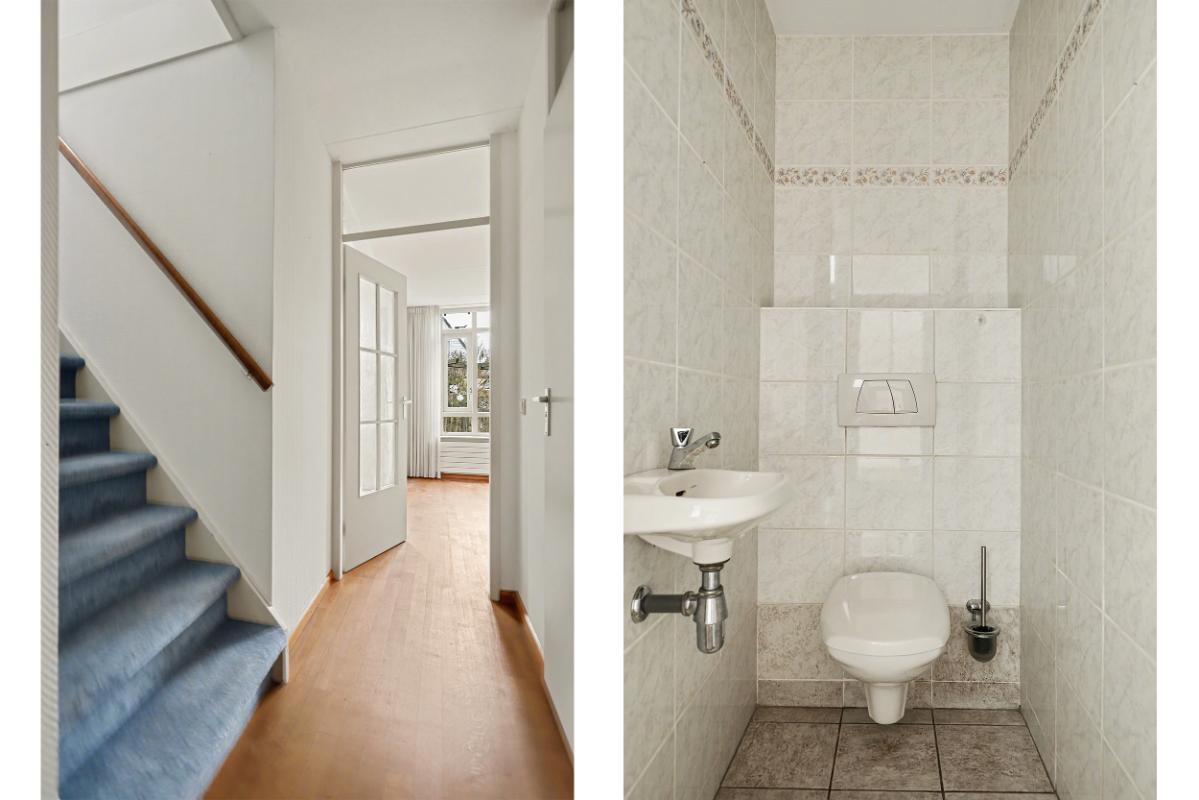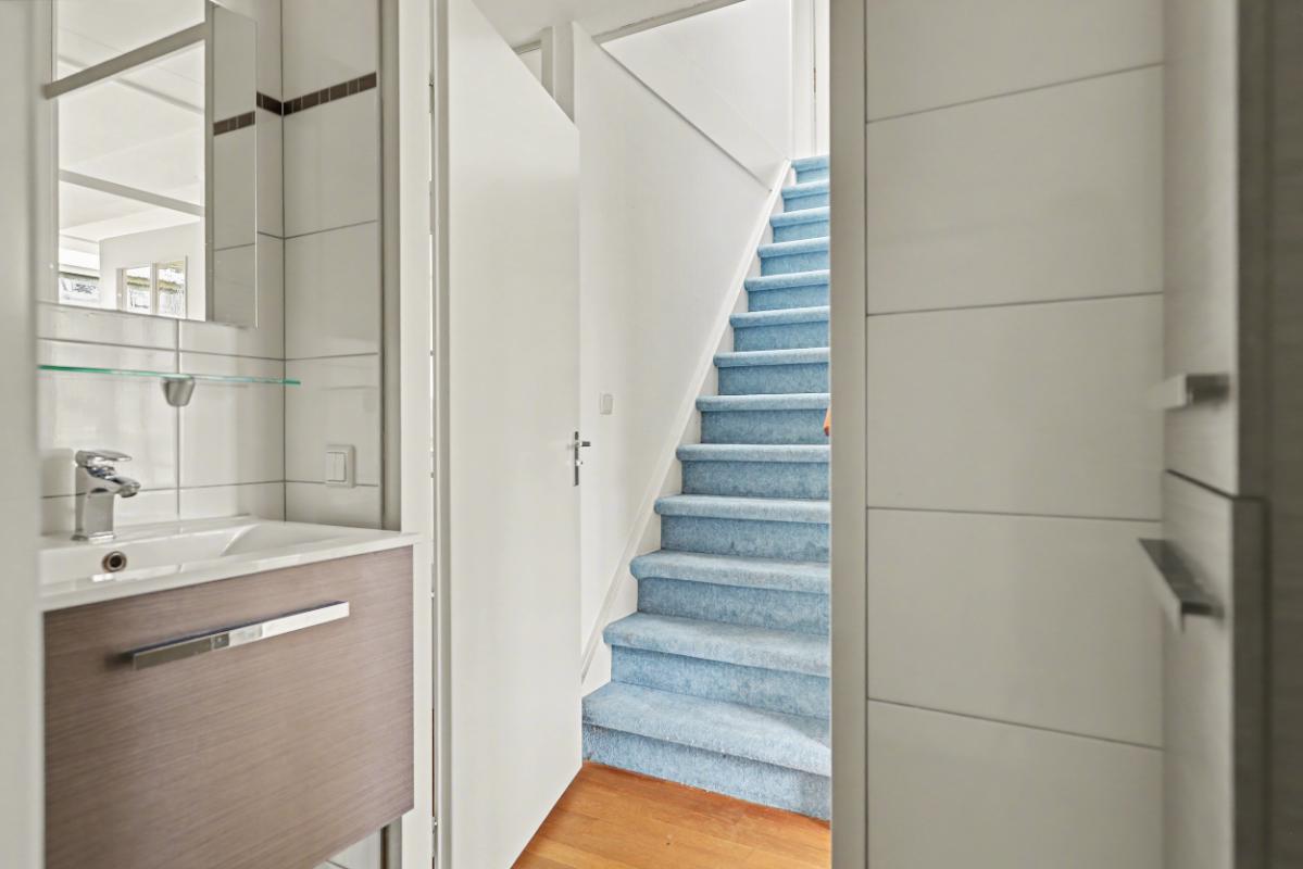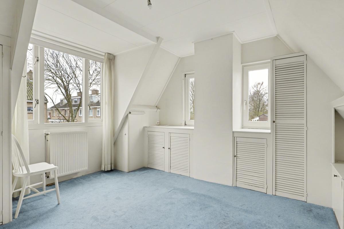 Eerste verdieping: De overloop beschikt over een Velux dakraam, wat zorgt voor extra lichtinval. Hier bevinden zich twee slaapkamers en een aparte CV-ruimte met de Atag HR-combiketel. De twee slaapkamers zijn beide ruim bemeten en hebben veel ramen voor voldoende lichtinval.