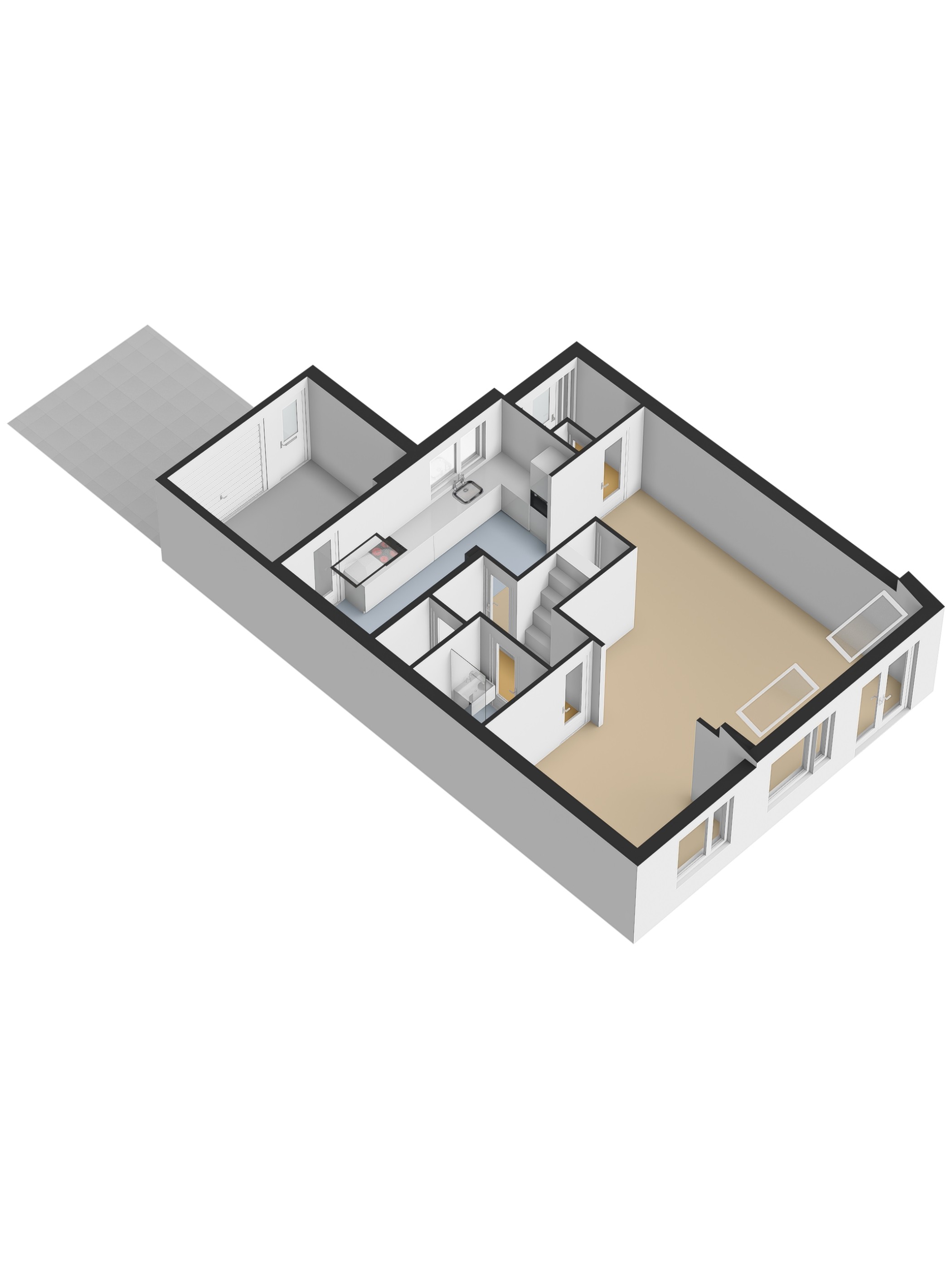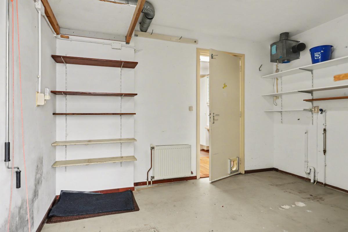 De berging/bijkeuken is bereikbaar via een eigen toegangsdeur en beschikt over de wasmachine- en drogeraansluiting.