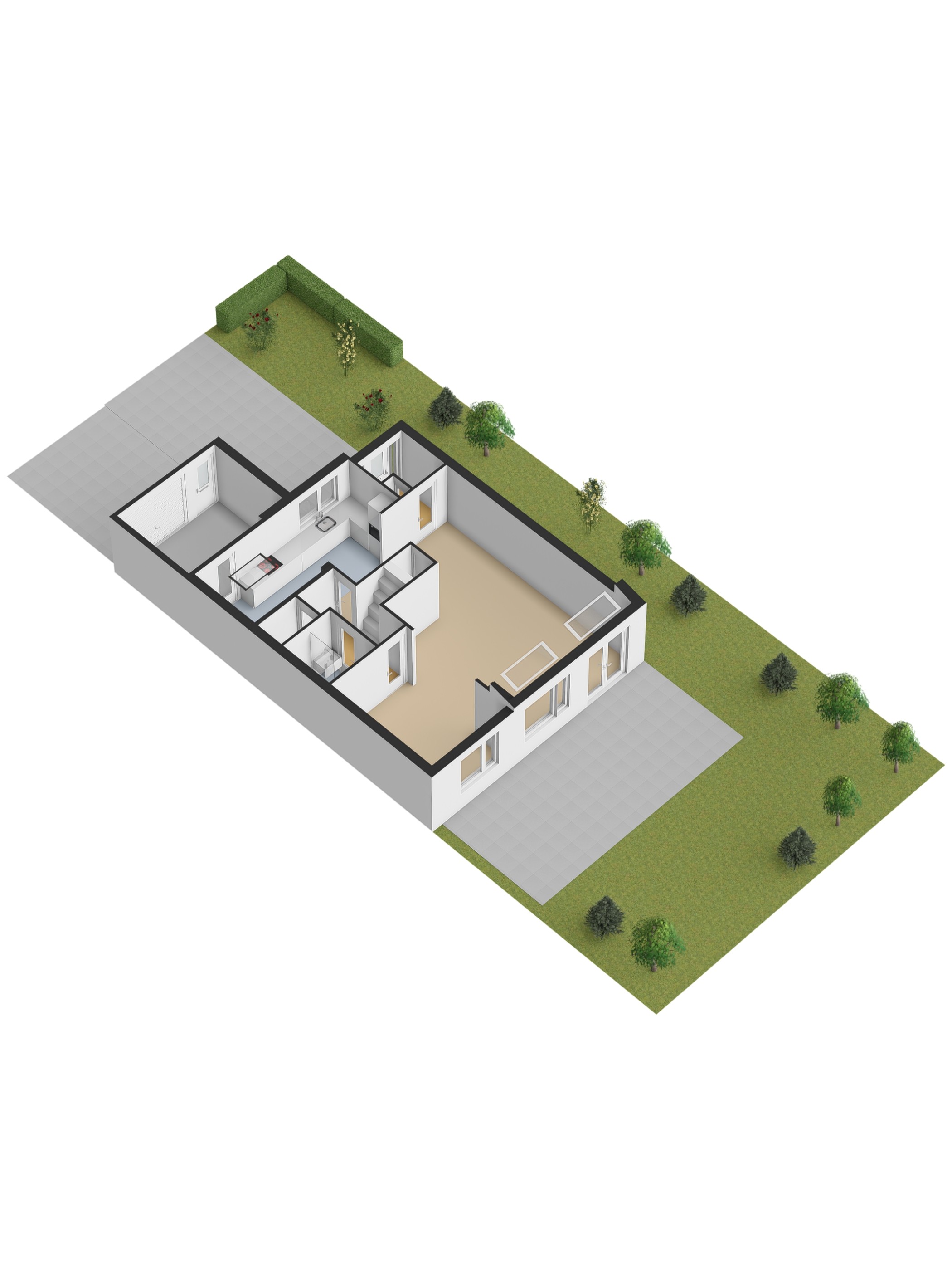 De achtertuin is gelegen op het westen en biedt veel privacy en tevens kunt u tot laat genieten van de zon. Daarbij heeft de woning nog twee extra slaapkamers op de 1e verdieping.