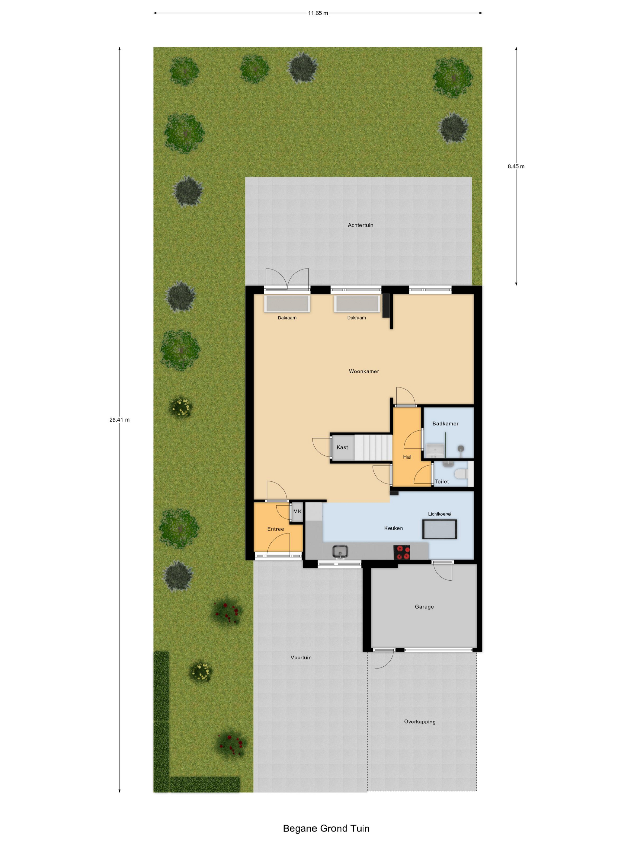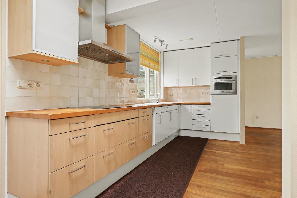 De indeling is als volgt: Begane grond: bij binnenkomst komt u in de hal welke is voorzien van de meterkast. Aansluitend komt u in de ruime woonkamer met aan de achterzijde grote raampartijen die zorgen voor veel lichtinval en openslaande tuindeuren die toegang geven tot de heerlijke achtertuin. De achtertuin is gelegen op het westen. De halfopen keuken is praktisch ingericht en voorzien van diverse inbouwapparatuur, waaronder een keramische kookplaat, combi-magnetron, koelkast, afzuigkap en vaatwasser. Dankzij de lichtkoepel valt hier prettig daglicht binnen. Op de begane grond bevinden zich tevens een slaapkamer en een geheel betegelde badkamer, uitgerust met een douche en wastafelmeubel. Via de tussenhal op de begane grond is de 1e verdieping en de toiletruiimte bereikbaar.