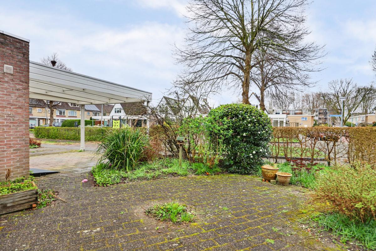 Buitenruimte: De woning beschikt over een voor-, zij- en achtertuin met achterom. De achtertuin is gelegen op het westen, ideaal om in de middag en avond van de zon te genieten. Daarnaast is er een aangebouwde houten carport en een parkeerplaats.