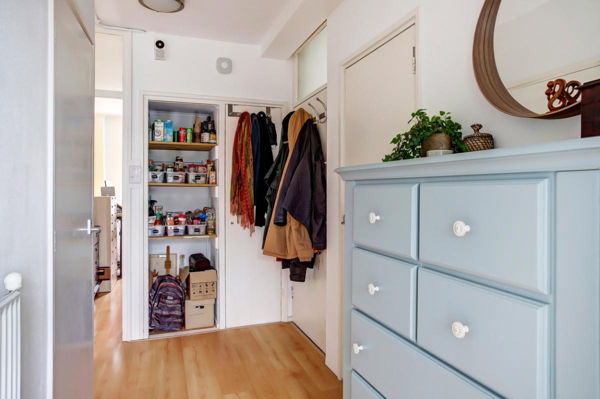 De indeling is als volgt: Via de gezamenlijke entree met brievenbussen en intercom betreedt u het complex. Op de begane grond bevindt zich de inpandige, ruime berging met de CV-ketel. De trap leidt u naar de woning. Eenmaal binnen komt u in de hal: een prettige en centrale ruimte met toegang tot alle vertrekken. Hier vindt u tevens een bergkast en het separate toilet. Aan de voorzijde van het appartement ligt de tweede slaapkamer, ideaal als slaap-, werk- of logeerkamer.