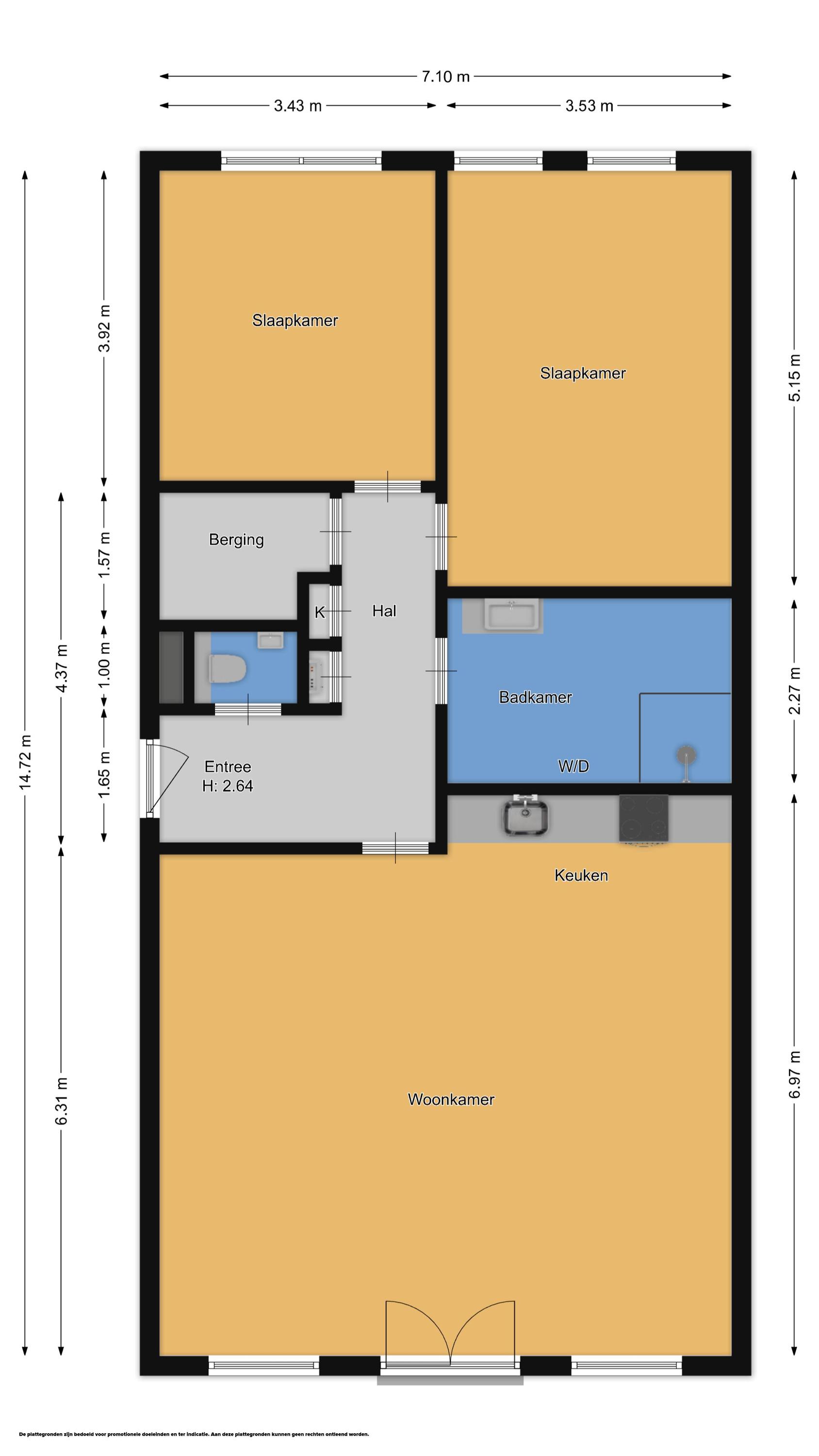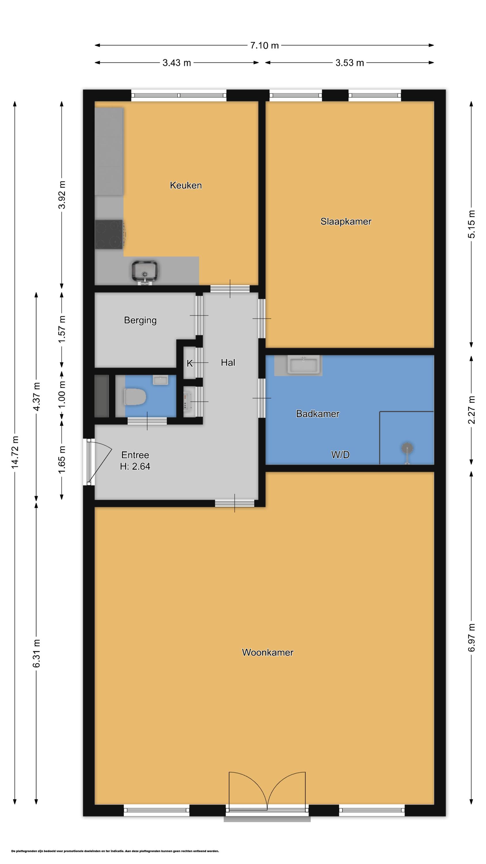Indeling: Via de ruime entreehal wordt u welkom geheten in het appartement. Hier vindt u het separate toilet met fonteintje, de meterkast en een zeer royale bergkast met aansluitingen voor wasmachine en droger. Praktisch en netjes uit het zicht.
