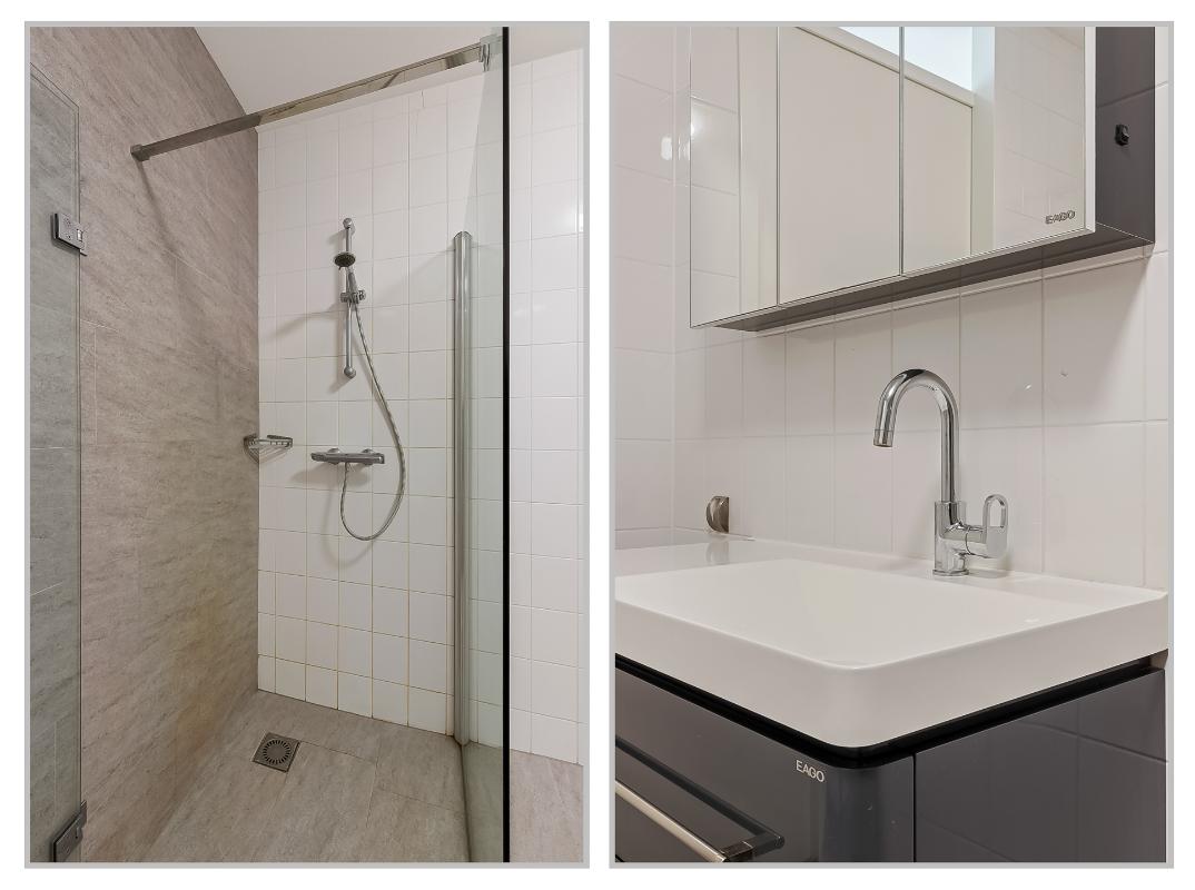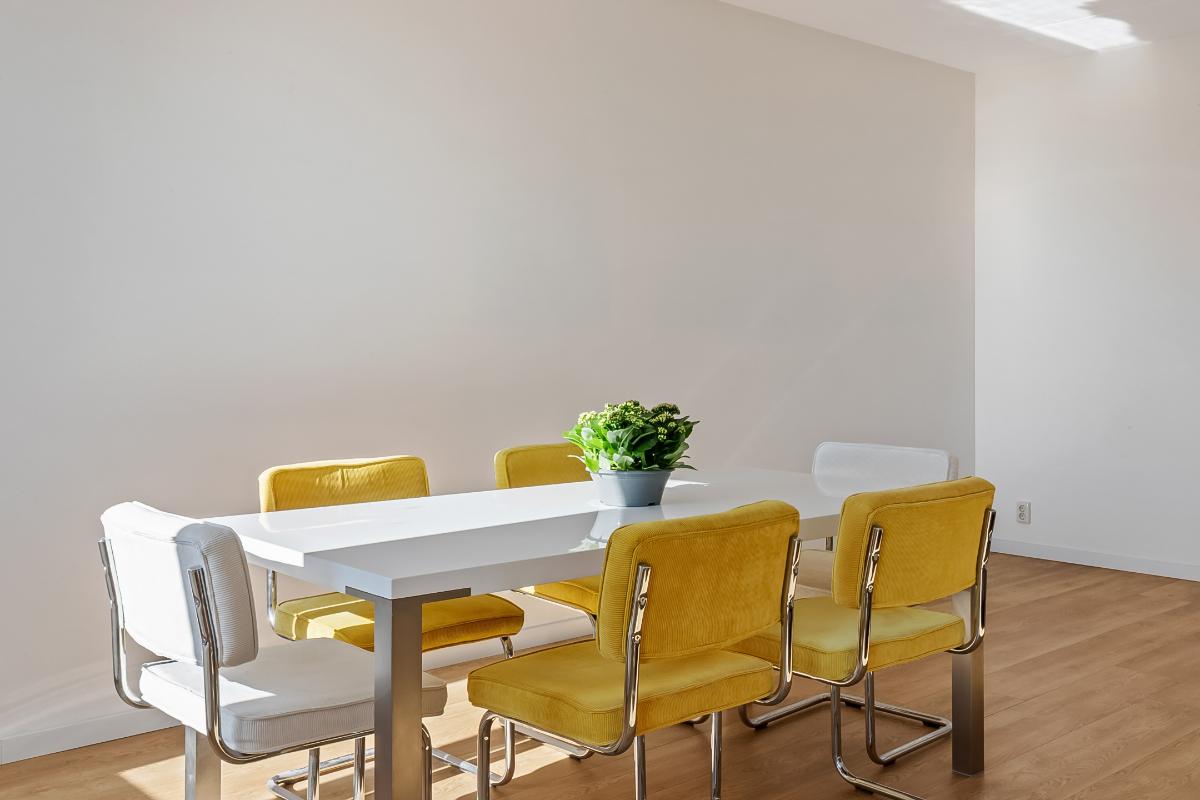 De woonkamer is oorspronkelijk ontworpen als woonruimte met open eetkeuken. Alle aansluitingen voor een keuken zijn nog volledig aanwezig en discreet weggewerkt achter een dubbele wand, waardoor het appartement eenvoudig kan worden teruggebracht naar de oorspronkelijke 3-kamerindeling. Dit biedt u een mooie kans om de woning geheel naar eigen wens en woonstijl in te richten.