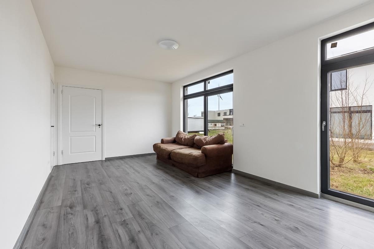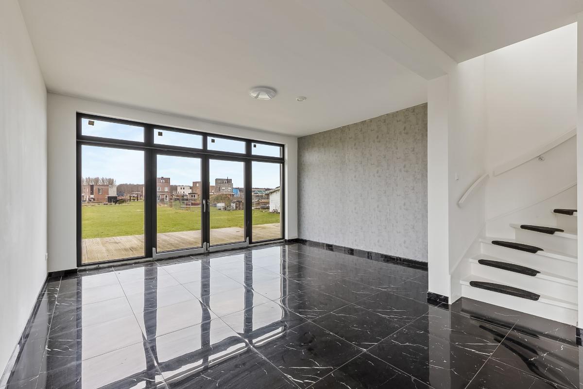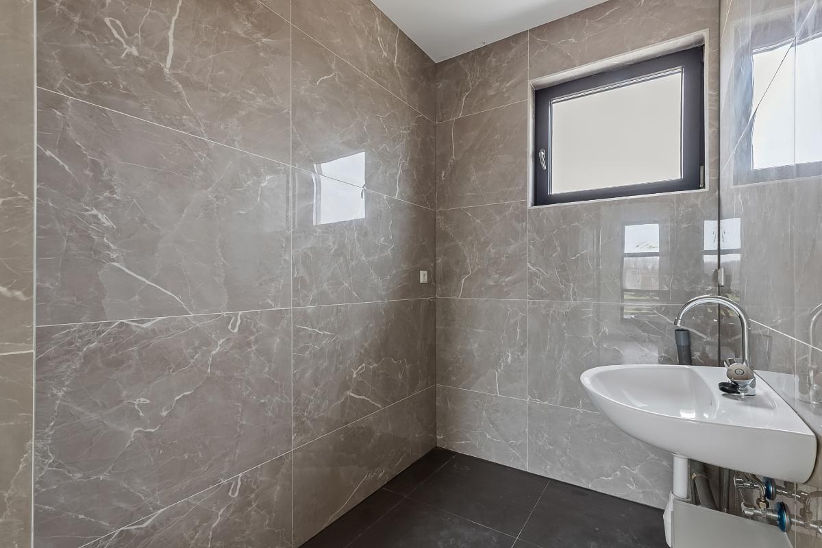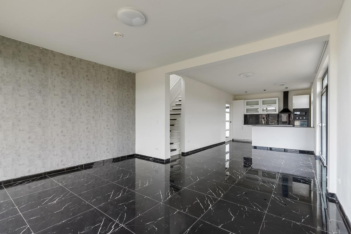 Aan de andere zijde van de entree bevindt zich een tweede, lichte en ruime woonkamer met een keuken die nog naar eigen wens kan worden ingericht. Vanuit deze woonkamer is de badkamer bereikbaar, voorzien van een inloopdouche, wastafelmeubel en een moderne afwerking. Tevens is er directe toegang tot een slaapkamer op de begane grond, ideaal voor gasten of gelijkvloers wonen.