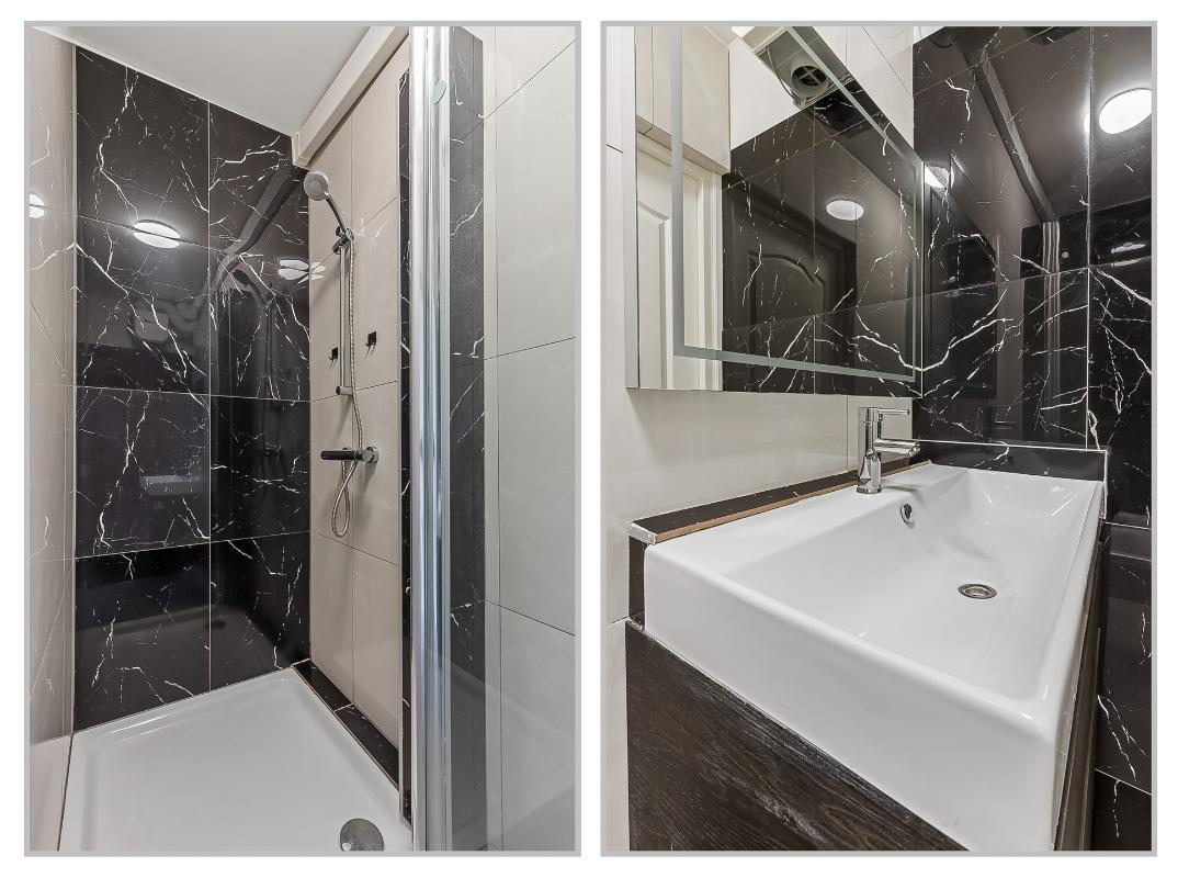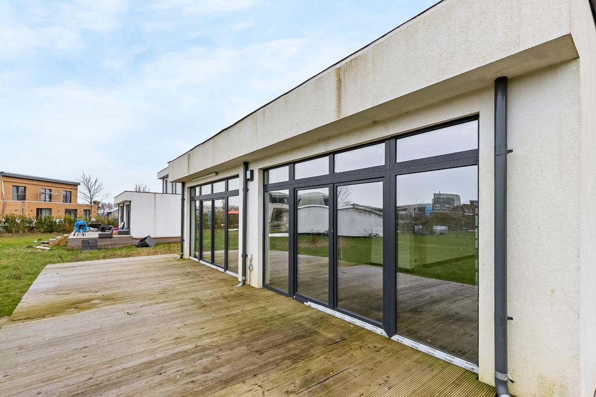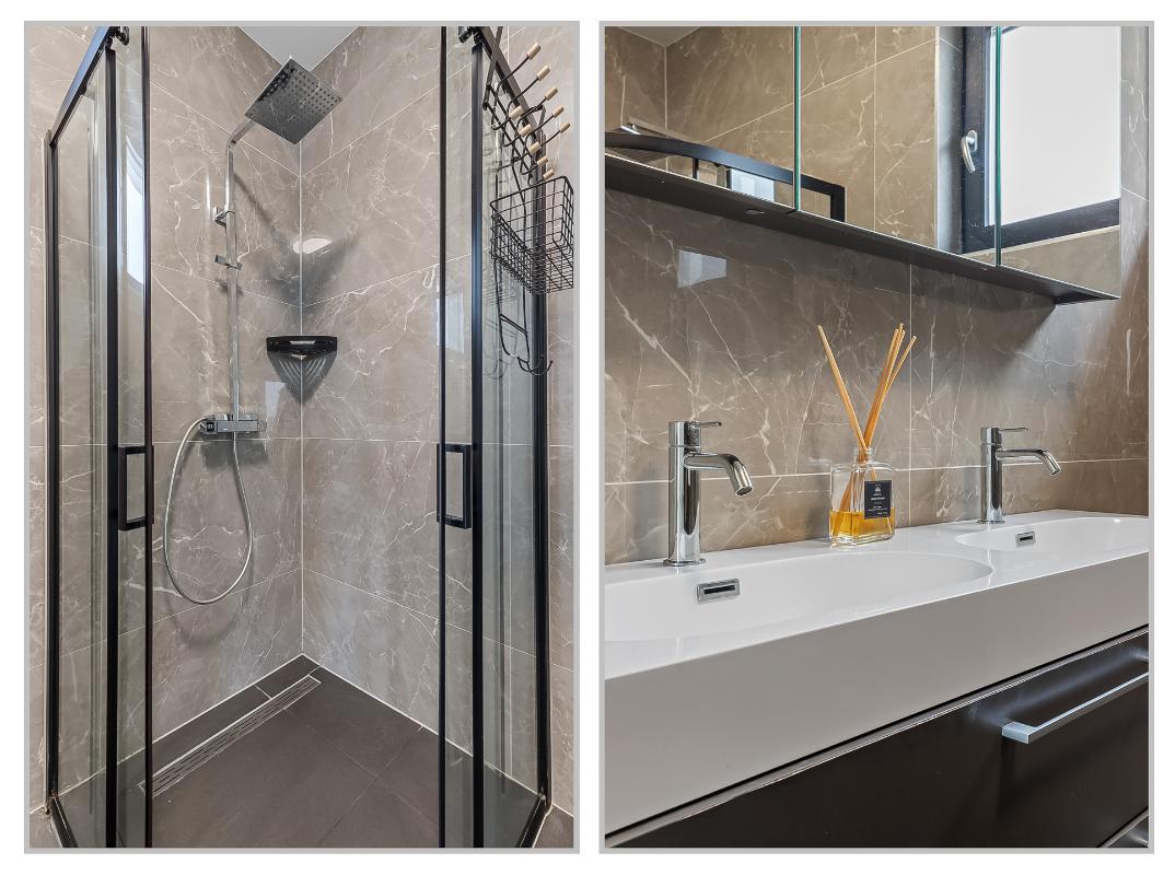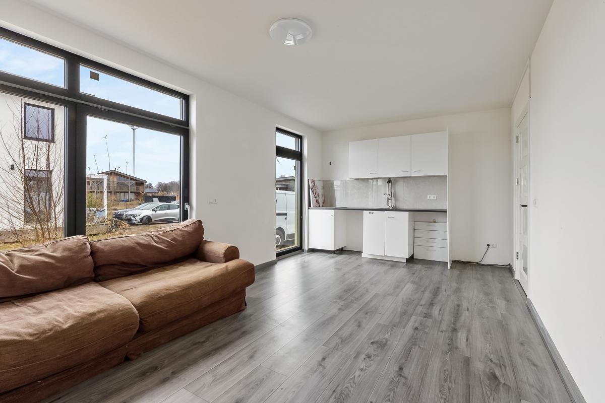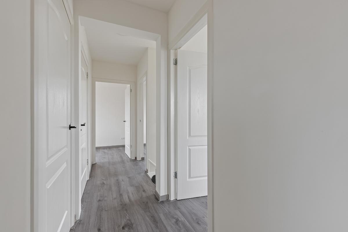 Aan de andere zijde van de entree bevindt zich een tweede, lichte en ruime woonkamer met een keuken die nog naar eigen wens kan worden ingericht. Vanuit deze woonkamer is de badkamer bereikbaar, voorzien van een inloopdouche, wastafelmeubel en een moderne afwerking. Tevens is er directe toegang tot een slaapkamer op de begane grond, ideaal voor gasten of gelijkvloers wonen.