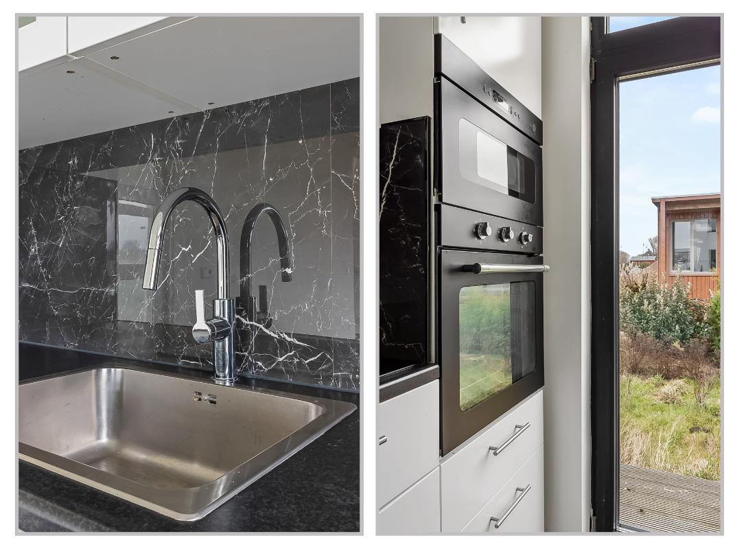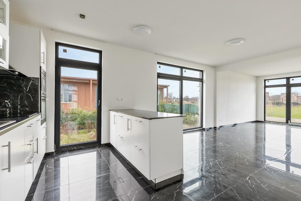 Vanuit de hal loop je door naar de ruime, lichte woonkamer met open keuken. De keuken is modern en volledig uitgerust met diverse inbouwapparatuur zoals oven, magnetron, vaatwasser, inductiekookplaat en afzuigkap, koelkast en vriezer ideaal voor wie van koken houdt en gezelligheid wil combineren met comfort. Via de schuifpui in de woonkamer is de achtertuin direct bereikbaar. De woning is volledig voorzien van vloerverwarming, inclusief de eerste verdieping.