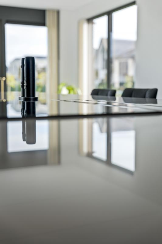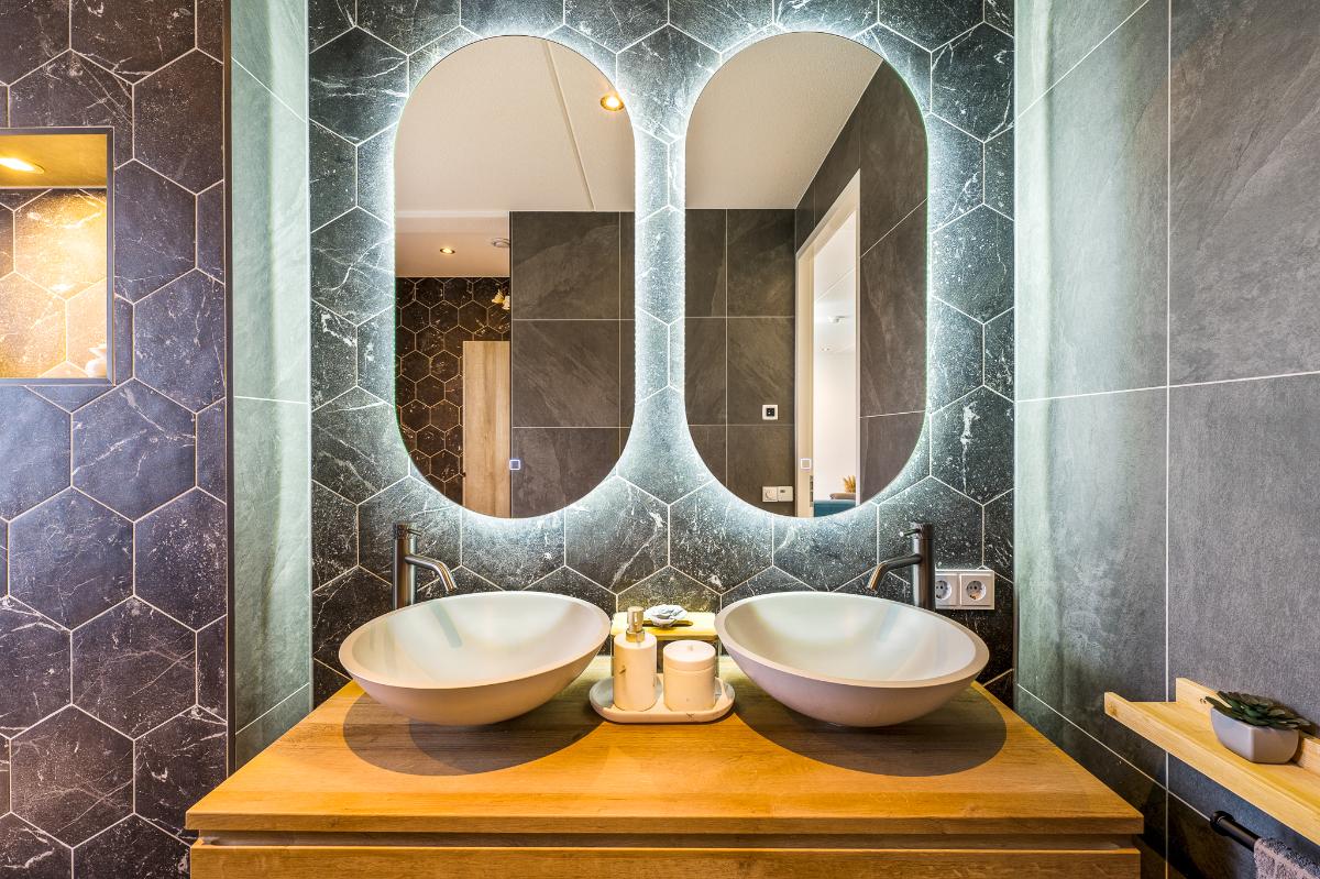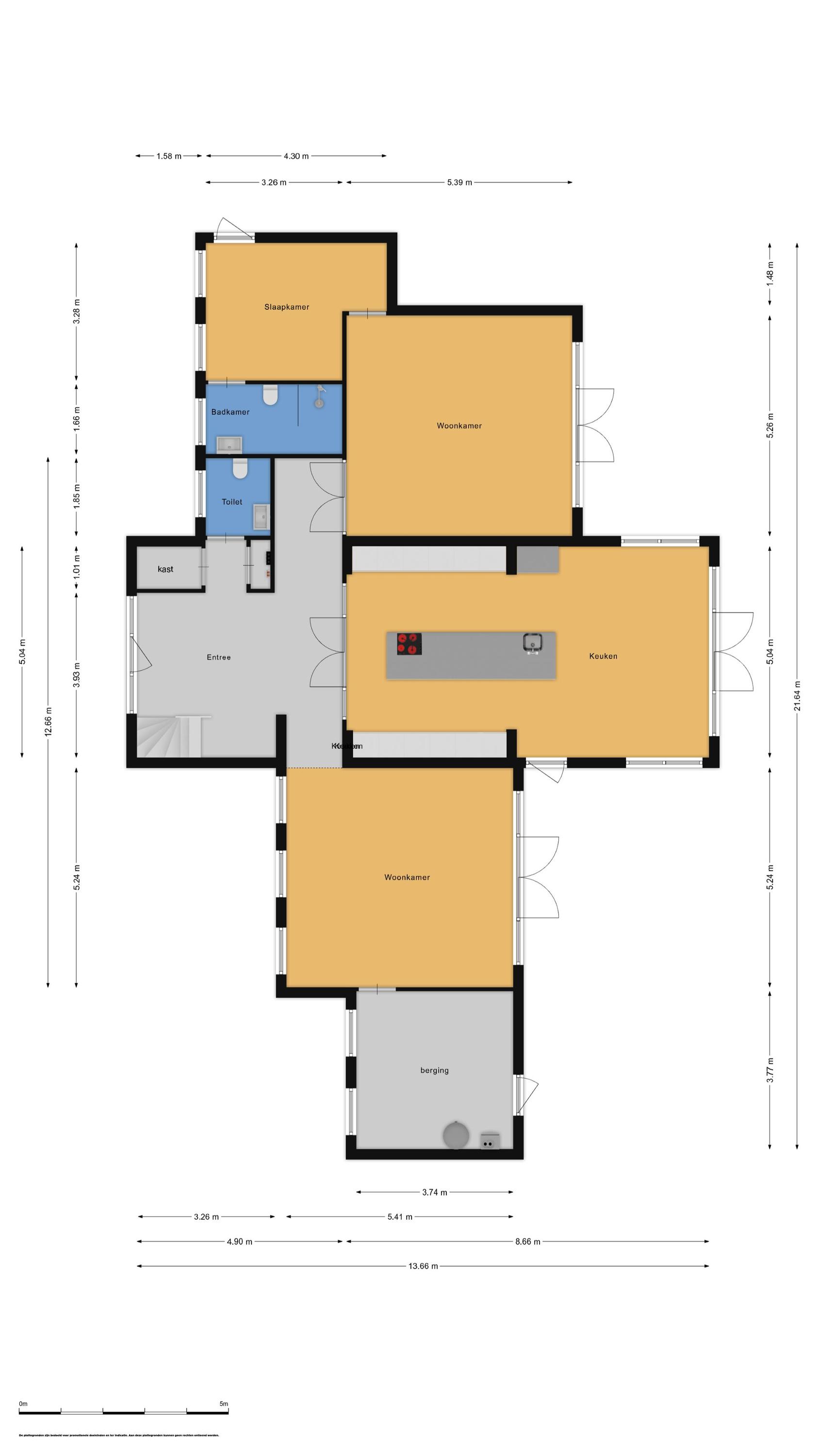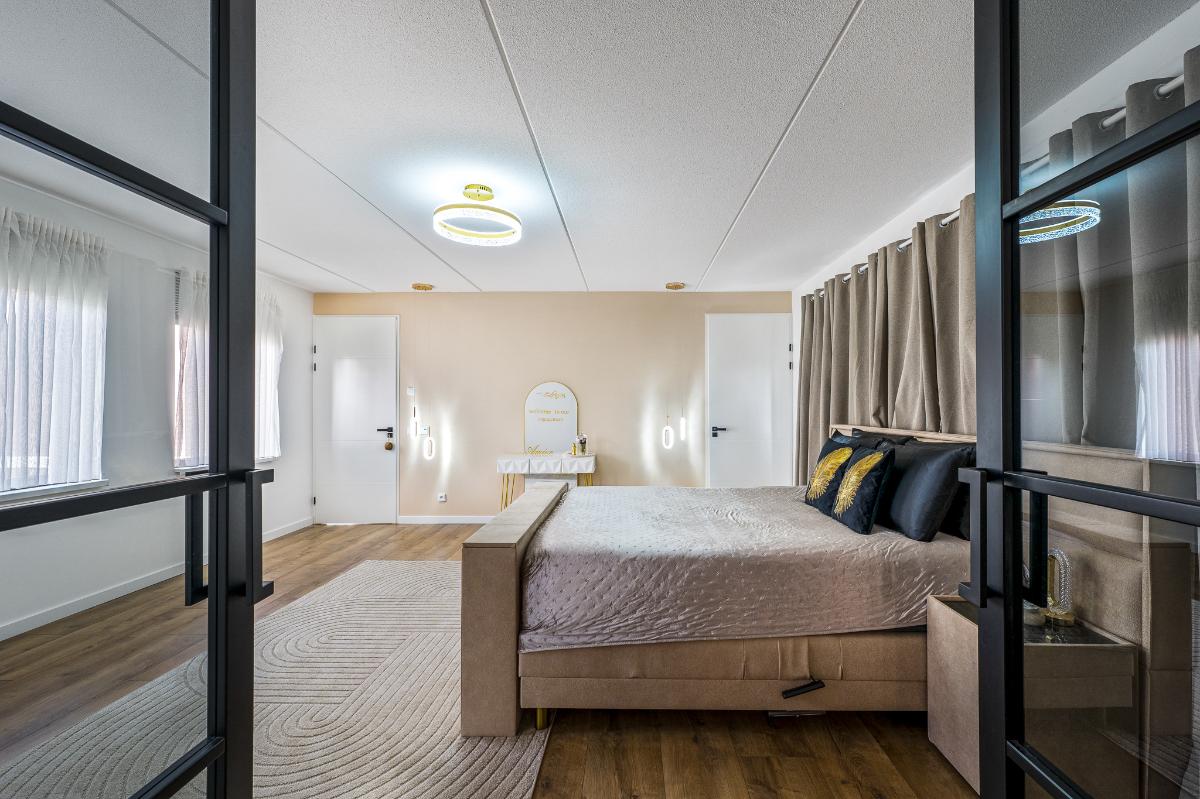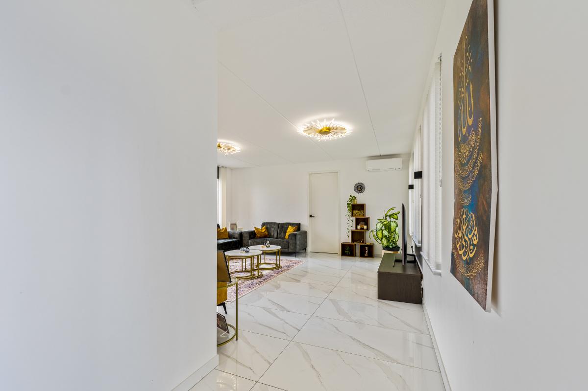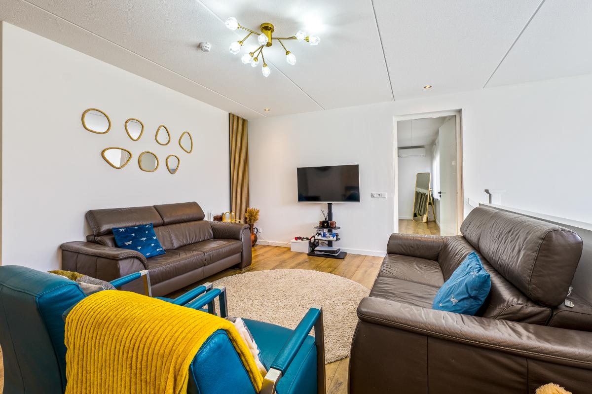 Indeling: Begane grond: Indrukwekkende entree met hoge raampartijen, een imposante hal met veel hoogte, open trappenhuis met een vide. Toilet met fontein en meterkast. Dubbele deuren geven de entree naar de eetkeuken die het hart van dit fijne familiehuis is. De keuken bestaat uit een groot kookeiland met een bar, een inductiekookplaat met ingebouwde afzuigunit, wasbak met Quooker, 2 koelkasten, 2 vriezers, 2 ovens, warmhoudlade en vaatwasser. De keuken heeft heel veel kastruimte. Vanuit de keuken zijn openslaande deuren naar het grote terras en de tuin. Via de centrale hal is de woonkamer bereikbaar die tevens is voorzien van openslaande deuren naar het terras en de tuin. Hier is tevens een doorloop naar de inpandige bergruimte met warmtepomp-installatie. Vanuit de berging is de tuin ook weer bereikbaar. Aan de andere zijde van de centrale hal bevindt zich het aparte woongedeelte. Hier is een grote woonkamer, tevens met openslaande deuren naar de tuin. Verder is hier een aparte slaapkamer en annex een badkamer die is voorzien van een inloopdouche, toilet en wastafel. Dit aparte gedeelte kan ook heel goed dienst doen als kantoor of praktijk aan huis.