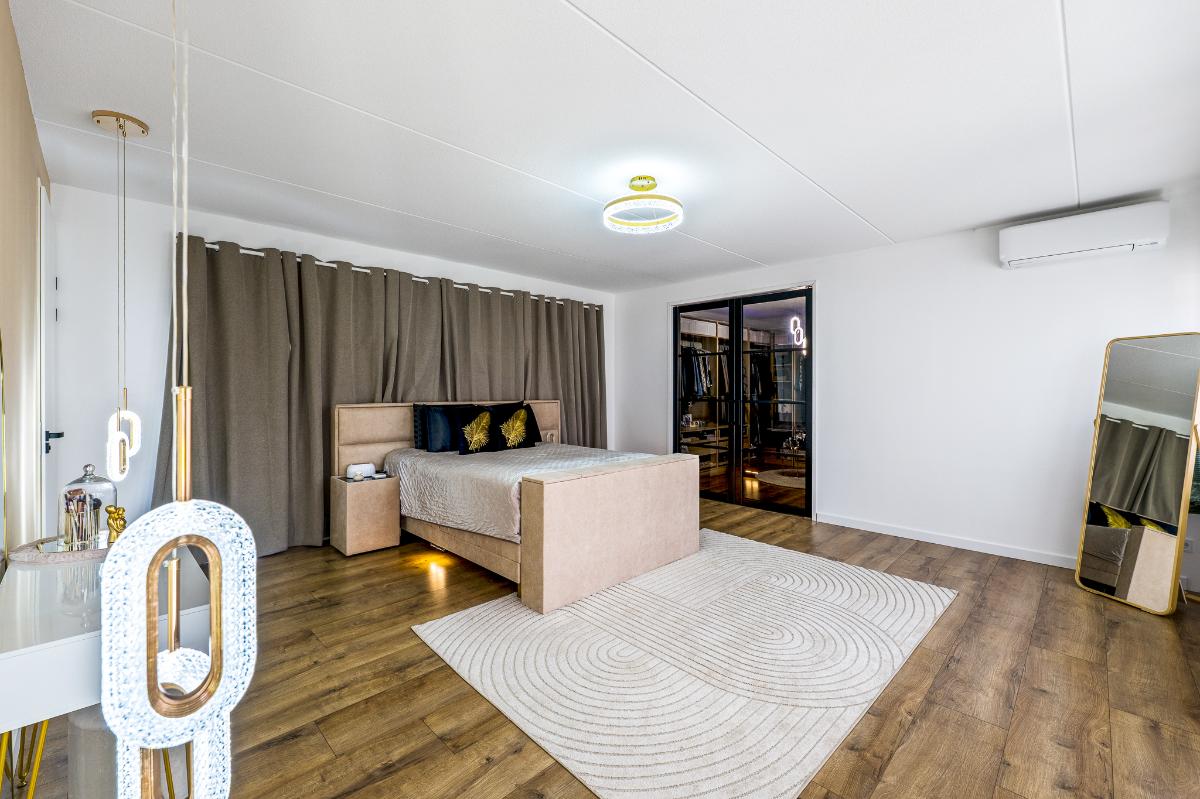 Werkelijk schitterende en zeer hoogwaardig afgewerkte vrijstaande statige villa In de villawijk “Overgooi” gelegen op een royaal kavel van 1988 m2. Dit instapklare huis beschikt over een eigen woonunit op de begane grond dat is voorzien van een woonkamer, slaapkamer en eigen complete badkamer. Eigenlijk is dit dus een zogenaamde “kangaroo-woning”. Ideaal voor een inwonende ouder, maar het kan ook uitstekend dienst doen als een kantoor of praktijk aan huis. In totaal beschikt dit huis over 5 slaapkamers en 3 badkamers. Vanzelfsprekend beschikt het over een energielabel A++ Het is volledig voorzien van vloerverwarming en airco. Deze prachtige super de luxe en duurzame villa is instap klaar en kan zo worden betrokken.