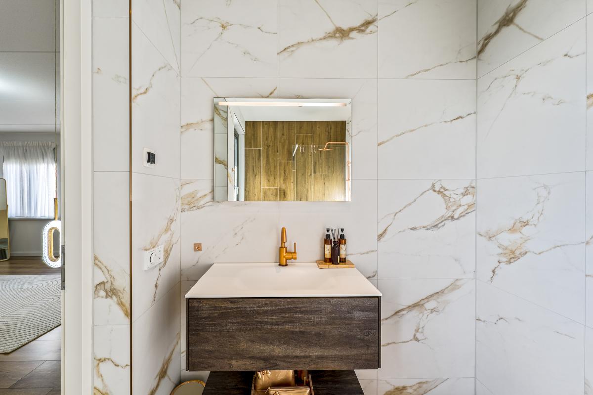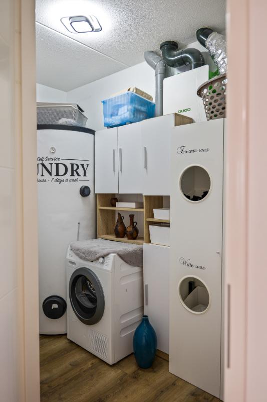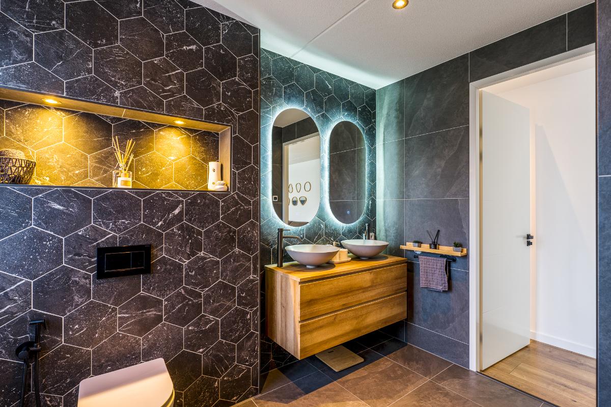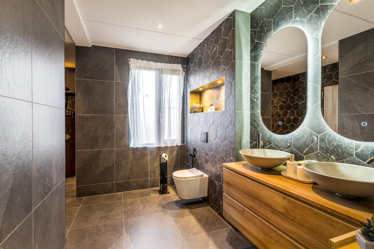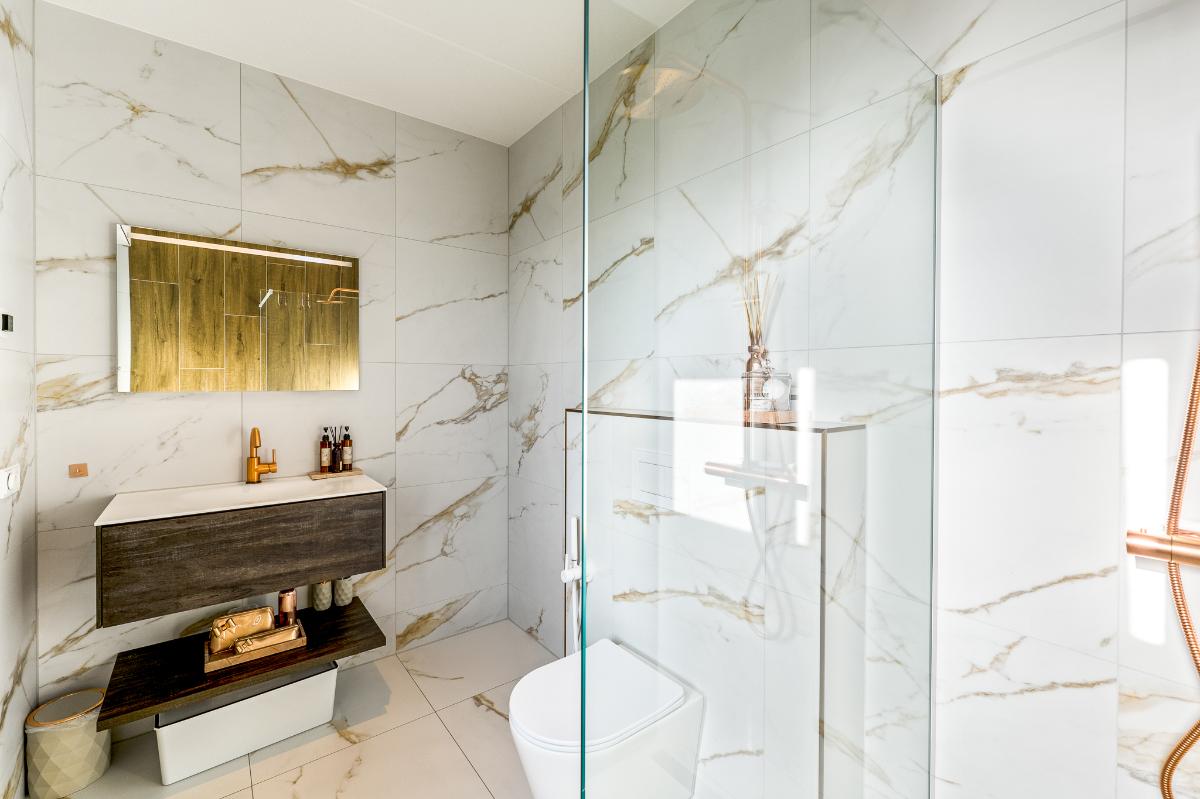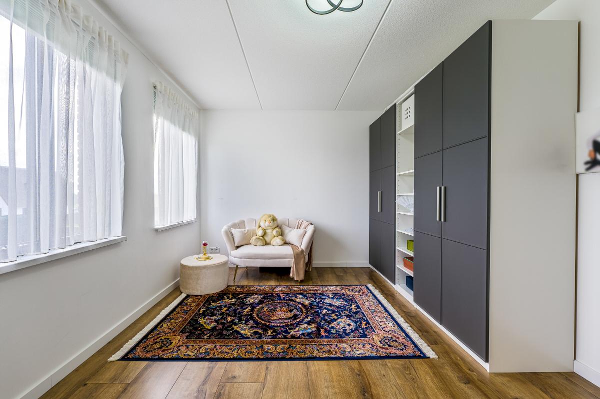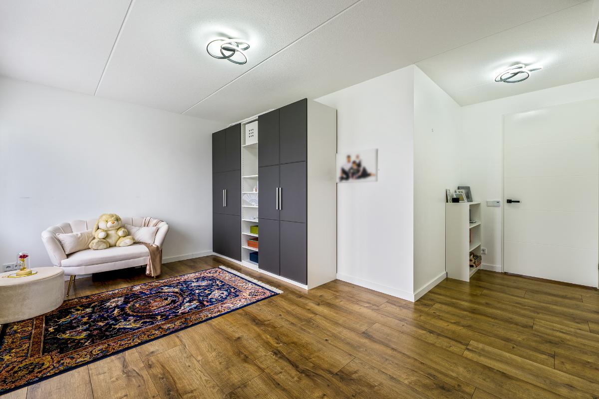Eerste verdieping: Via het mooie open trappenhuis is de vide bereikbaar. en de open vide is de eerste verdieping bereikbaar. Hier is een ventrale hal-/overloop die uitstekend geschikt is als speelruimte-/ chillruimte voor kinderen. Vanuit deze centrale ruimte zijn de 4 grote slaapkamers bereikbaar. De Master bedroom beschikt over een eigen badkamer met inloopdouche, toilet en wastafelmeubel. De master bedroom heeft tevens een grote inloopkast-garderobe. Op deze verdieping is een tweede badkamer die is voorzien van een inloopdouche, toilet en dubbele wastafelmeubel met fraaie spiegels. Er is een wasruimte met aansluiting was- en droogmachine, opstelplaats boiler en ventilatiebox.