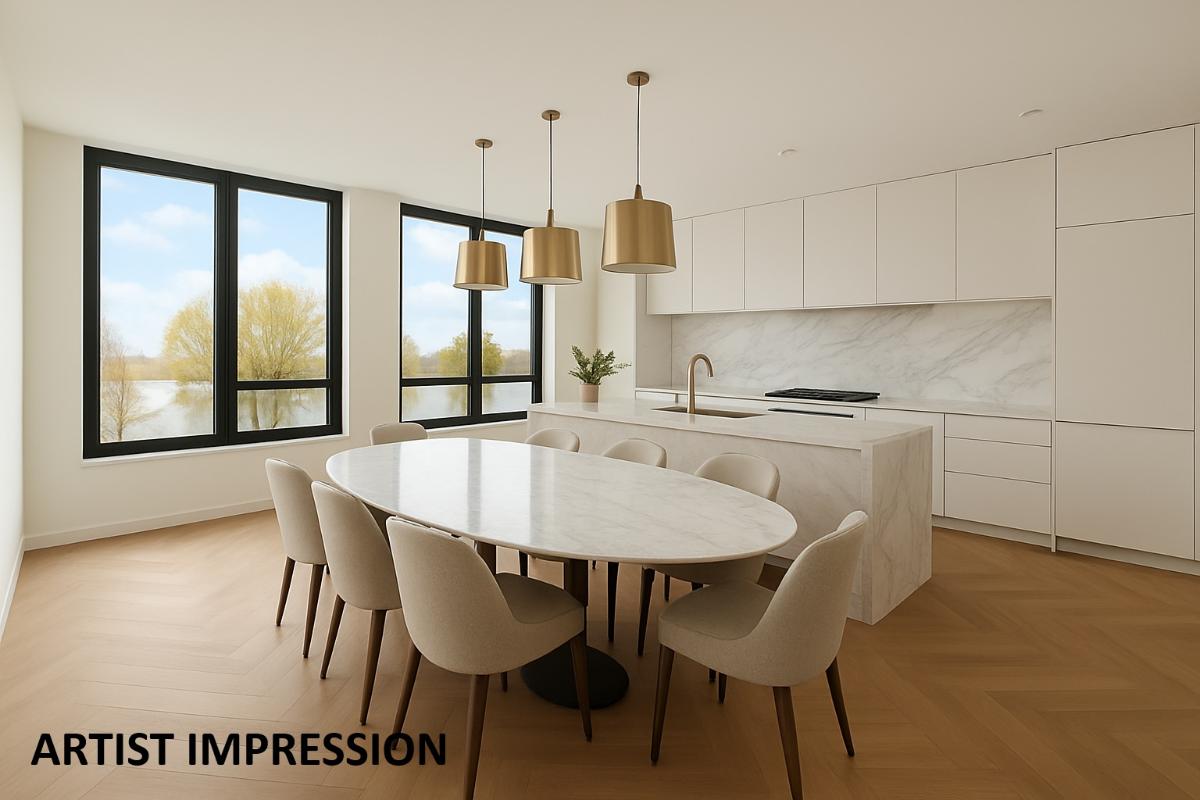 Deze woning ademt luxe dankzij de strakke zwarte kozijnen, grote raampartijen, visgraat vloer met vloerverwarming en rustgevend uitzicht aan beide kanten. En het mooie is, het kan nog helemaal naar de hand van de eerste bewoner worden gezet.
