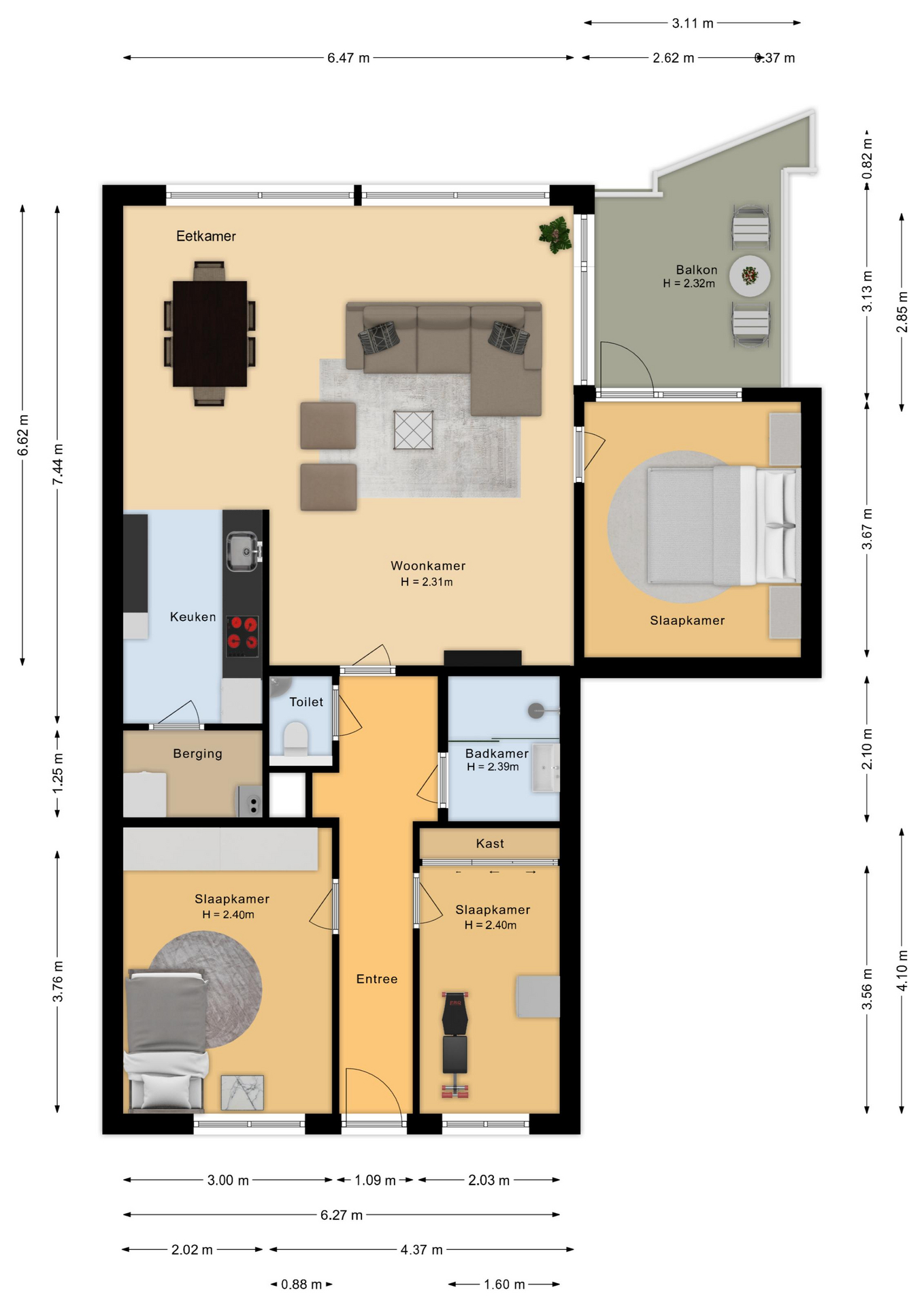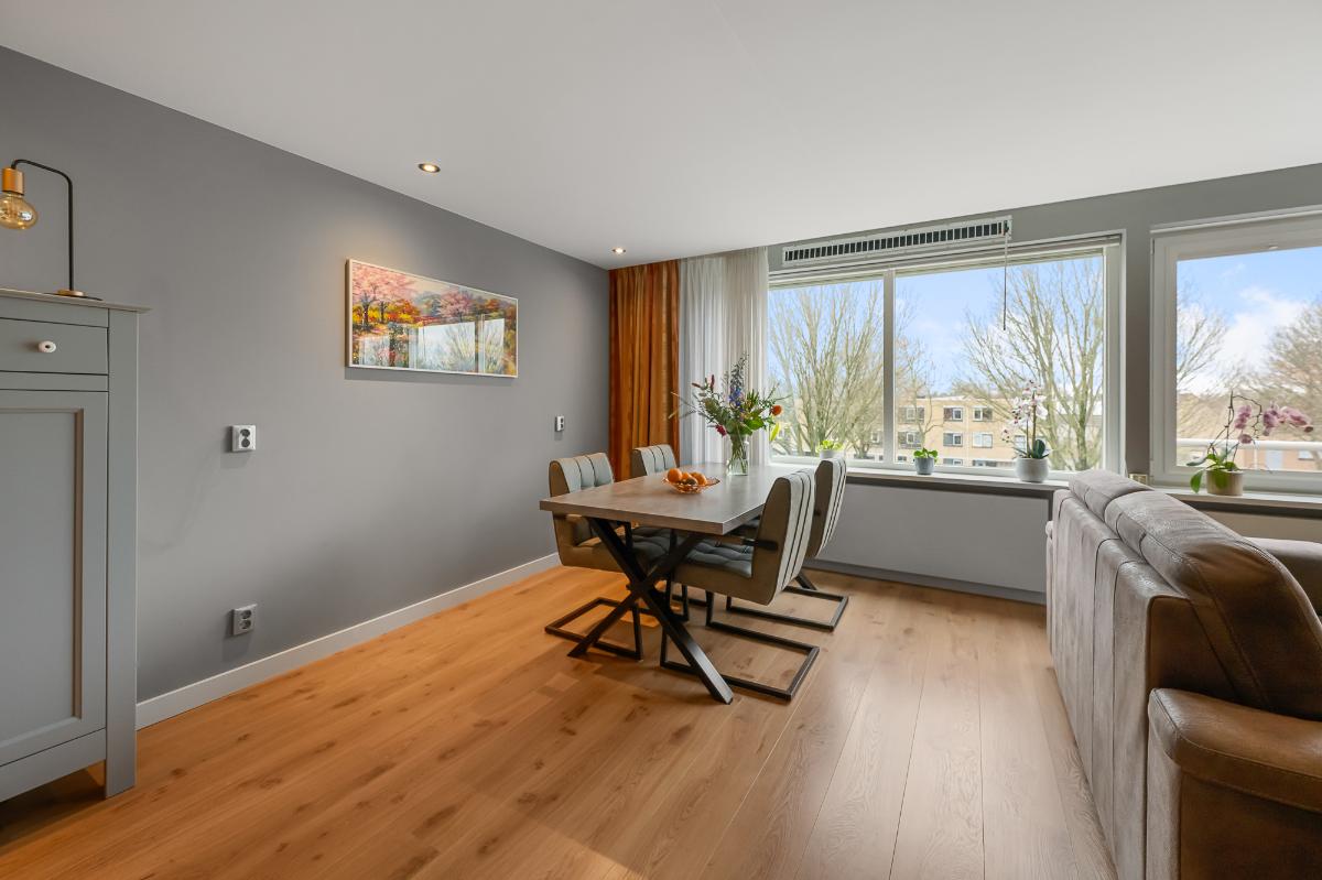 Het appartement is prettig ingedeeld en biedt een fijne balans tussen leefruimte en privacy. De lichte woonkamer vormt het hart van de woning en biedt volop ruimte voor een comfortabele zithoek en eethoek. Aangrenzend bevindt zich de keuken, praktisch ingericht en voorzien van de nodige inbouwapparatuur. De drie slaapkamers maken dit appartement uitermate geschikt voor gezinnen, thuiswerkers of iedereen die extra ruimte wenst voor hobby’s of logees. De nette badkamer en separate toiletruimte zorgen voor extra comfort.