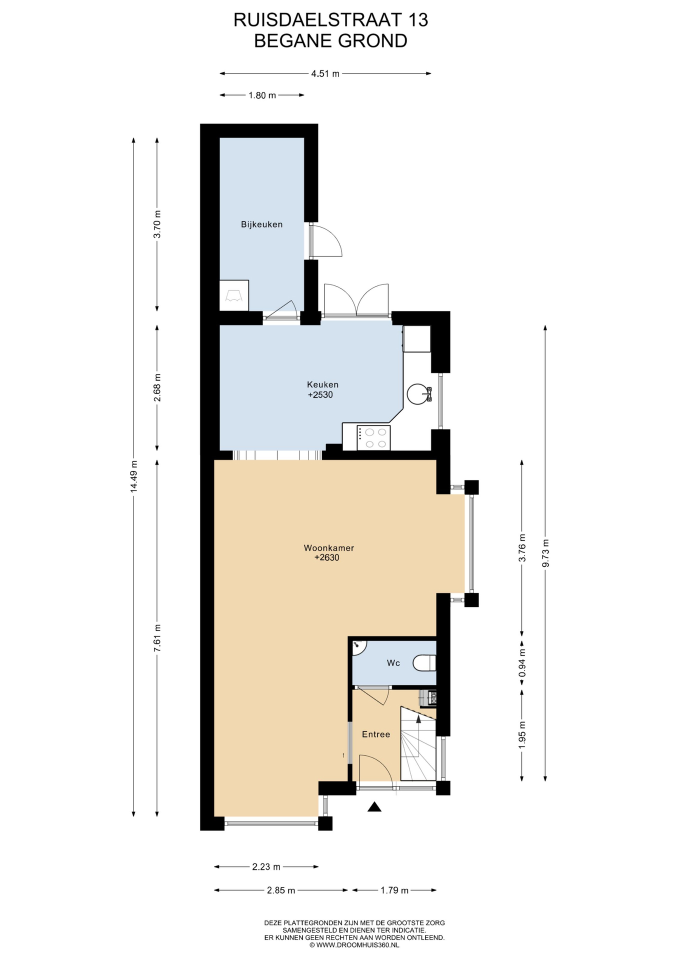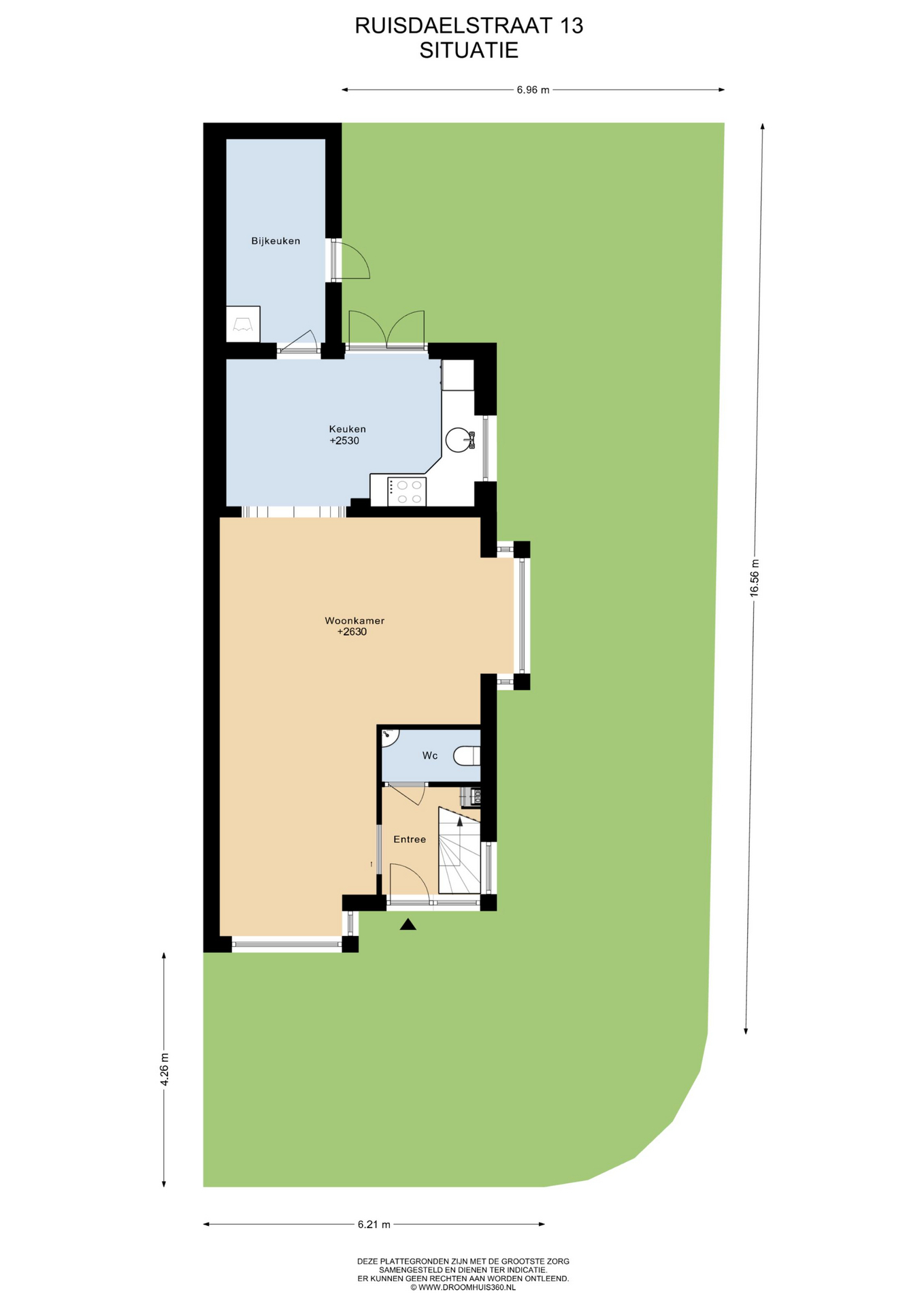 De Ruisdaelstraat ligt op loop- en fietsafstand van het centrum, waar u een breed scala aan winkels, supermarkten, horeca en andere voorzieningen vindt. Voor gezinnen met kinderen zijn er in de buurt scholen en speelgelegenheden, en ook kinderopvang is op korte afstand te vinden. De grotere steden zijn goed bereikbaar via de N207 of N11.
