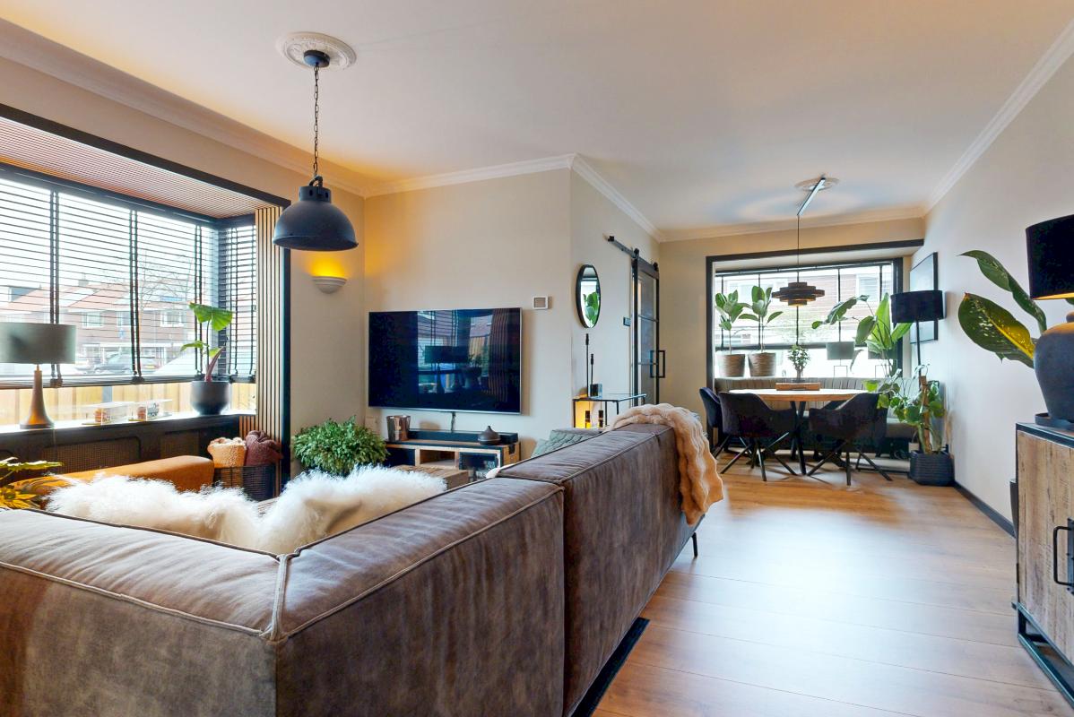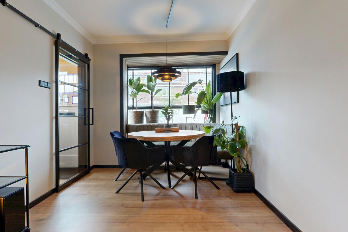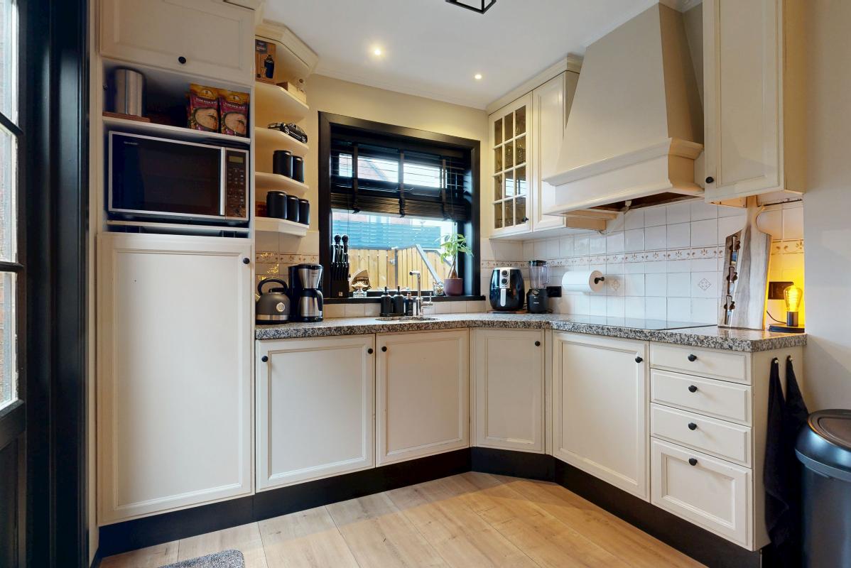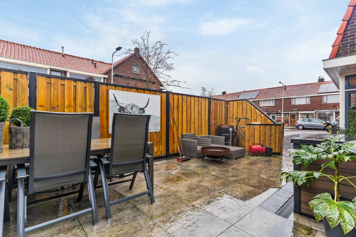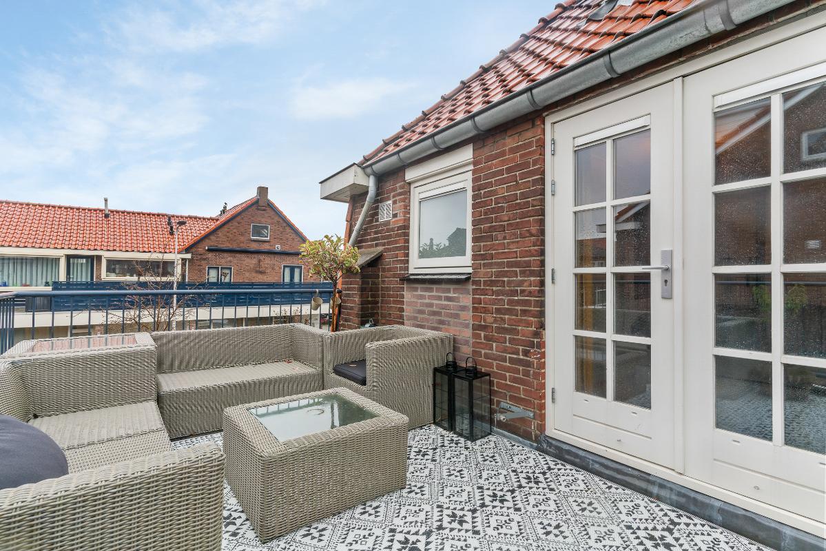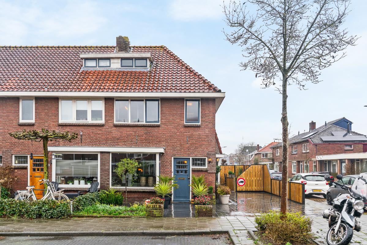 Aan een rustige straat in een fijne wijk ligt deze heerlijke hoekwoning. Met de charmante jaren '30 uitstraling is dit echt een plaatje dat je niet wilt missen. Via de hal, met als eyecatcher de mooi beklede trap, betreed je de fijn ingedeelde woonkamer met zithoek aan zowel de voorzijde als achterzijde, in het midden heb je een heerlijke plek om TV te kunnen kijken. Aan de achterzijde van de woonkamer heb je een eethoek met halfopen keuken v.v. diverse inbouwapparatuur en dubbele openslaande deuren naar de zonnige achter/zijtuin en naar de berging. Op de eerste verdieping zijn 2 ruime slaapkamers en een badkamer te vinden. Via de Master Bedroom kun je ook het dakterras betreden waar van de avondzon kan worden genoten. De ruime badkamer is voorzien van een ligbad en een inloopdouche en biedt daarmee veel comfort en is eigentijds qua kleurstelling. Op de tweede verdieping vind je een extra slaapkamer met dakkapel en een vliering voor extra opbergruimte.