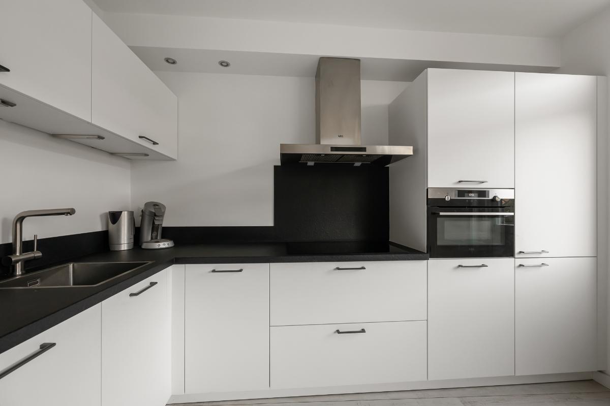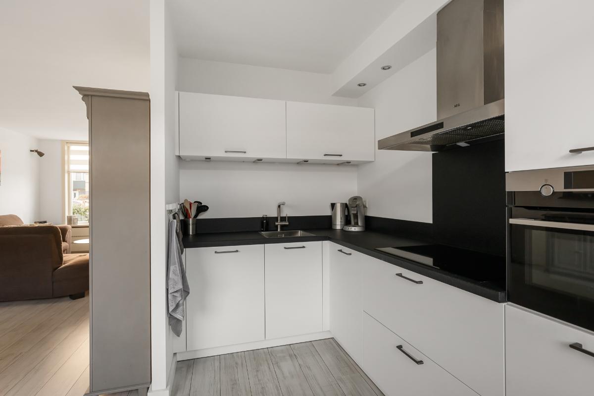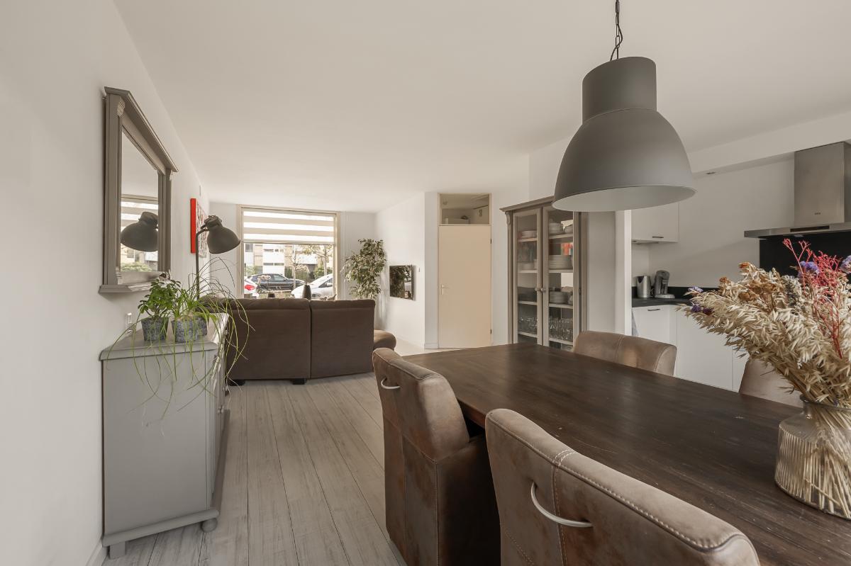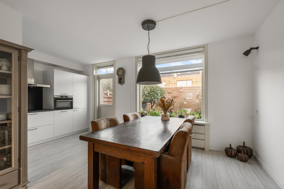 De woning valt meteen op door de verzorgde afwerking, strak gestuukte wanden en plafonds, en een moderne uitstraling. De lichte woonkamer biedt volop ruimte voor een gezellige zithoek aan de voorzijde en eetgedeelte aan de achterzijde dichtbij de keuken. De grote raampartijen zorgen voor een fijne verbinding met de buitenruimte. De open keuken (uit 2020) is modern, stijlvol en praktisch ingedeeld en voorzien van diverse inbouwapparatuur. Hier heb je voldoende werk- en opbergruimte om naar hartenlust te koken.