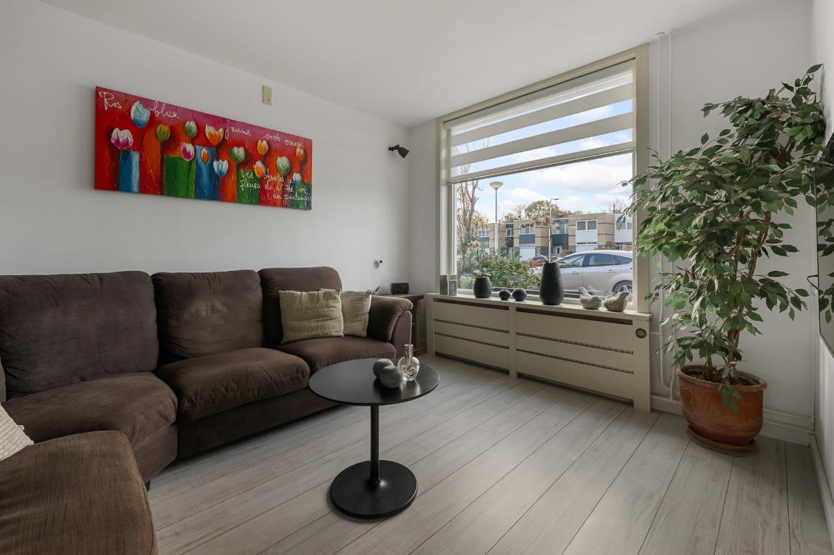 Wonen in een goed onderhouden en moderne tussenwoning, met uitzicht op de singel aan de voorzijde.