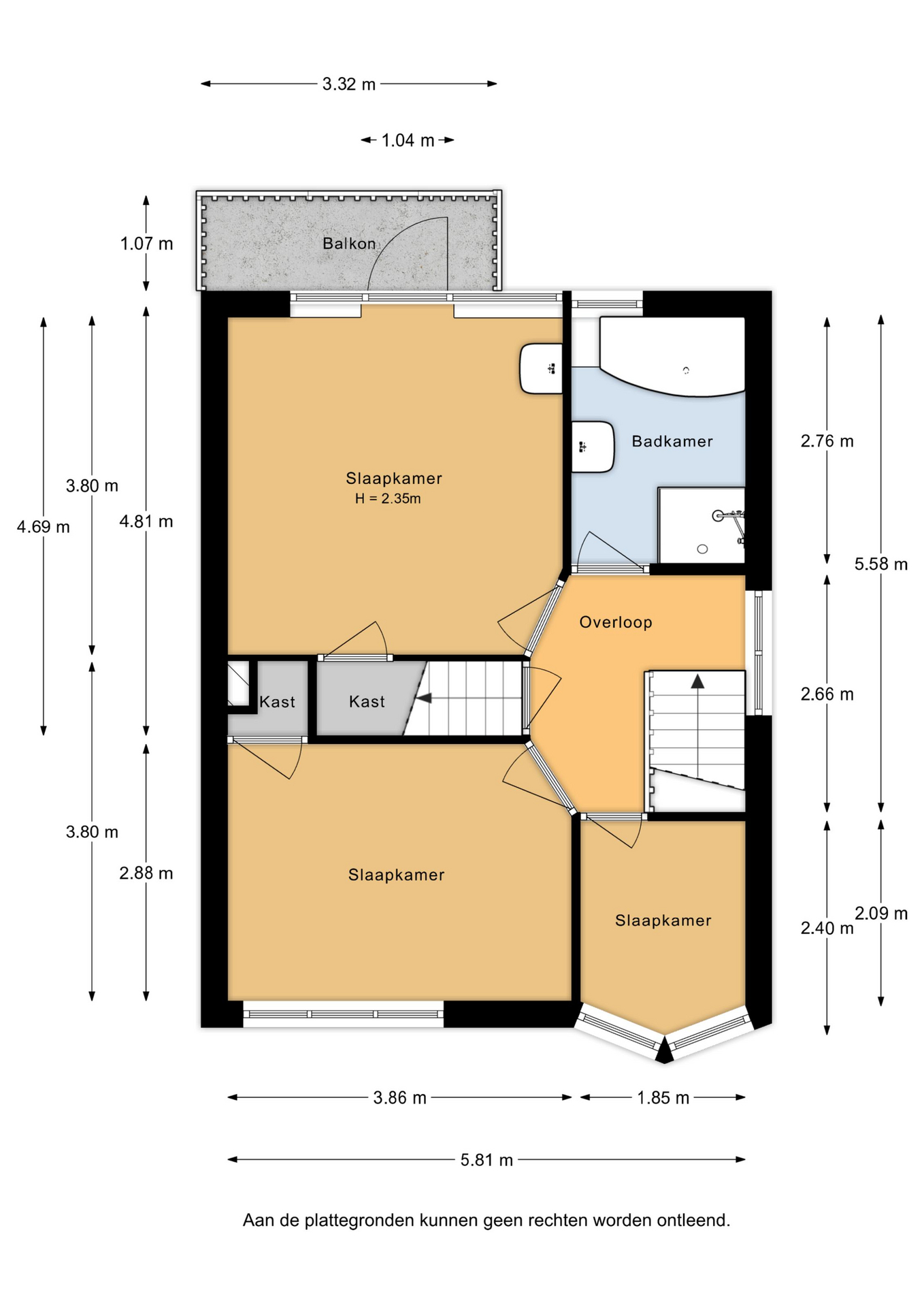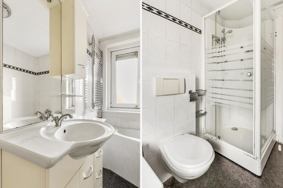 Eerste verdieping Overloop met toegang tot drie slaapkamers en de badkamer. De slaapkamer aan de achterzijde beschikt over een balkon, wastafel en een vaste kast. Daarnaast zijn er nog twee slaapkamers aan de voorzijde, waarvan één eveneens is voorzien van een vaste kast. De badkamer is eenvoudig uitgevoerd en voorzien van een douche, ligbad, wastafel met meubel en een toilet.