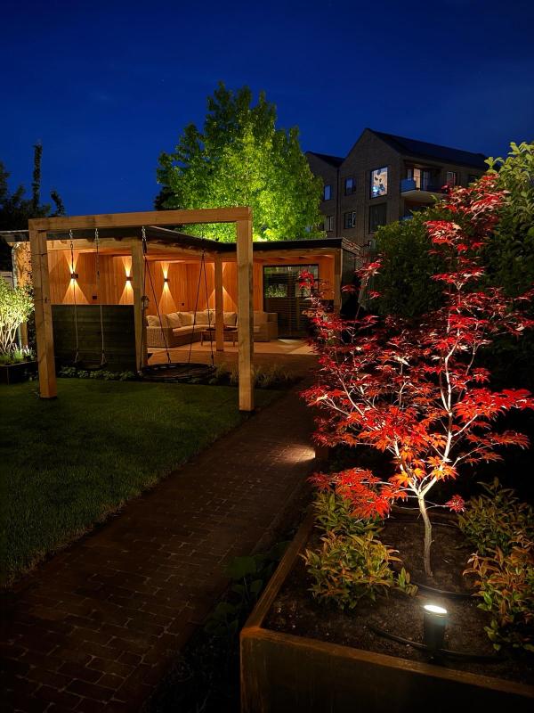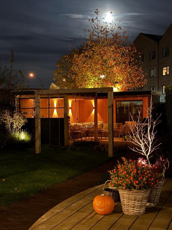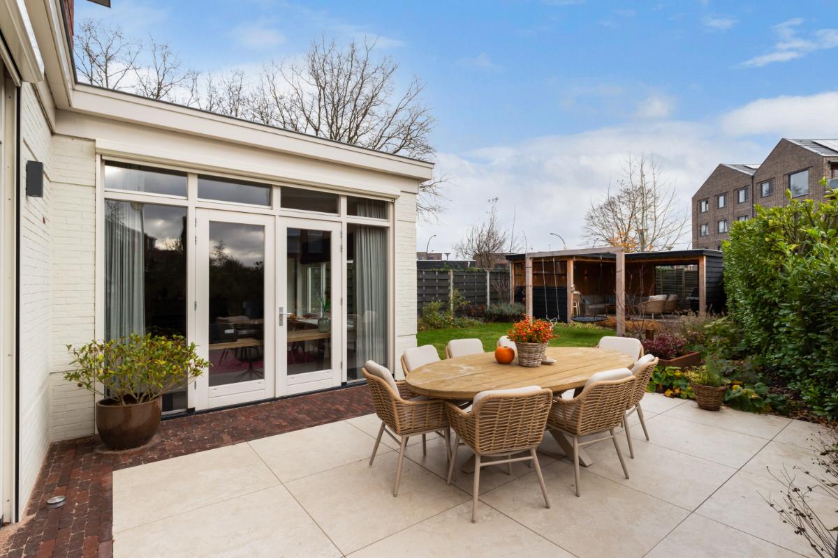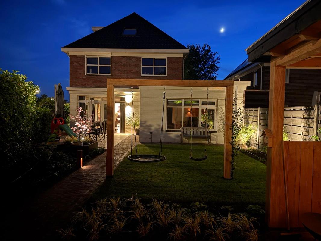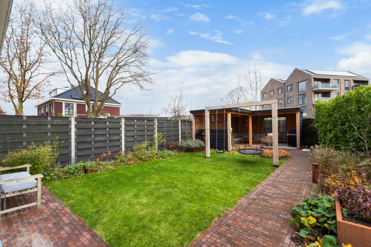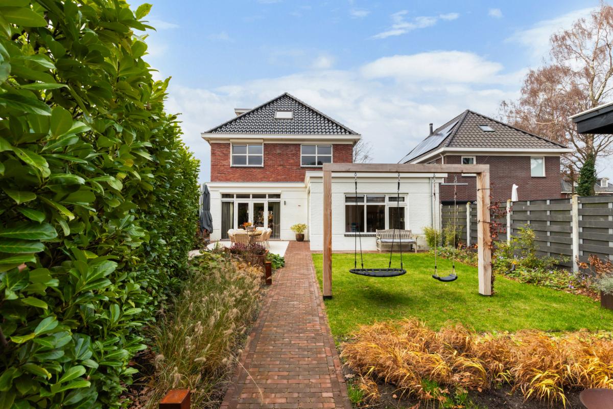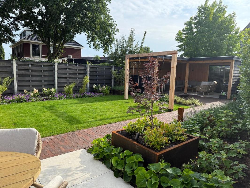 Via de openslaande deuren stap je zo de tuin in: verzorgd, sfeervol en uitgerust met een prachtige veranda en een dubbele schommel uit 2025. Hier geniet je van lange avonden. De tuin is overzichtelijk en modern aangelegd met diverse borders, terrassen en een gazon, voorzien van sfeerverlichting en een automatisch sproeisysteem.