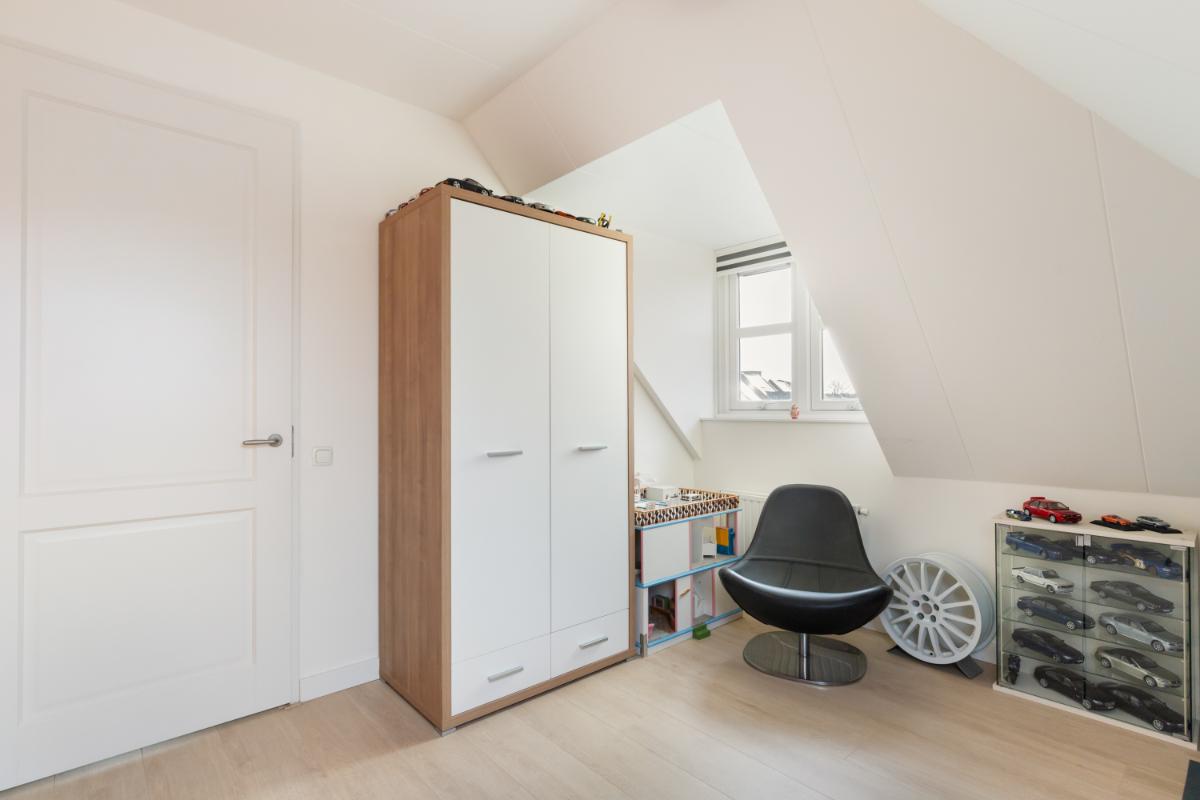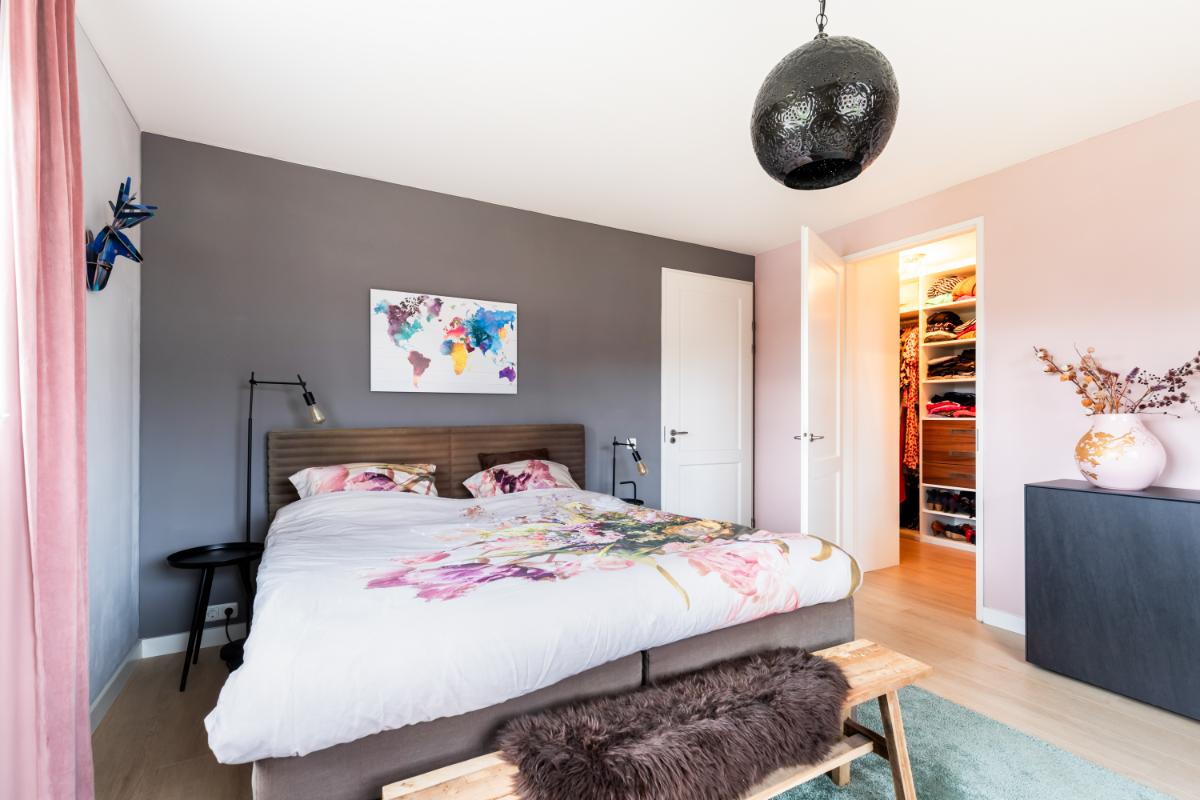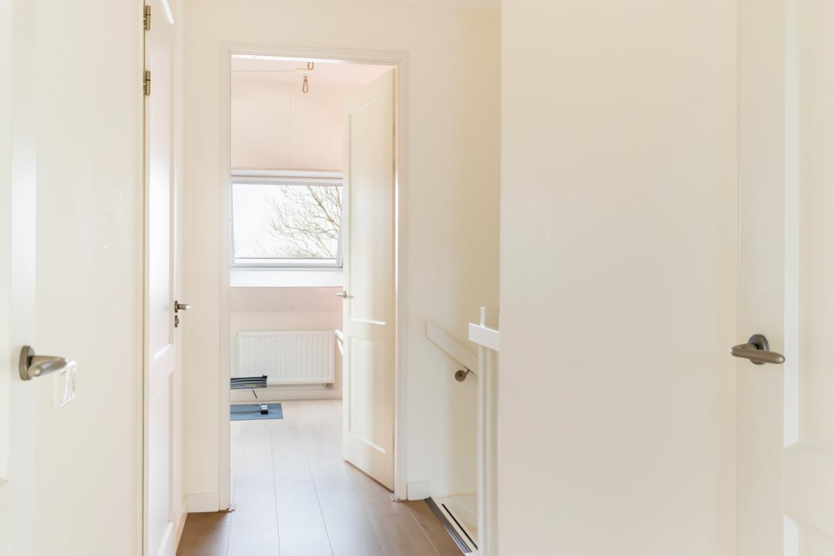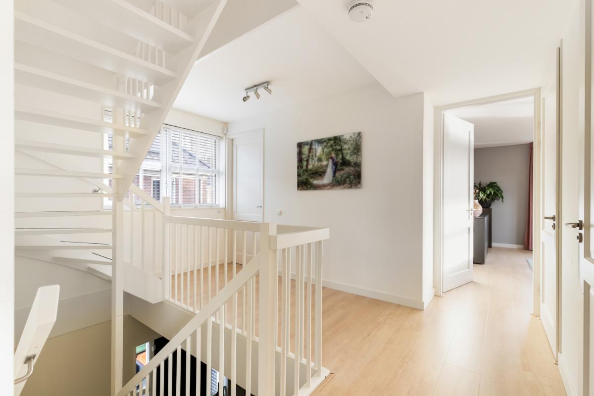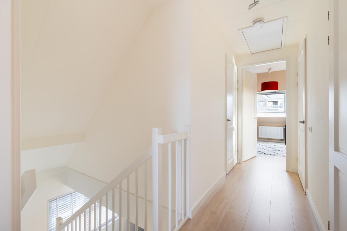 Eerste verdieping: de eerste verdieping beschikt over een lichte, ruime overloop met gevelraam. Hier bevinden zich in totaal vier royale slaapkamers, waaronder de comfortabele hoofdslaapkamer met een eigen walk-in closet. Alle kamers hebben een prettige indeling, veel daglicht, een verzorgde laminaatvloer, buitenzonwering (elektrische rolluiken) en strakke wandafwerking.