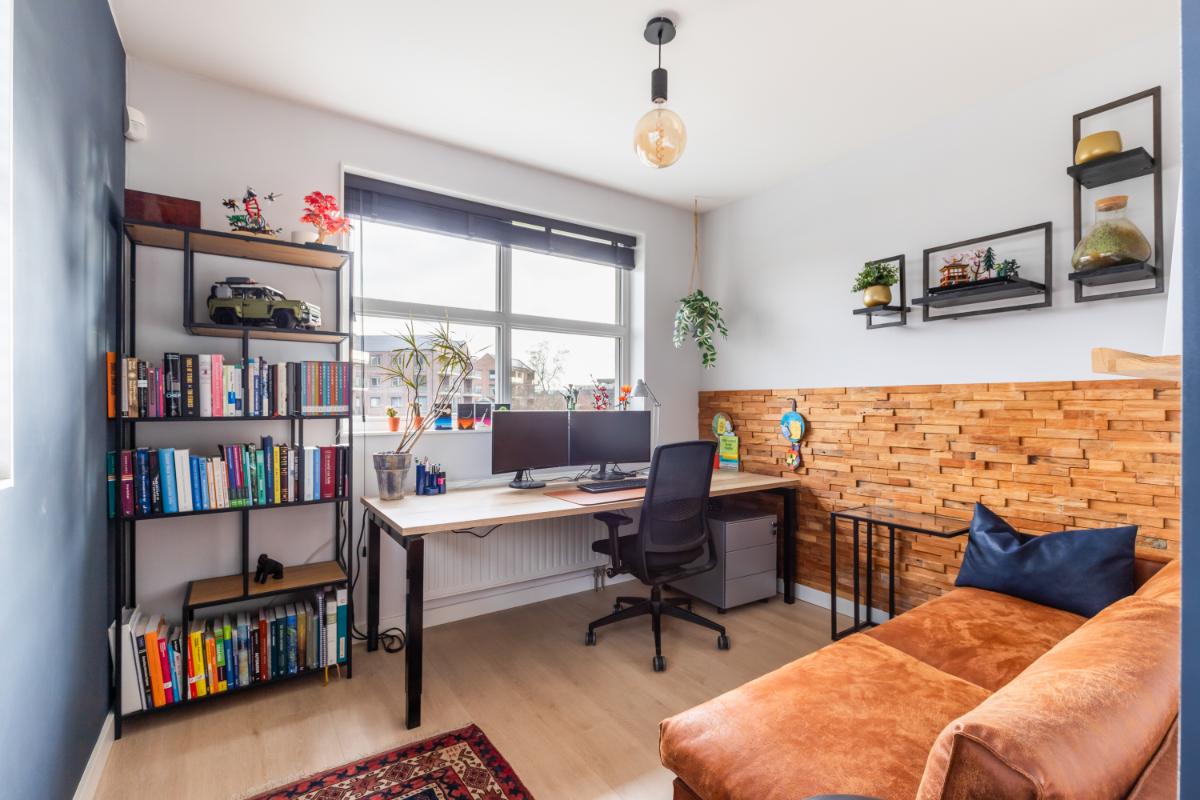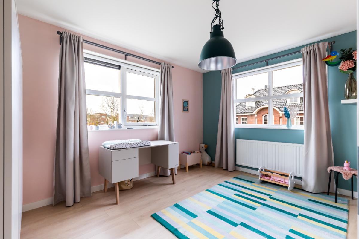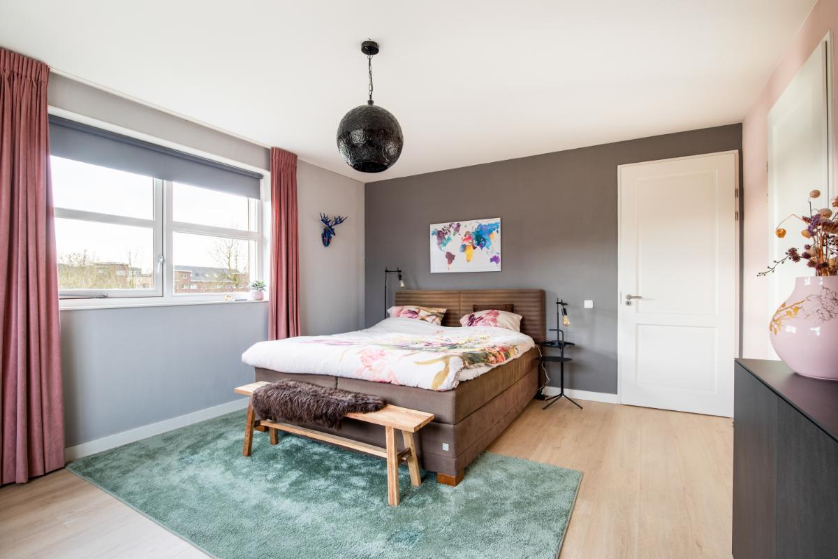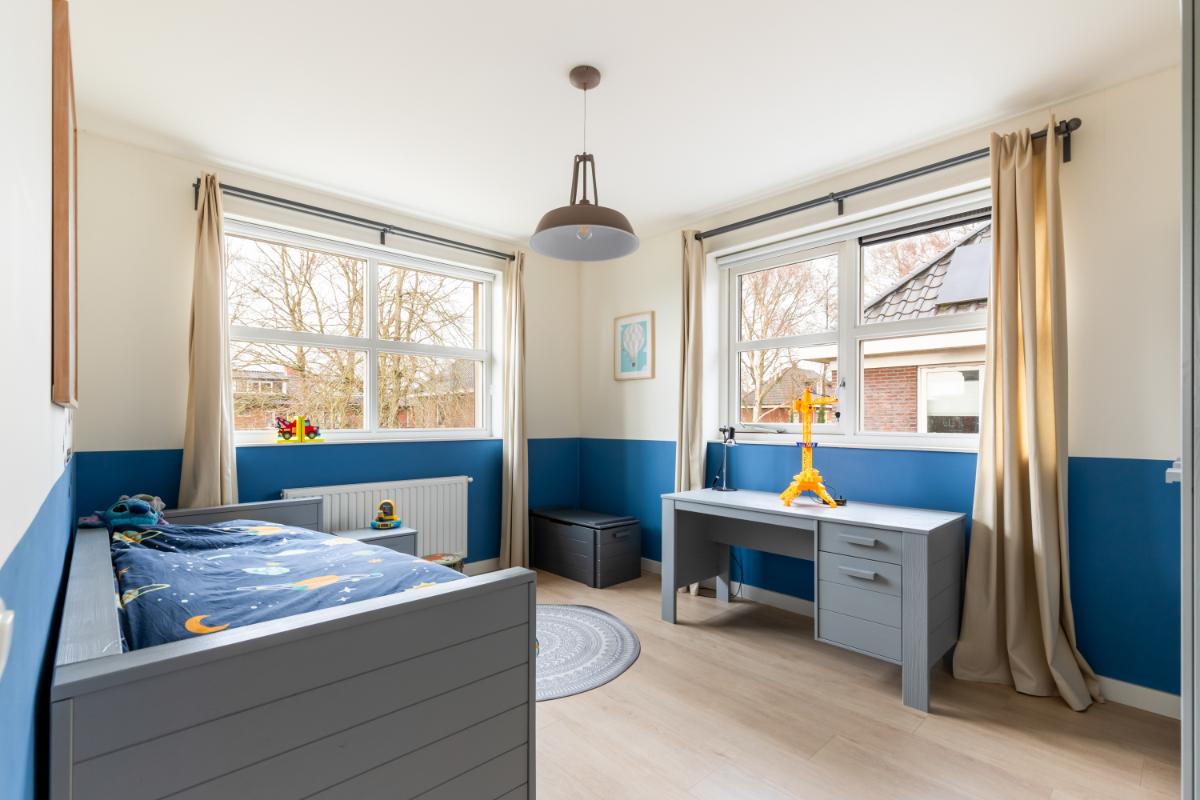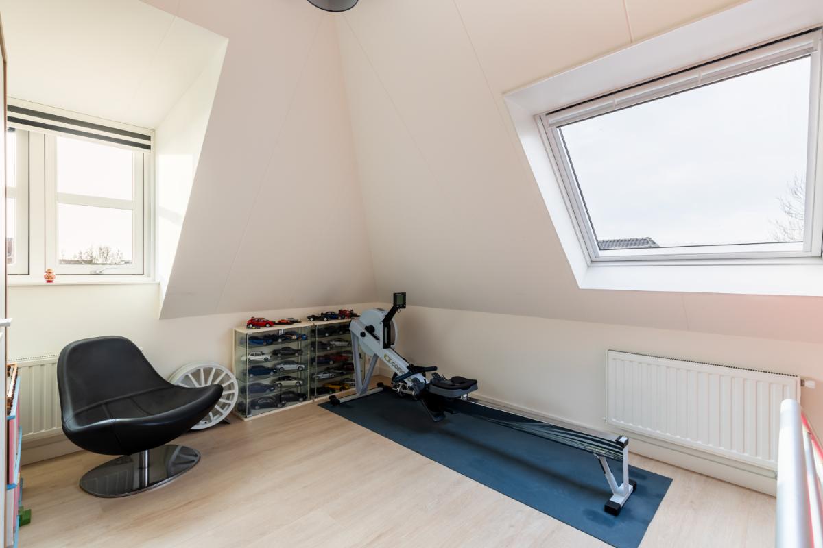 Eerste verdieping: de eerste verdieping beschikt over een lichte, ruime overloop met gevelraam. Hier bevinden zich in totaal vier royale slaapkamers, waaronder de comfortabele hoofdslaapkamer met een eigen walk-in closet. Alle kamers hebben een prettige indeling, veel daglicht, een verzorgde laminaatvloer, buitenzonwering (elektrische rolluiken) en strakke wandafwerking.