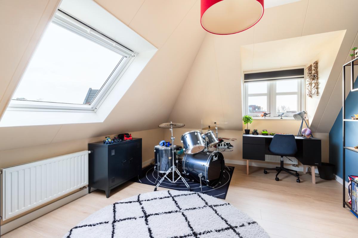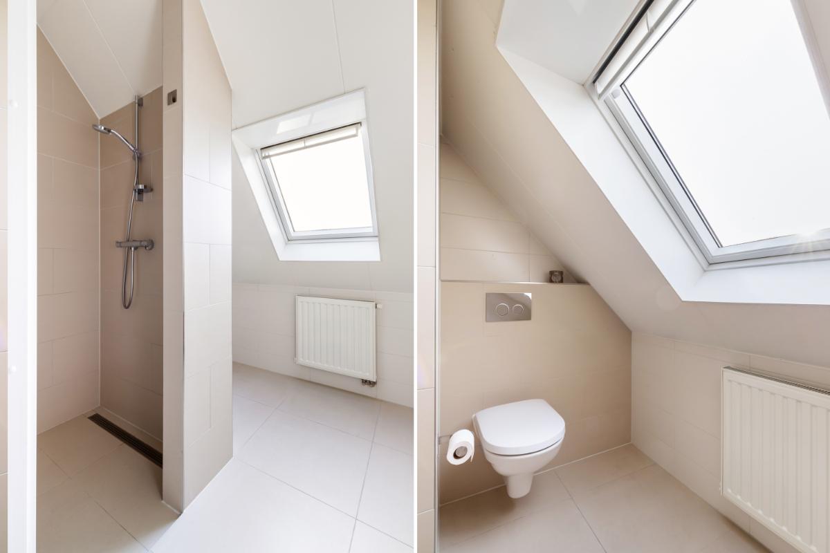 Tweede verdieping: ook de tweede verdieping is verrassend ruim. De overloop geeft toegang tot twee grote slaapkamers, beide voorzien van een dakkapel, Veluxraam en laminaatvloer. Daarnaast is hier een tweede badkamer aanwezig met inloopdouche, toilet, wastafel en Veluxraam, ideaal voor een groot gezin of gasten.