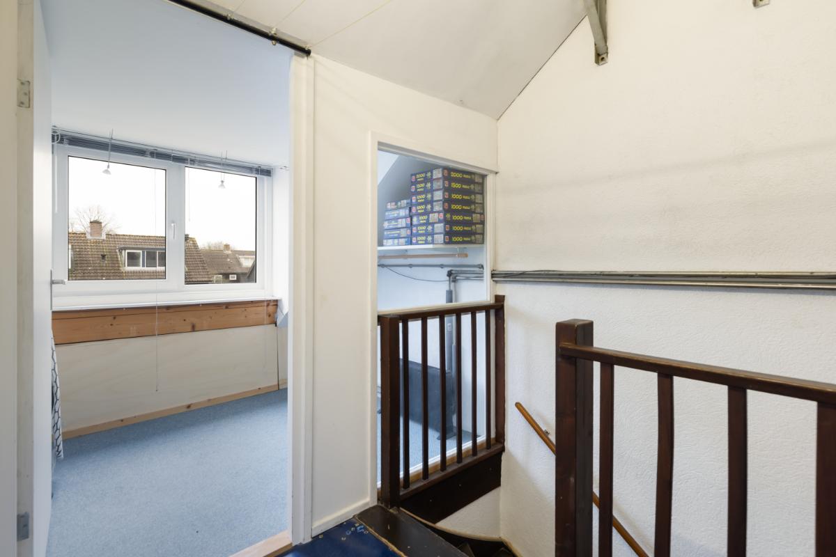 Tweede verdieping: de tweede verdieping is verrassend ruim dankzij de dakkapellen aan beide zijden. Hierdoor is hier extra woonoppervlakte ontstaan en voelt de verdieping licht en ruim aan. Op deze verdieping zijn nog eens drie slaapkamers gerealiseerd, ideaal voor een groot gezin, thuiswerken of hobbyruimte. Op de overloop bevinden zich de witgoedaansluitingen en een aparte kast met de cv-installatie. Een praktische en veelzijdige verdieping die veel mogelijkheden biedt.