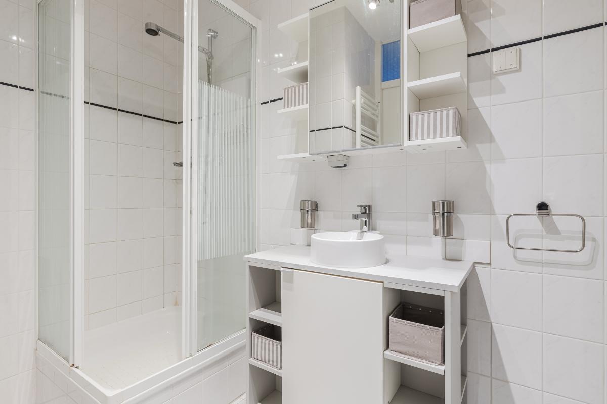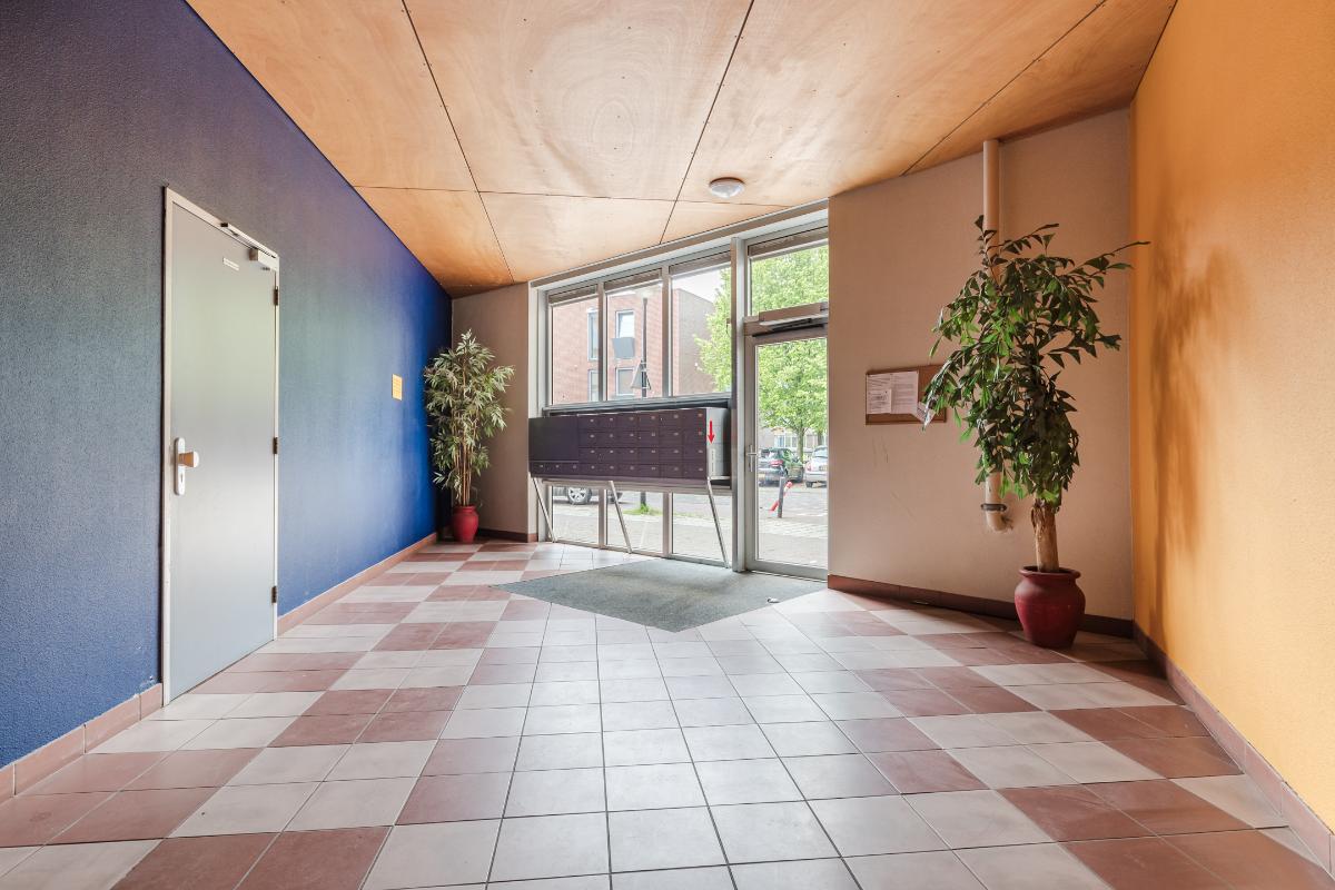 Entree (2e verdieping) Binnenkomen kan via de centrale entree met intercom of via de afgesloten parkeergarage. De woning zelf betreed je op de tweede verdieping, waar zich twee ruime slaapkamers bevinden, evenals een nette badkamer met douchecabine en wastafel.