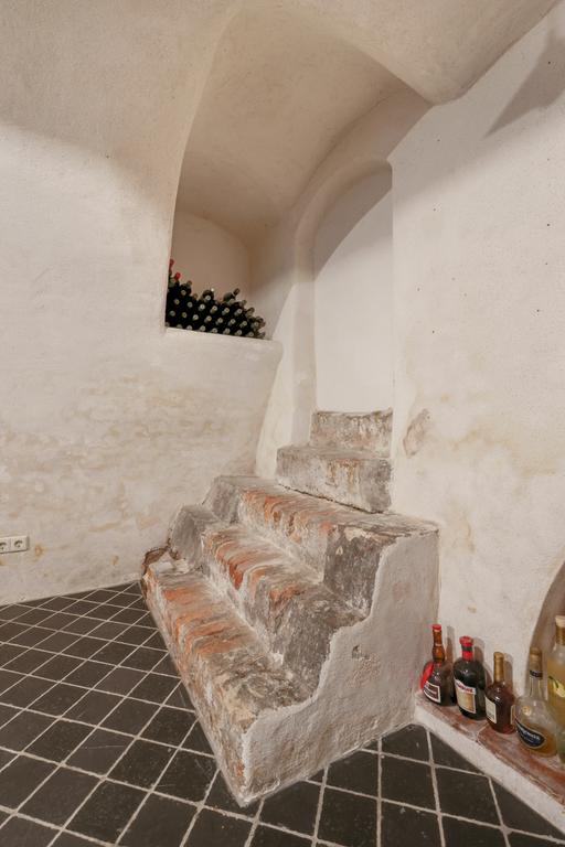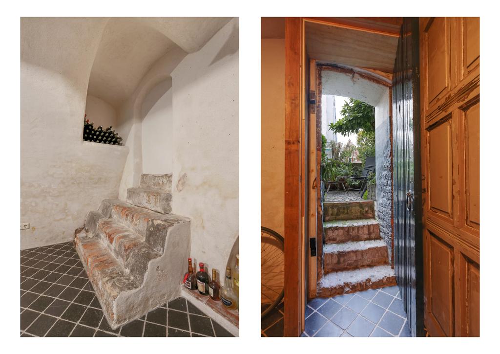 Het pand is gebouwd met zogenaamde kloostermoppen, afkomstig uit de eerste stadsmuur van Amersfoort. Overal in het interieur zijn de Middeleeuwse kenmerken nog zichtbaar, zoals: kaarsennissen, spiltrap, monumentale keukendeur, hijswiel, balkenplafonds, dichtgemetselde doorgang naar kadegang langs de gracht naar de Langestraat en in een van de slaapkamers zelfs complete raamkozijnen uit de tijd dat het pand nog vrijstaand was.