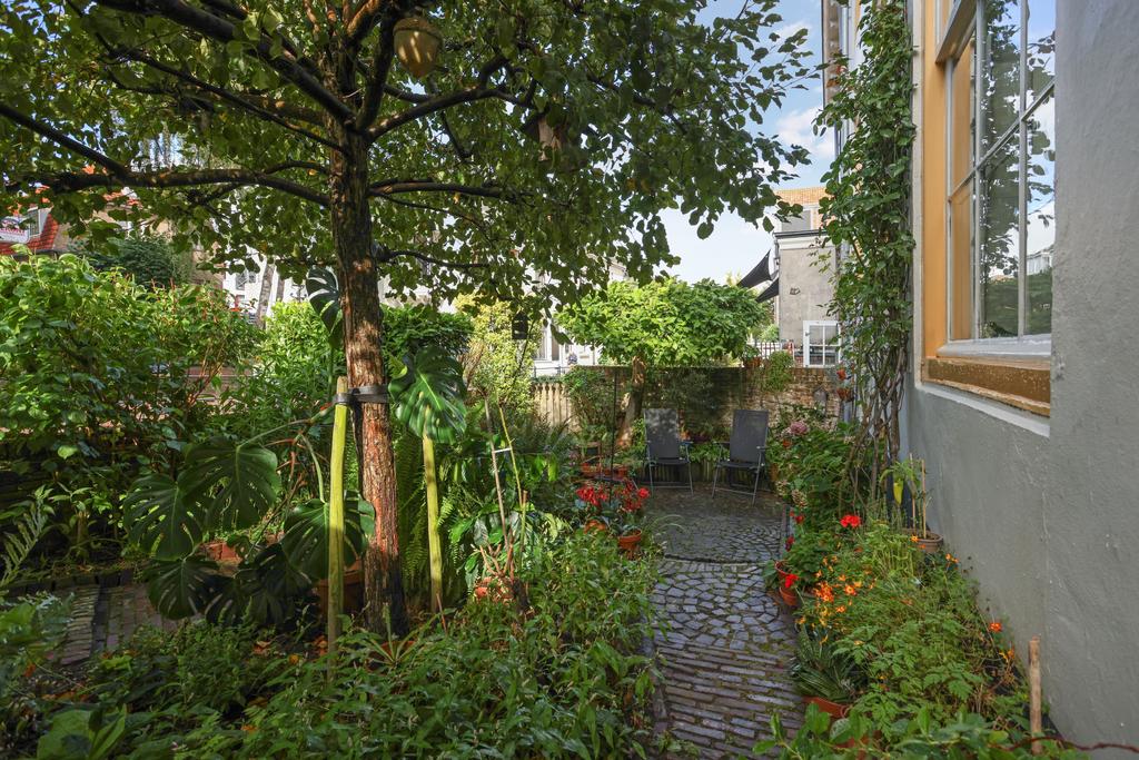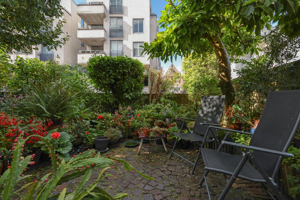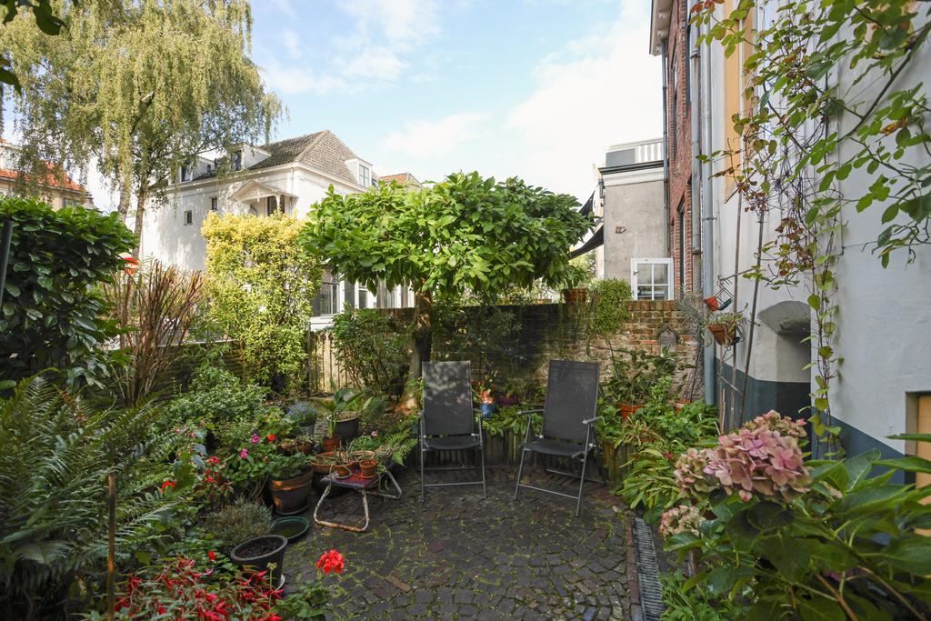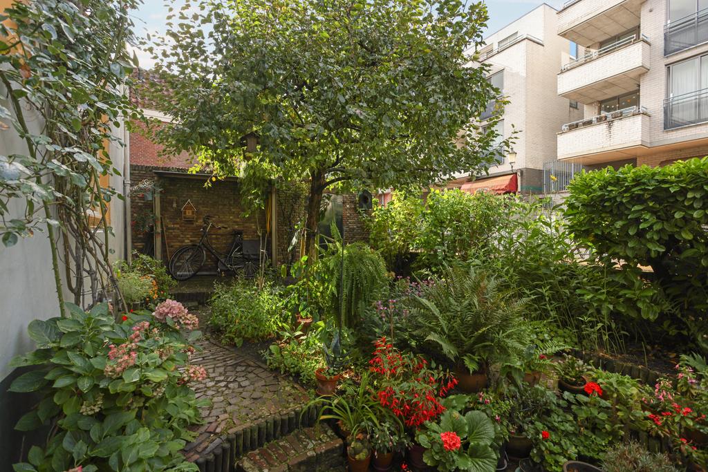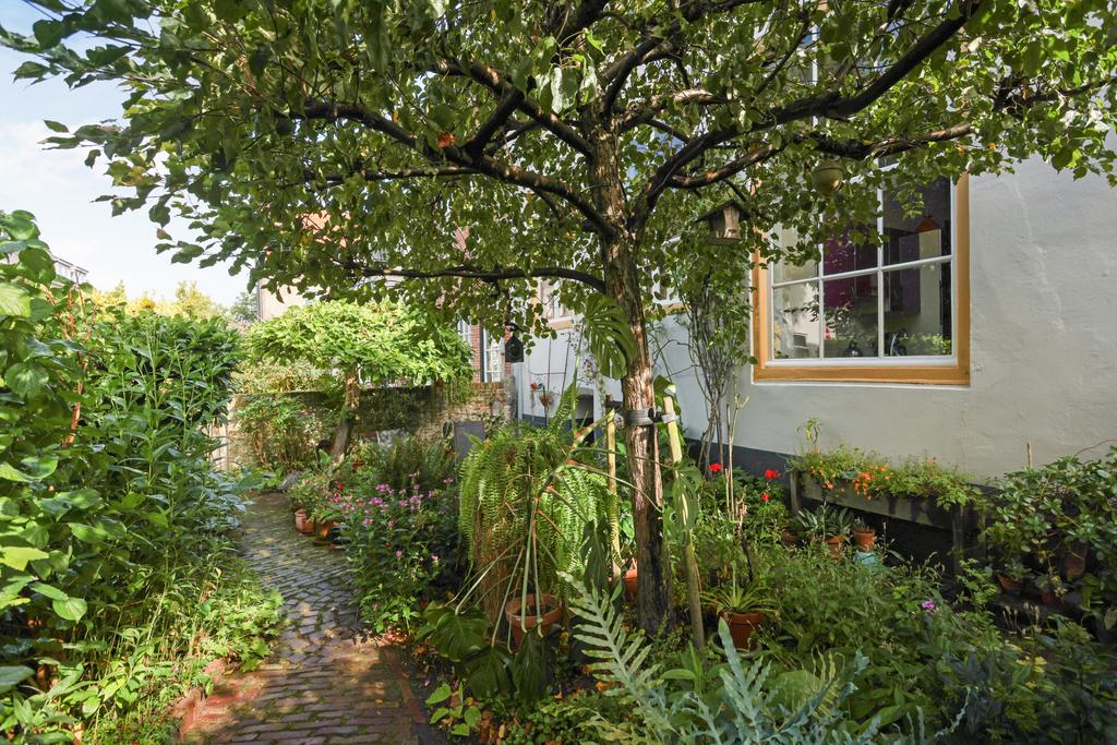 In de tuin bevindt zich een kleine open berging voor twee fietsen, tuingereedschap of openhaardblokken. Parkeerruimte is te huur onder het appartementencomplex aan de overzijde van de gracht, of via een vergunningsaanvraag voor binnenstadbewoners. Een vergunning kost ca €110 per jaar.