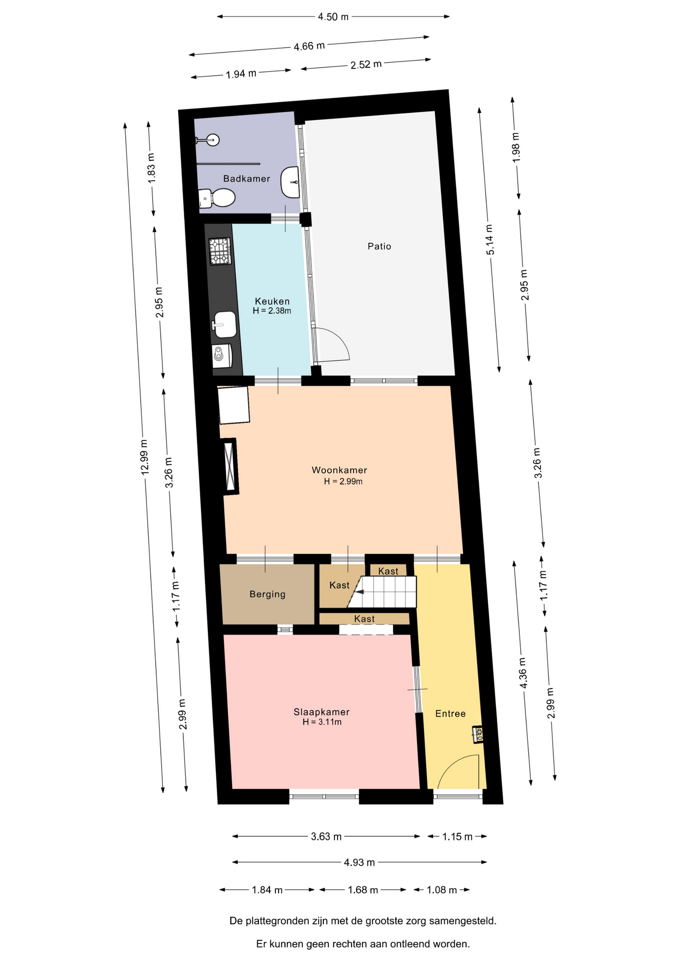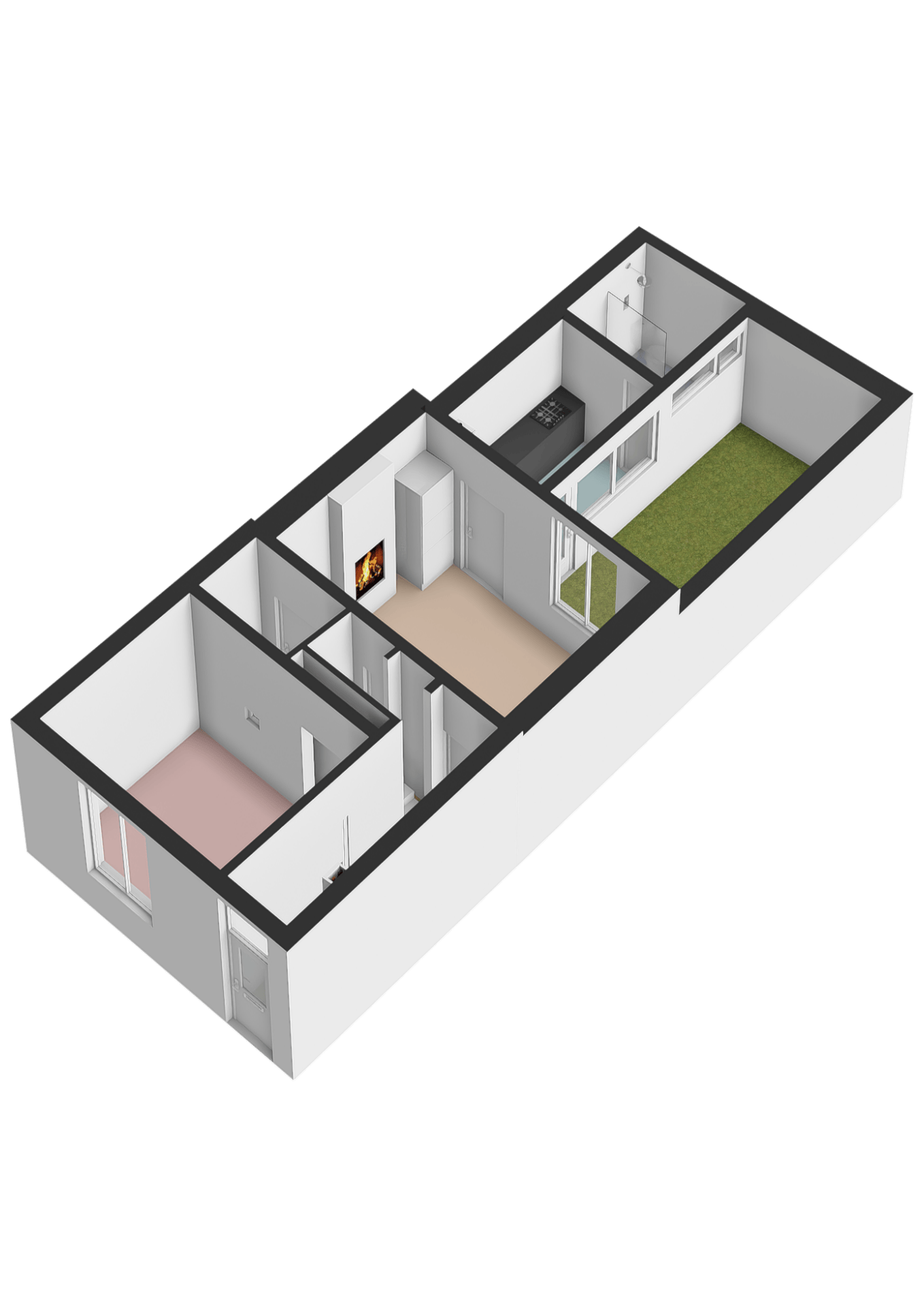 Indeling Begane grond Twee kamers die flexibel in te delen zijn als woonkamer, eetkamer of werkruimte. Dankzij de indeling zijn meerdere woonconcepten mogelijk. De keuken en de badkamer bevinden zich aan de achterzijde van de woning.