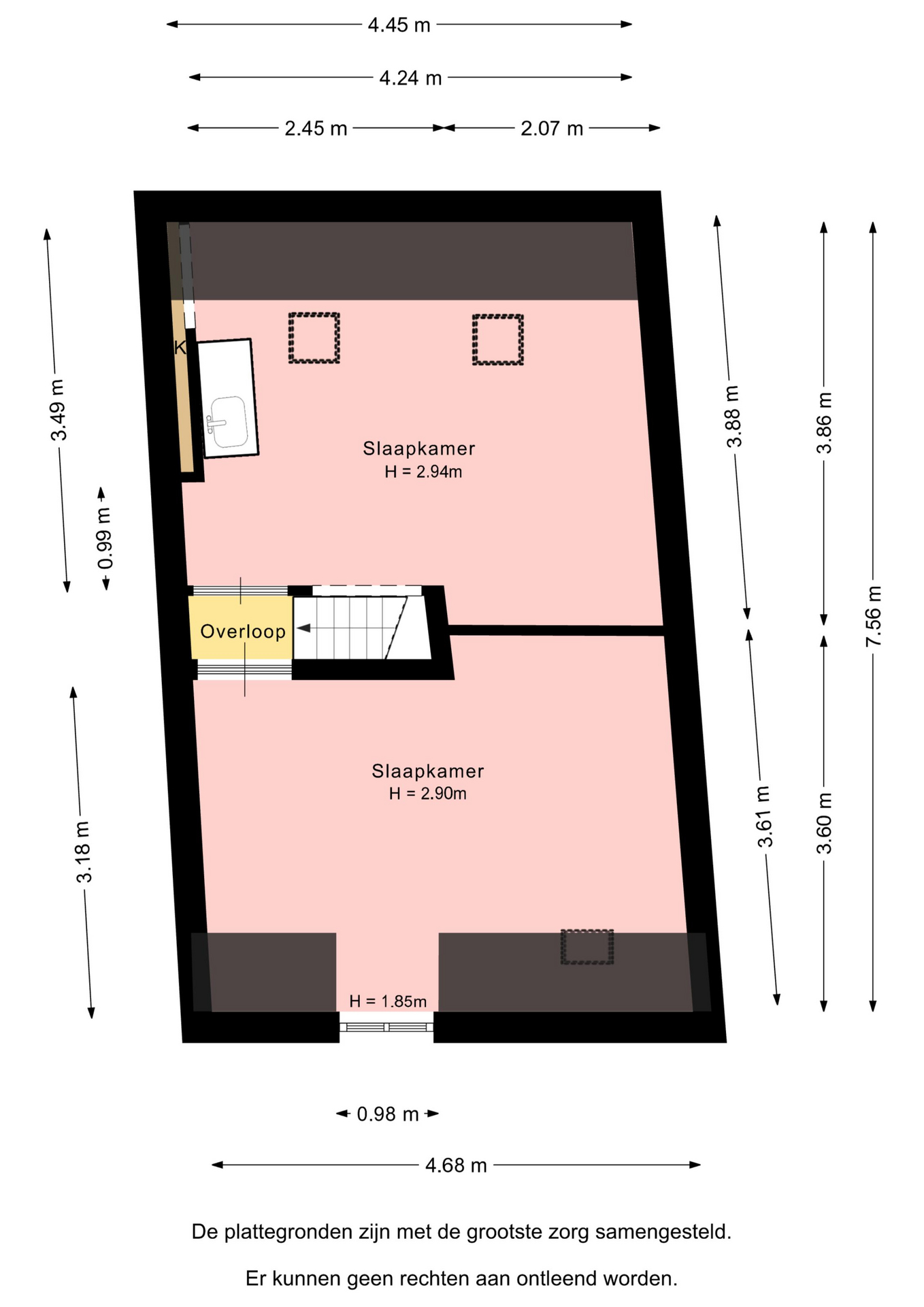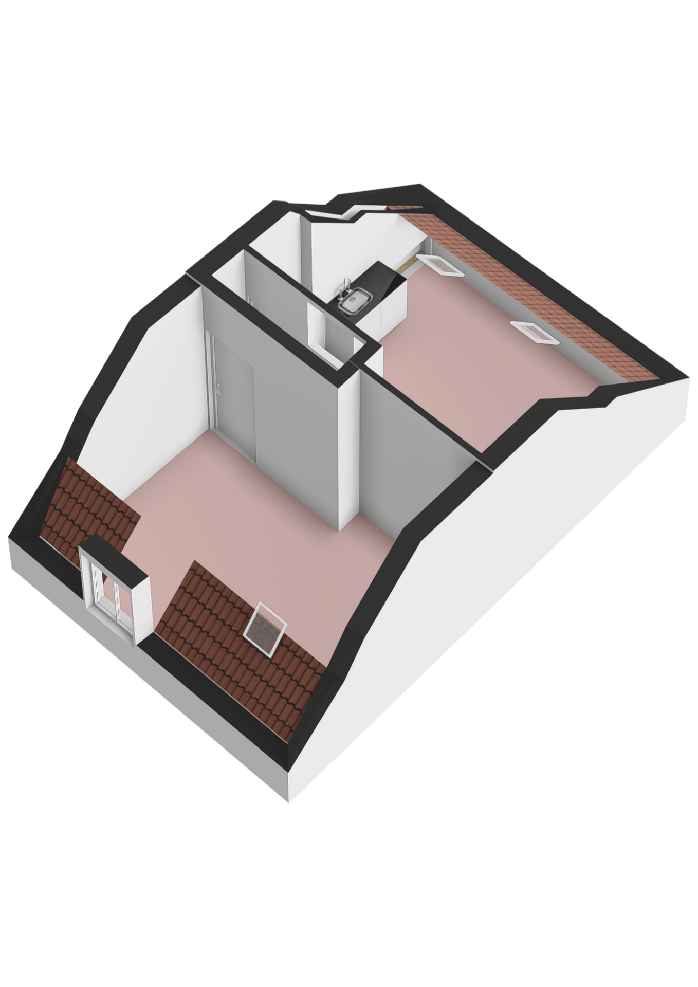 Verdieping Twee slaapkamers, ideaal als hoofdslaapkamer met extra werk-, logeer- of kinderkamer.
