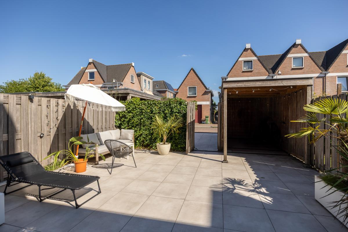 In de tuin bevindt zich ook een berging voor extra opbergruimte met aangebouwde overkapping.