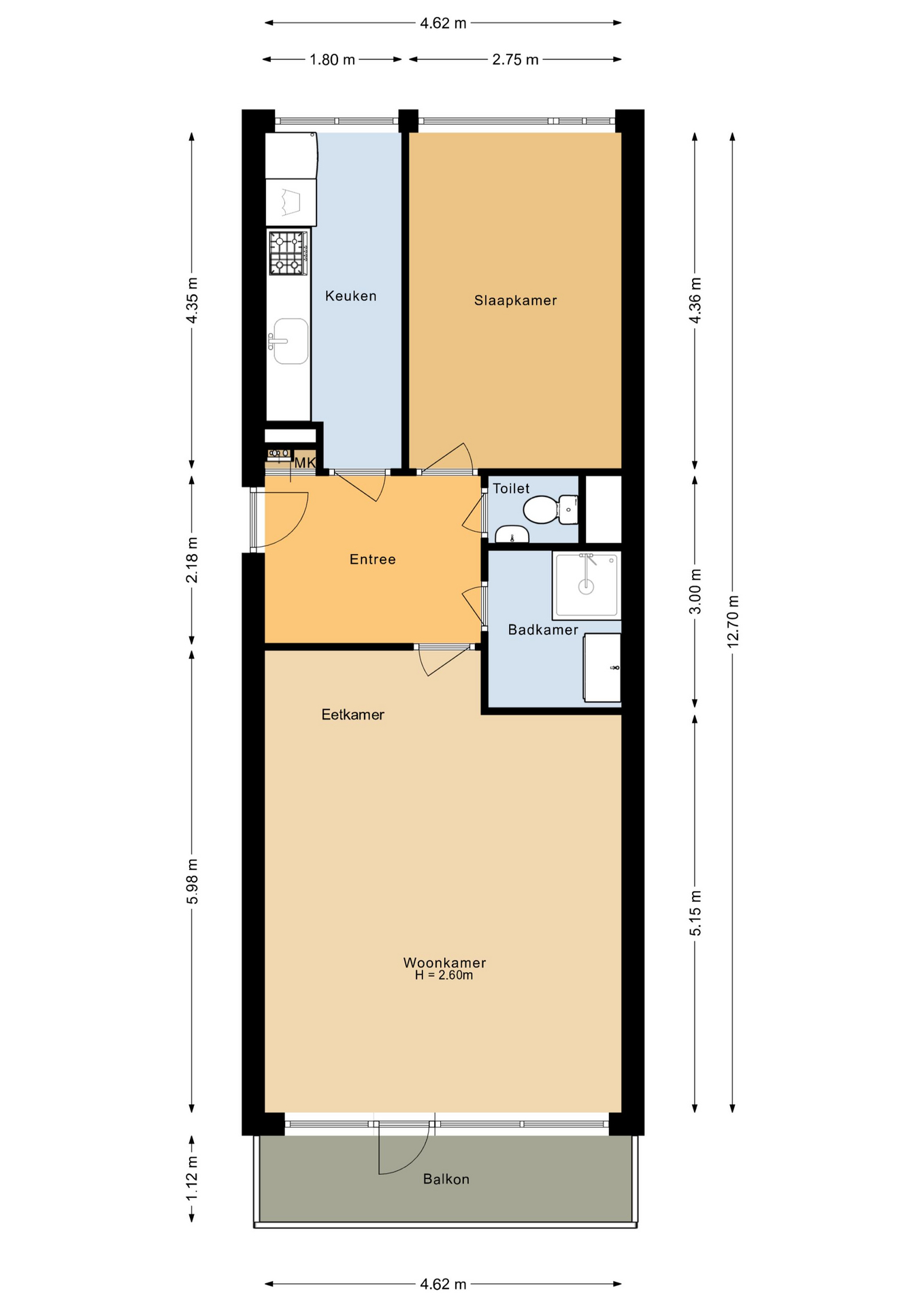 Zodra je binnenstapt, kom je in de hal die toegang geeft tot alle vertrekken. Aan de voorzijde ligt de woonkamer, een aangename ruimte met volop mogelijkheden voor een gezellige zithoek en een eettafel waar je prettig kunt tafelen of ontspannen na een lange dag. Vanuit hier stap je zo het balkon op, waar je op het westen kunt genieten van de middag- en avondzon, met uitzicht dat nooit verveelt.