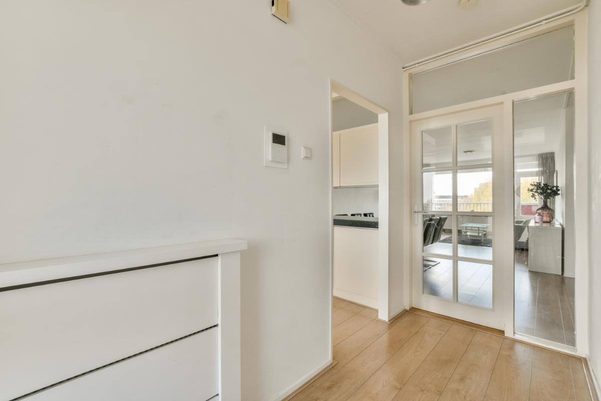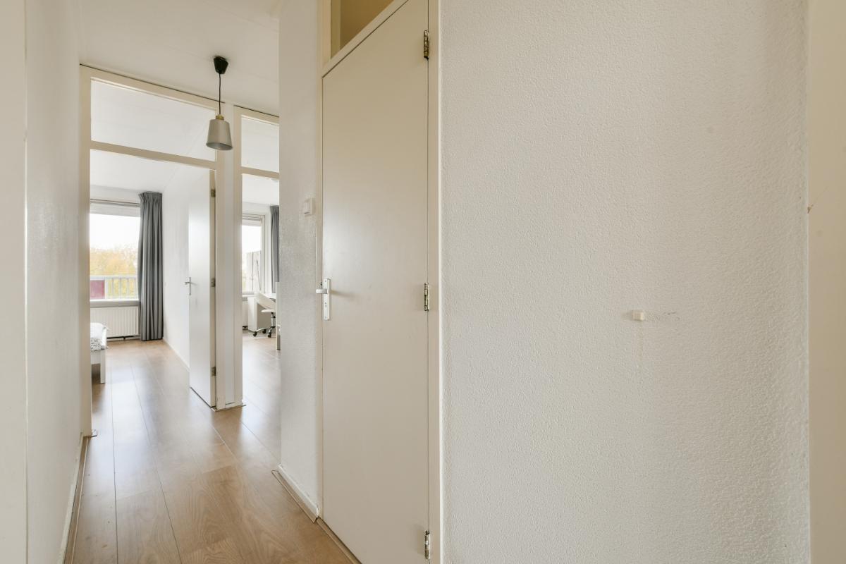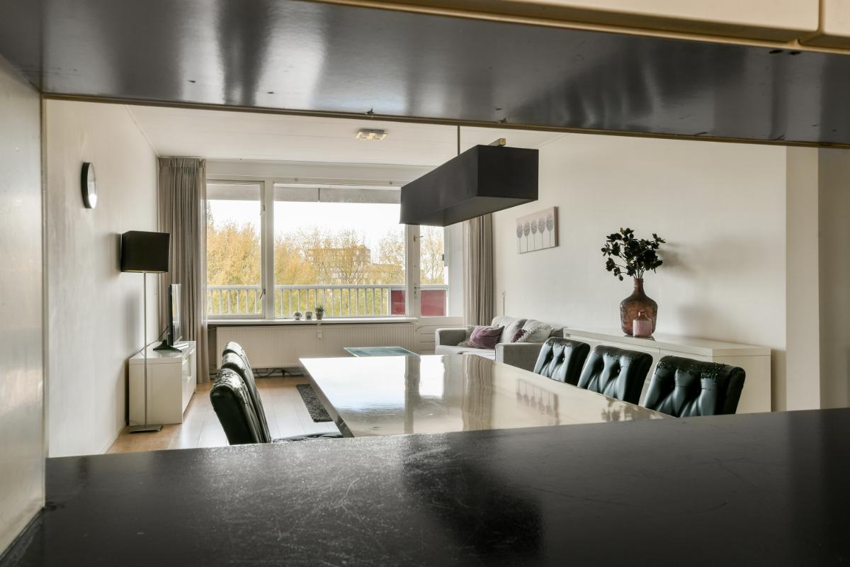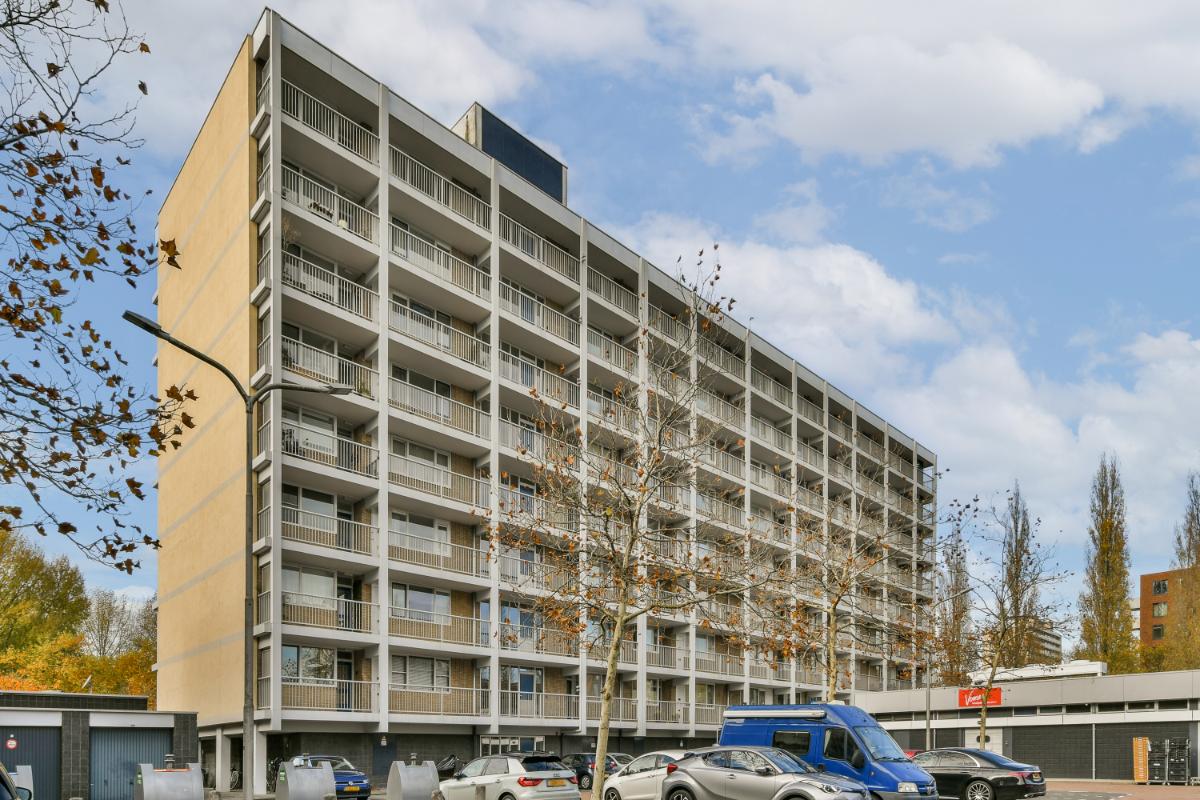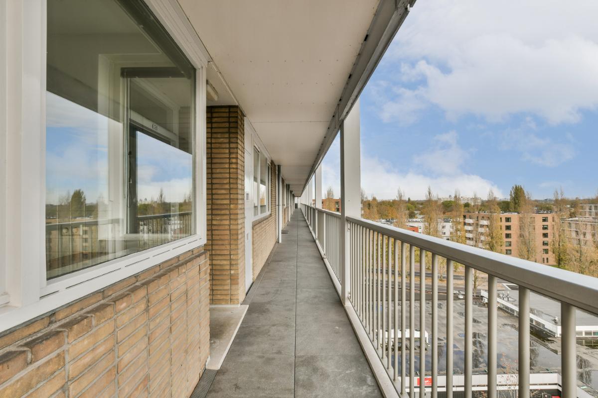 This CORNER apartment with three spacious bedrooms is located on the 8th (top) floor with a fantastic view over Amstelveen! The apartment is situated at the end of the gallery, so there are no passing traffic and plenty of privacy! The complex is wonderfully centrally located in Amstelveen, a stone's throw from the Oranjebaan bus and tram stop and near the modern Amstelveen city center (Binnenhof). For daily shopping, the Bankrashof shopping center is right next to the building, and the Kostverlorenhof shopping center is also nearby. The Amsterdamse Bos is a 10-minute bike ride away, as is the Middelpolder. Amsterdam City Center, Amsterdam Schiphol Airport, Bijlmer Arena, Amsterdam Zuid, and Haarlem are easily and quickly accessible by bus or the new Amstelveenlijn (tram). Major roads such as the Beneluxbaan, the A9, and the A10 are easily accessible. Several (international) schools, daycare centers, and sports clubs are also located in the immediate vicinity.