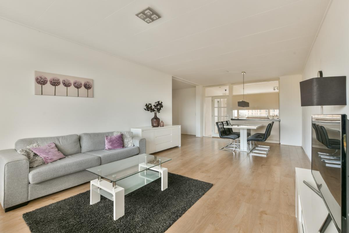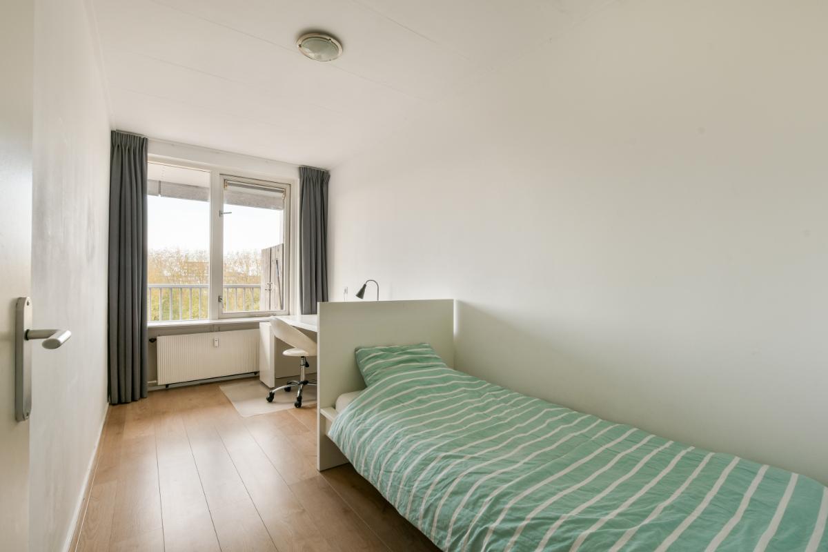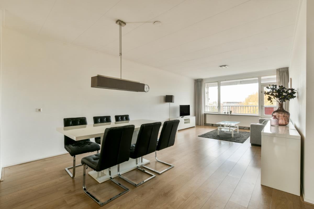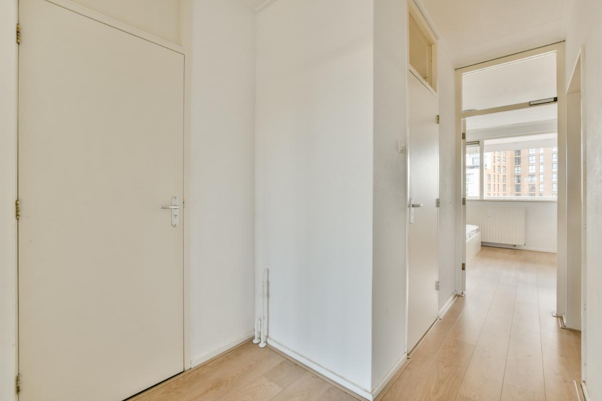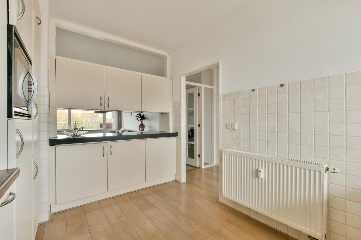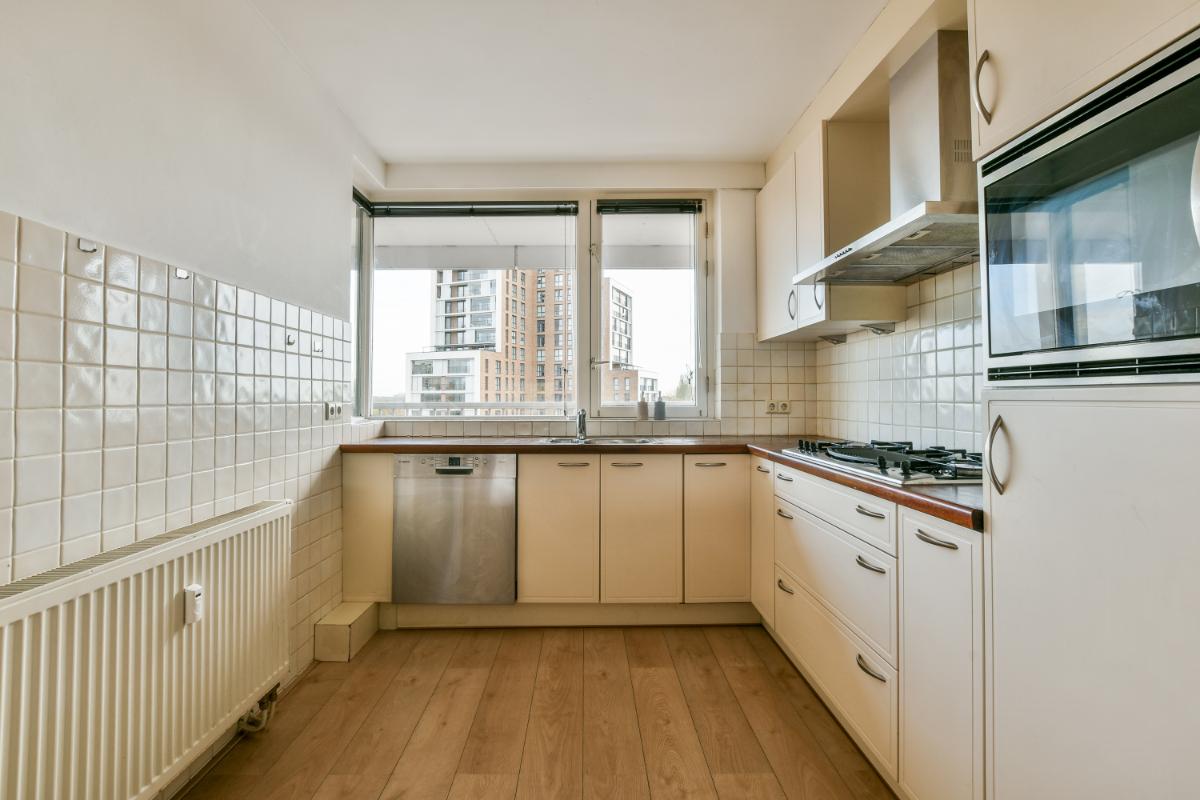 This CORNER apartment with three spacious bedrooms is located on the 8th (top) floor with a fantastic view over Amstelveen! The apartment is situated at the end of the gallery, so there are no passing traffic and plenty of privacy! The complex is wonderfully centrally located in Amstelveen, a stone's throw from the Oranjebaan bus and tram stop and near the modern Amstelveen city center (Binnenhof). For daily shopping, the Bankrashof shopping center is right next to the building, and the Kostverlorenhof shopping center is also nearby. The Amsterdamse Bos is a 10-minute bike ride away, as is the Middelpolder. Amsterdam City Center, Amsterdam Schiphol Airport, Bijlmer Arena, Amsterdam Zuid, and Haarlem are easily and quickly accessible by bus or the new Amstelveenlijn (tram). Major roads such as the Beneluxbaan, the A9, and the A10 are easily accessible. Several (international) schools, daycare centers, and sports clubs are also located in the immediate vicinity.