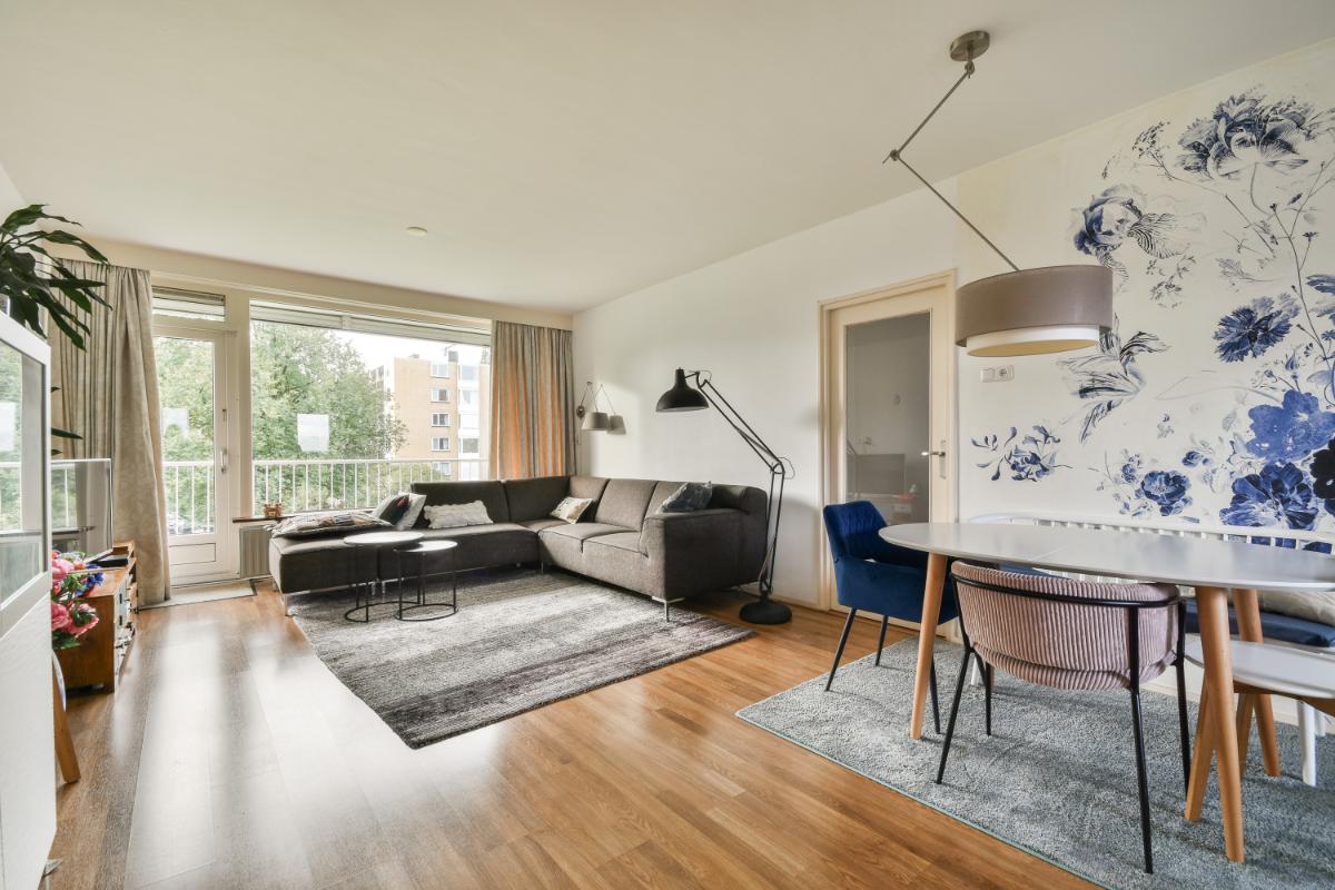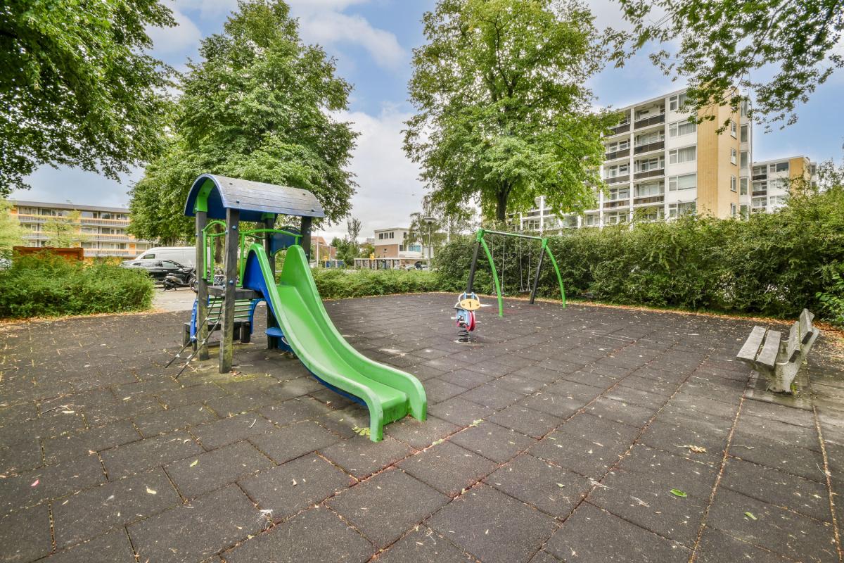 English translation: This three-room apartment on the third floor, with a south-facing balcony and living room, offers unobstructed views of a beautiful park and is ideally located in the Elsrijk residential area near Amstelveen's city center. Within walking distance are the Stadshart (city center) and tram stops for line 5 and the Amstelveenlijn (tram line 25) to Amsterdam and Uithoorn. The bus stop for line 300 is also within walking distance, connecting you to Schiphol Airport in 30 minutes. For relaxing, you can cycle to the Middelpolder, the Amstel River, or the Amsterdamse Bos (Amsterdam Forest) within a few minutes. For daily shopping, the Stadshart, Bankrashof, and Kostverlorenhof shopping centers are just a short distance away. Major highways such as the Beneluxbaan, A2, A9, and A10 are easily accessible, and several schools, childcare facilities, and the International School are also nearby.