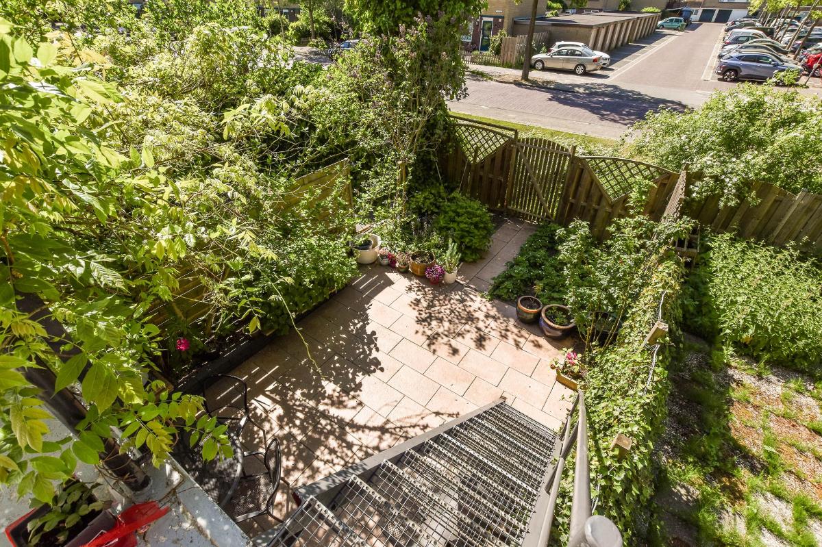 Layout: Two rooms are accessible via the entrance with the meter cupboard and the hallway, which includes a storage room housing the central heating system and the stairs to the first floor. The first (bed)room is located at the front of the house. At the rear is the spacious garden room, which can be used for various purposes. Currently, the room is furnished as a living/living space, but it could also serve as an office/study or a bedroom. Plenty of possibilities! From this room, you can access the bathroom, the separate toilet, and the back garden. The charming Southeast-facing garden is largely paved and features borders with established plants. The garden is accessible via a rear entrance. The bathroom consists of a functional space with a shower, a sink, and vanity. The first floor comprises a landing, a separate toilet, an L-shaped living room, and an open-plan kitchen. The wonderfully bright living room features light-colored laminate flooring. The spacious southeast-facing balcony is accessible from the living room, and stairs from the balcony lead down to the garden. The modern kitchen is located at the front of the house and offers ample storage space in various cabinets, as well as the following built-in appliances: a gas cooktop, extractor hood, oven, dishwasher, and separate fridge-freezer. Above the countertop, with ample storage space, is a large window overlooking the charming neighborhood. The second-floor houses two spacious bedrooms and a bathroom. Both the landing and the bedrooms have laminate flooring. The fully tiled bathroom features a spacious shower, toilet, vanity unit, and the washing machine connection. A window provides natural light and ventilation. This floor also features additional storage space.