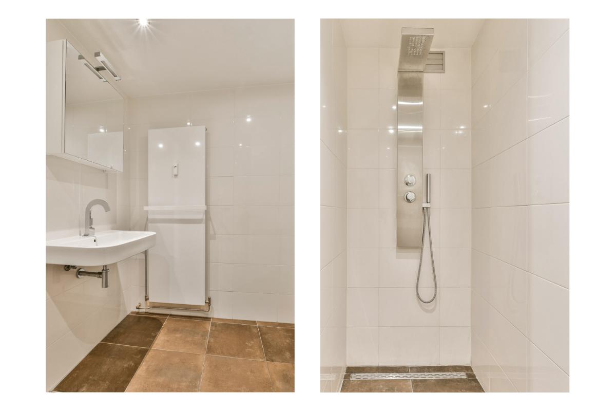 Het separaat toilet en de badkamer zijn in dezelfde stijl uitgevoerd. De ruime badkamer is ingedeeld met een ruime inloop douche met douchepaneel met stortdouche, een moderne designradiator/handdoek radiator en een wastafel met spiegel. In het plafond zijn moderne spotjes verwerkt. Al met al een heerlijk ruim appartement op een toplocatie, dat zo te betrekken is.