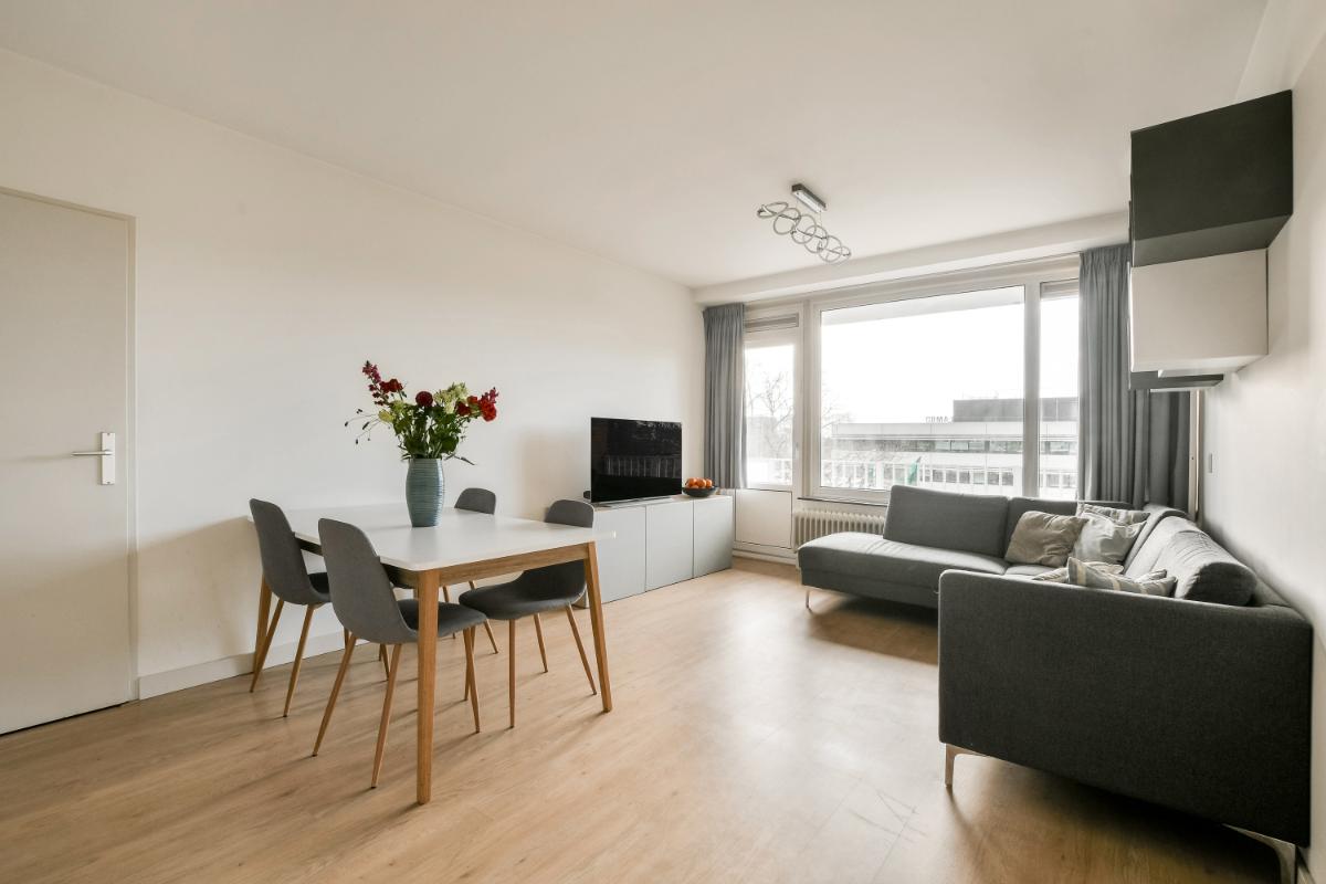 English translation. This ideally located, renovated 3-room apartment with a west-facing balcony is situated on the 3rd floor of a well-maintained apartment complex with an elevator. It's an end-unit apartment on the gallery, so you won't be bothered by passing traffic. The apartment is located in the desirable "Kostverloren" neighborhood in the north of Amstelveen, near Amsterdam. It's a 10-minute bike ride from the Amsterdamse Bos and a few minutes' walk from the Middelpolder. The apartment is also a short walk from the new Amstelveen line to Amsterdam, and major roads such as the Beneluxbaan, A2, A9, and A10 are quickly and easily accessible. For daily groceries and a variety of dining options, you can visit the Kostverlorenhof shopping center next door or one of the other nearby shopping centers such as Stadshart, Rembrandtweg, or Gelderlandplein. Sports and fitness facilities, various schools, daycare centers, the International School, and after-school care are also located nearby.