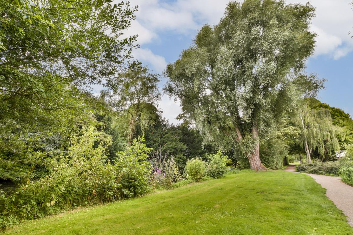 The deep and wide back garden of approximately 80 m² faces southwest, meaning the sun shines into the garden early in the morning in the summer. The garden is also spacious enough for a potential extension at the rear of the house. At the rear of the garden is a detached wooden shed. There is also rear access. The garden currently features a patio, turf, and established plants.