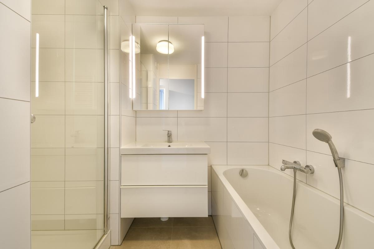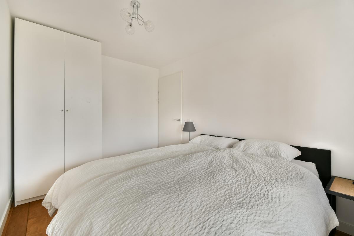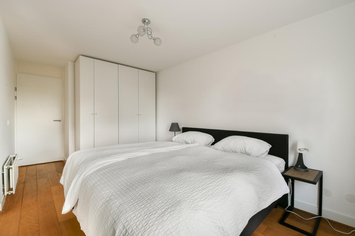 De twee slaapkamers zijn goed van formaat. De 2e slaapkamer heeft via een schuifpui toegang tot het balkon. Vanuit de hal zijn de inpandige berging met aansluiting voor de wasmachine en droger, de moderne badkamer en het separaat toilet bereikbaar. De geheel betegelde badkamer is ingedeeld met een douchehoek, een ligbad en een wastafel met meubel en spiegel. Het separaat toilet is in dezelfde kleurstelling uitgevoerd als de badkamer.
