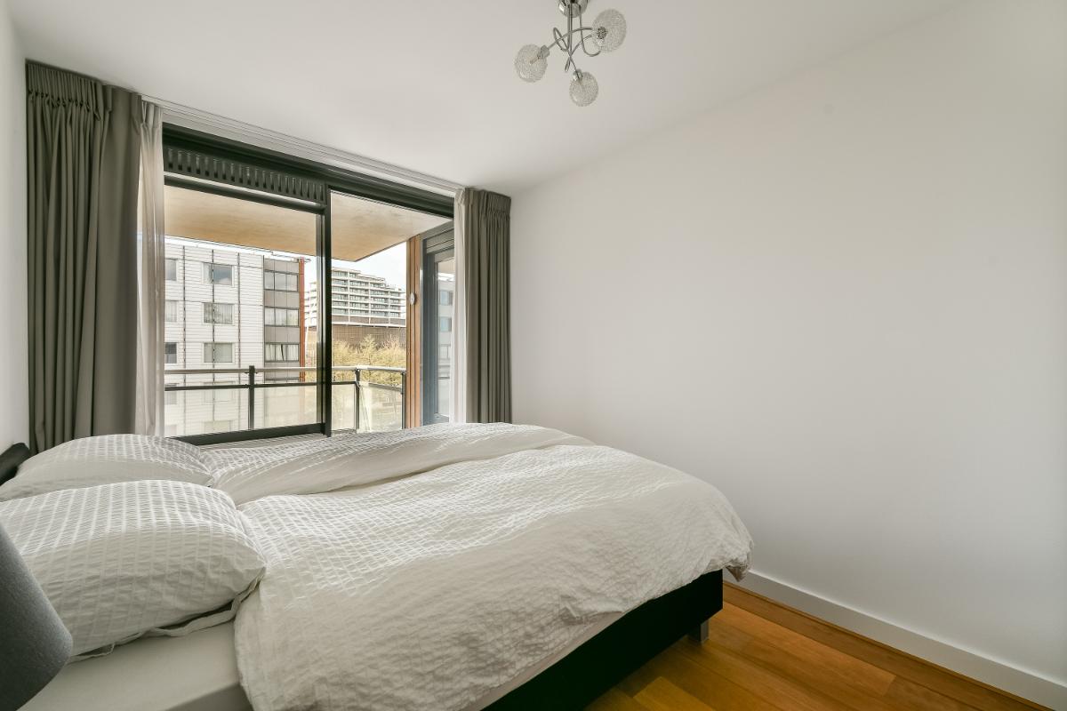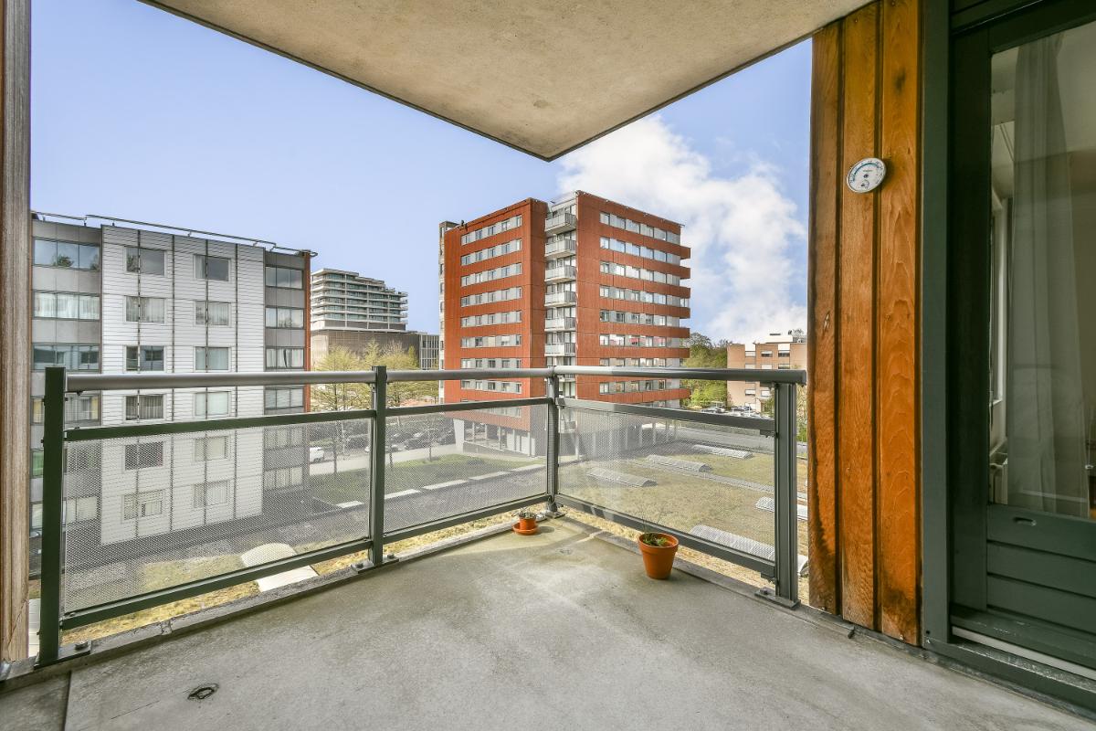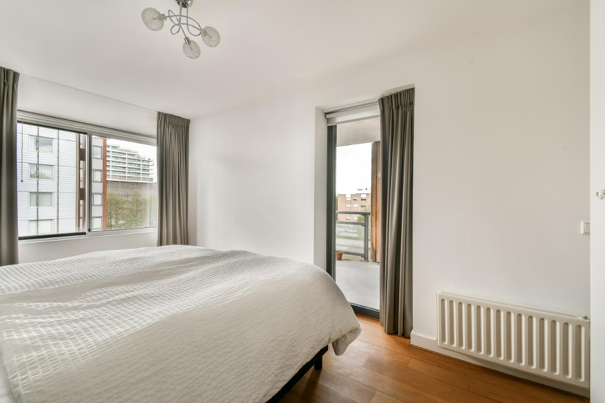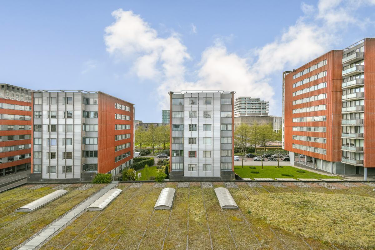 The balcony is accessible via an access door. The balcony and the living room face south. The modern kitchen is U-shaped and features ample storage space in tall cabinets, drawers, and lower cabinets. The built-in appliances include: a 5-burner induction hob, an extractor hood with splash guard, an eye-level combination oven, a dishwasher, and there is a separate microwave and an American-style refrigerator. The open kitchen is finished with a composite worktop. The two bedrooms are good size. The second bedroom has access to the balcony via a sliding door. The internal storage room with connections for the washing machine and dryer, the modern bathroom, and the separate toilet are accessible from the hallway. The fully tiled bathroom is fitted with a shower area, a bathtub, and a washbasin with a vanity unit and mirror. The separate toilet is finished in the same color scheme as the bathroom. Particulars: Living area is 96 m². The surface area of the external storage space is 5.20 m². The surface area of the balcony is: 7.80 m². Volume of the dwelling: 286 m³. Immediate occupancy possible. Year of construction: 2000. All existing furniture and household goods will be left behind. The apartment features 5 circuits, 1 cooking circuit, and 2 residual current devices. The apartment is fitted with uPVC window frames with double glazing. The apartment is equipped with district heating. Hot water is supplied via district heating. The apartment features mechanical ventilation. The property has an energy label A+, valid until March 28, 2033. The service costs are: € 220 per month, excluding heating costs. The Owners' Association is managed by VvE Dienst Nederland The Hague. On December 31, 2024, the total maintenance reserve was approximately € 180,000.